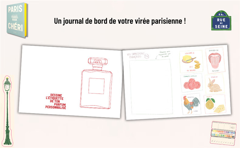 French version of Dear Paris travel book, illustrated by illustrator Zoe De Las Cases, French original version Paris Cheri Travel Book travel diary picture book