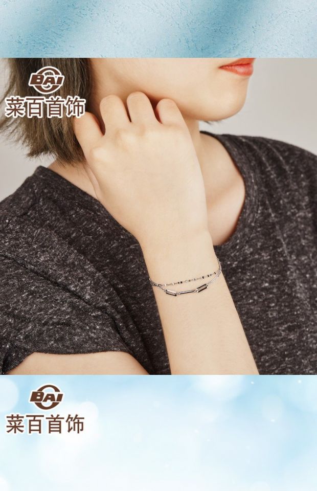 Caibai Jewelry Platinum Bracelet Platinum Pt950 Double Chain Thin Bracelet Fashionable and Simple Ladies Style Price BJ Platinum Bracelet About 2.80g About 16cm