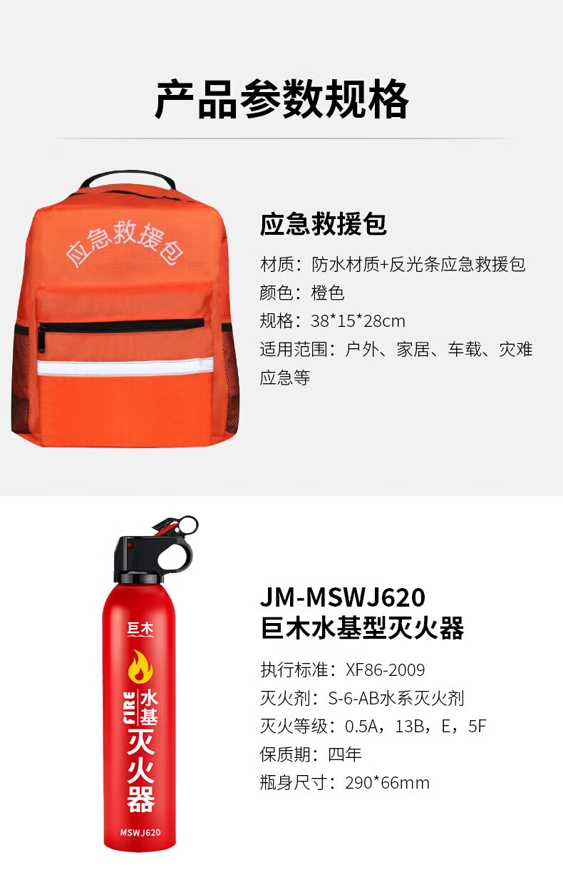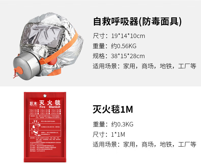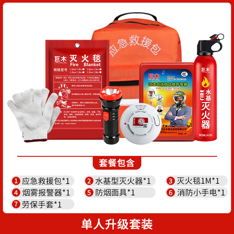 Giant wood home firefighting suit gas mask fire extinguishing blanket fire extinguisher rescue kit household fire escape protection first aid kit single suit fire escape suit 7-piece set