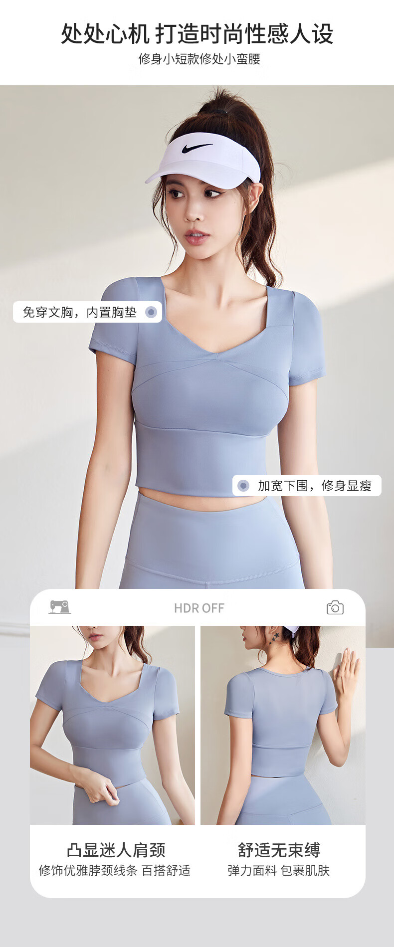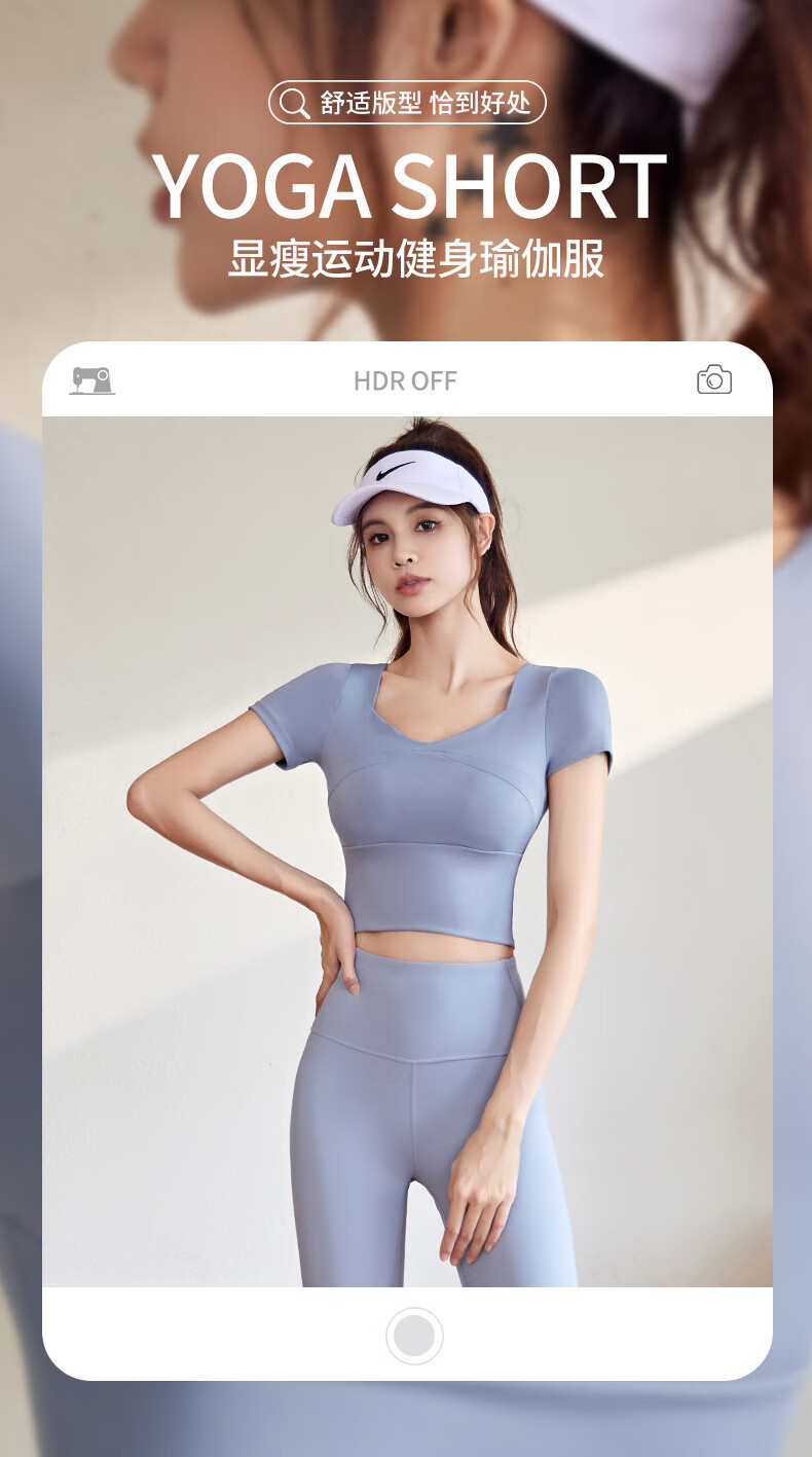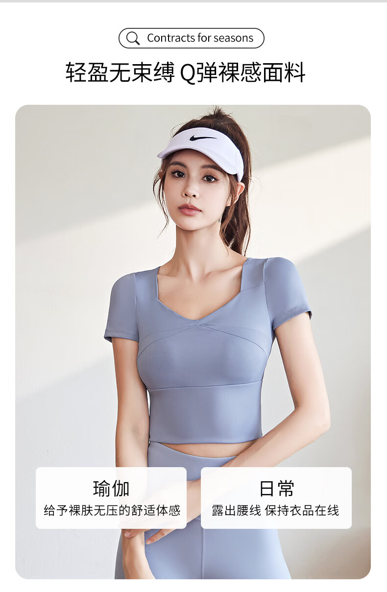 VICTORIATOURIST sports suit women's new high-end sports tops running Pilates training fitness clothes short-sleeved suit gray lake blue + gray lake blue M recommended 95-105 Jin Jin equals 0.5 kg