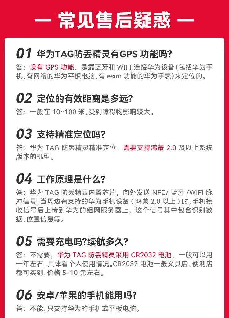 Huawei (HUAWEI) Tag Anti-Lost Wizard is only suitable for Huawei mobile phones. Anti-lost locator for bicycles, dogs and cats, luggage and luggage. Anti-lost locator for car keys. Single piece simple packaging.