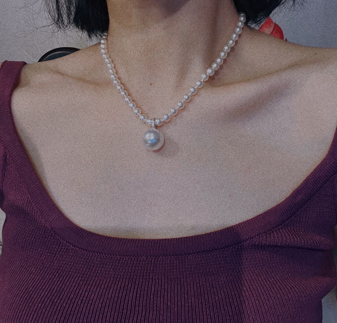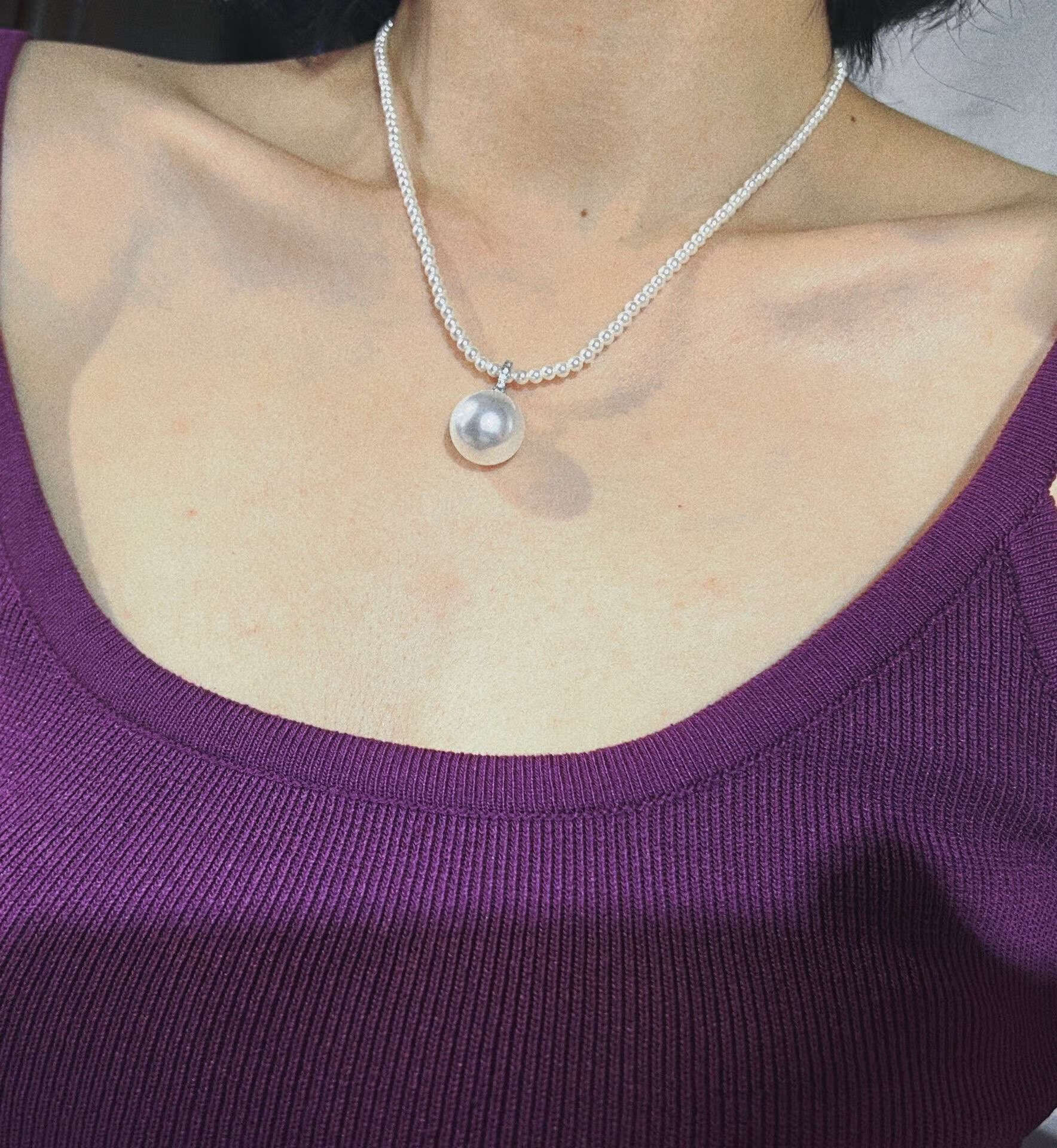 Shien S925 silver cold light 12mm Shijia pearl pendant buckle can be opened and delivered with a long chain 12mm