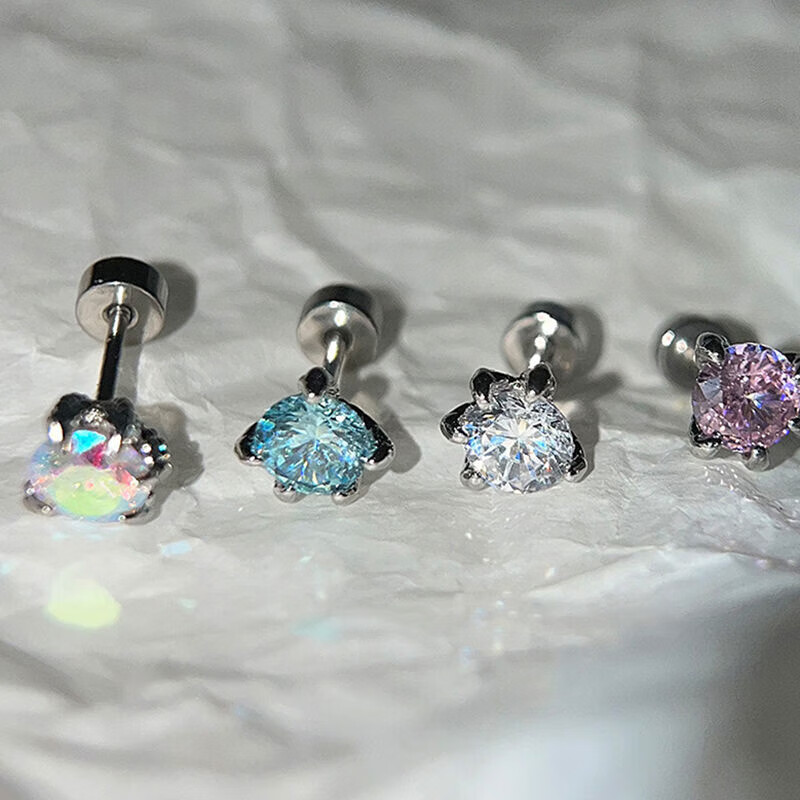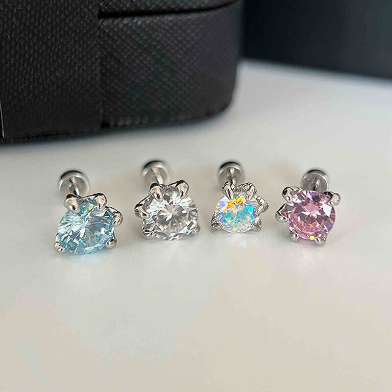 Sparkling Dragon Claw Earrings Zircon Ear Bone Nail Pink Blue Niche Design Five Claw Dragon Scale Cochlear Nail Earrings Birthday Gift AB Zirconium + Ocean Blue One Pack Each