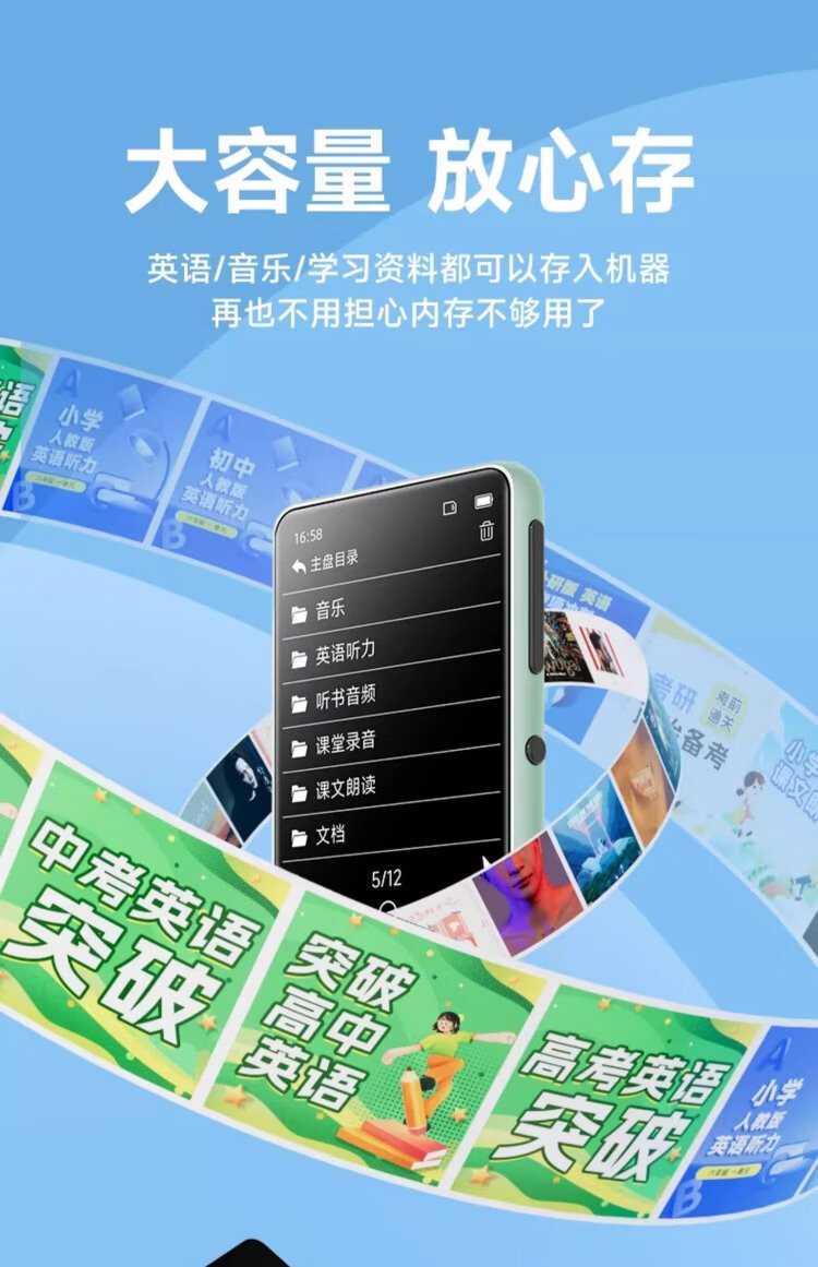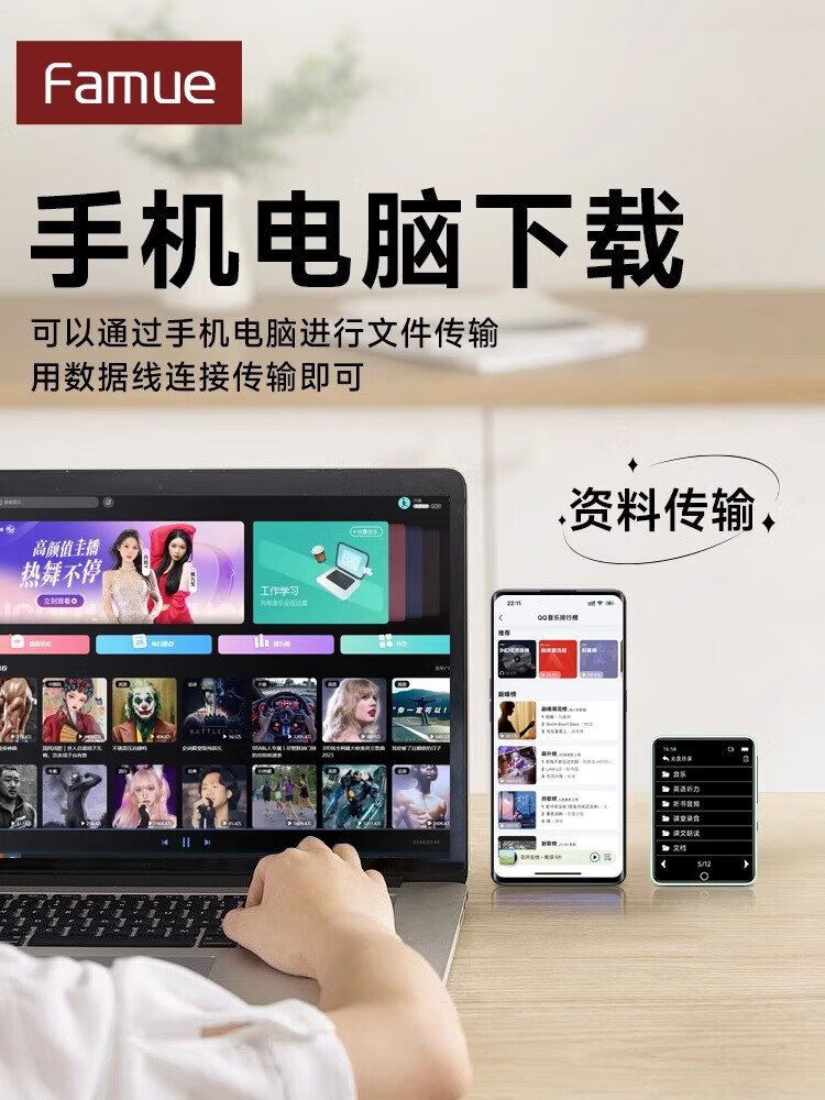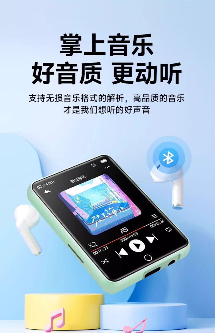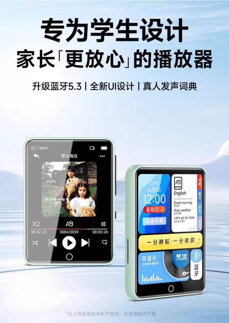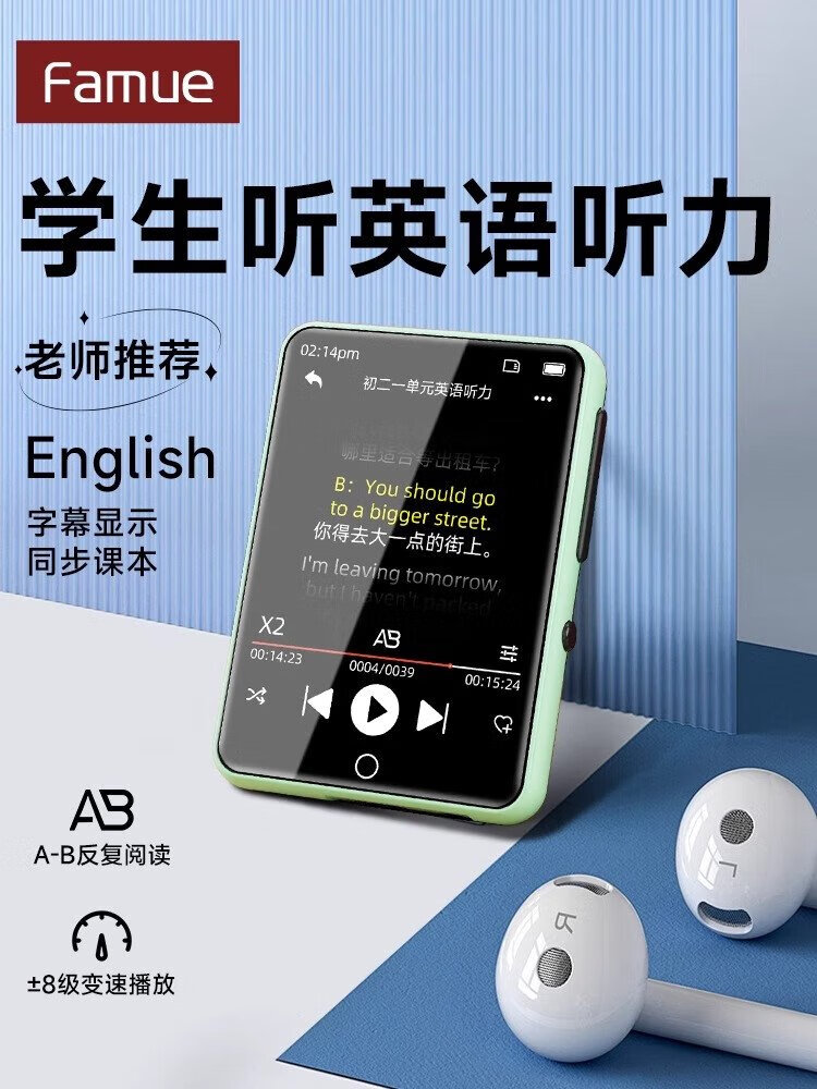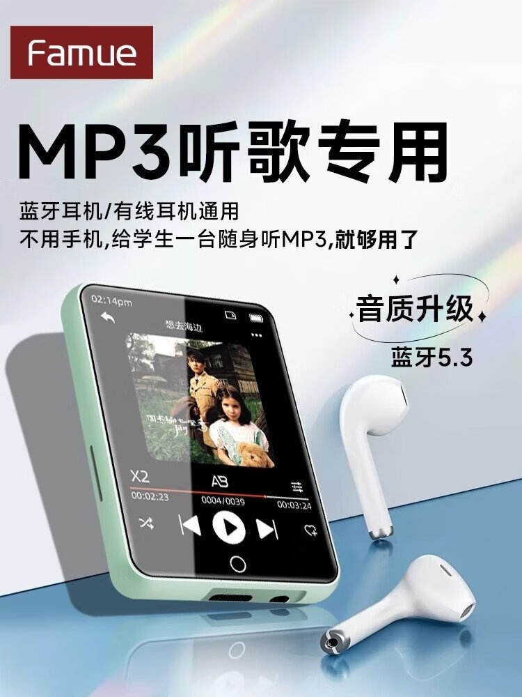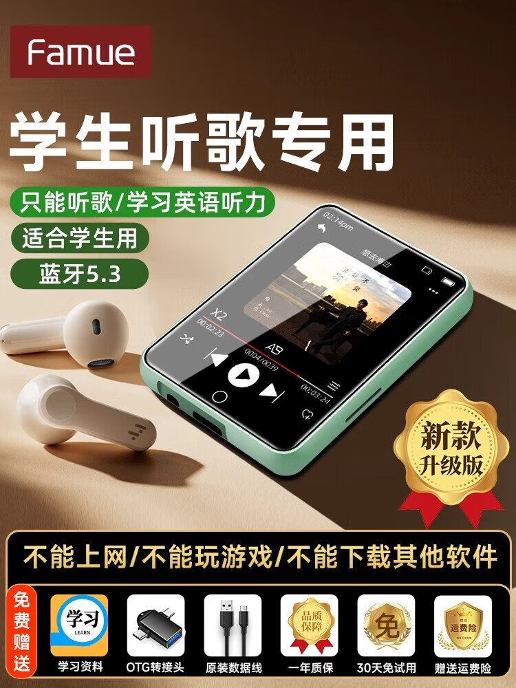 FAMUEmp5 student-specific Bluetooth mp3 music player mp4 Walkman PA01 music-listening artifact for students, dedicated to primary school students and high school students, insertable card, small English listening device, black, full touch screen, double battery, parent controllable, 96G, Bluetooth/outputable, sound quality upgrade, clearer hearing