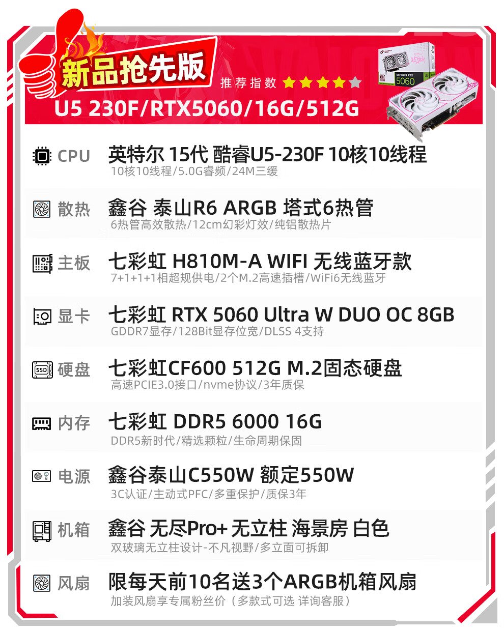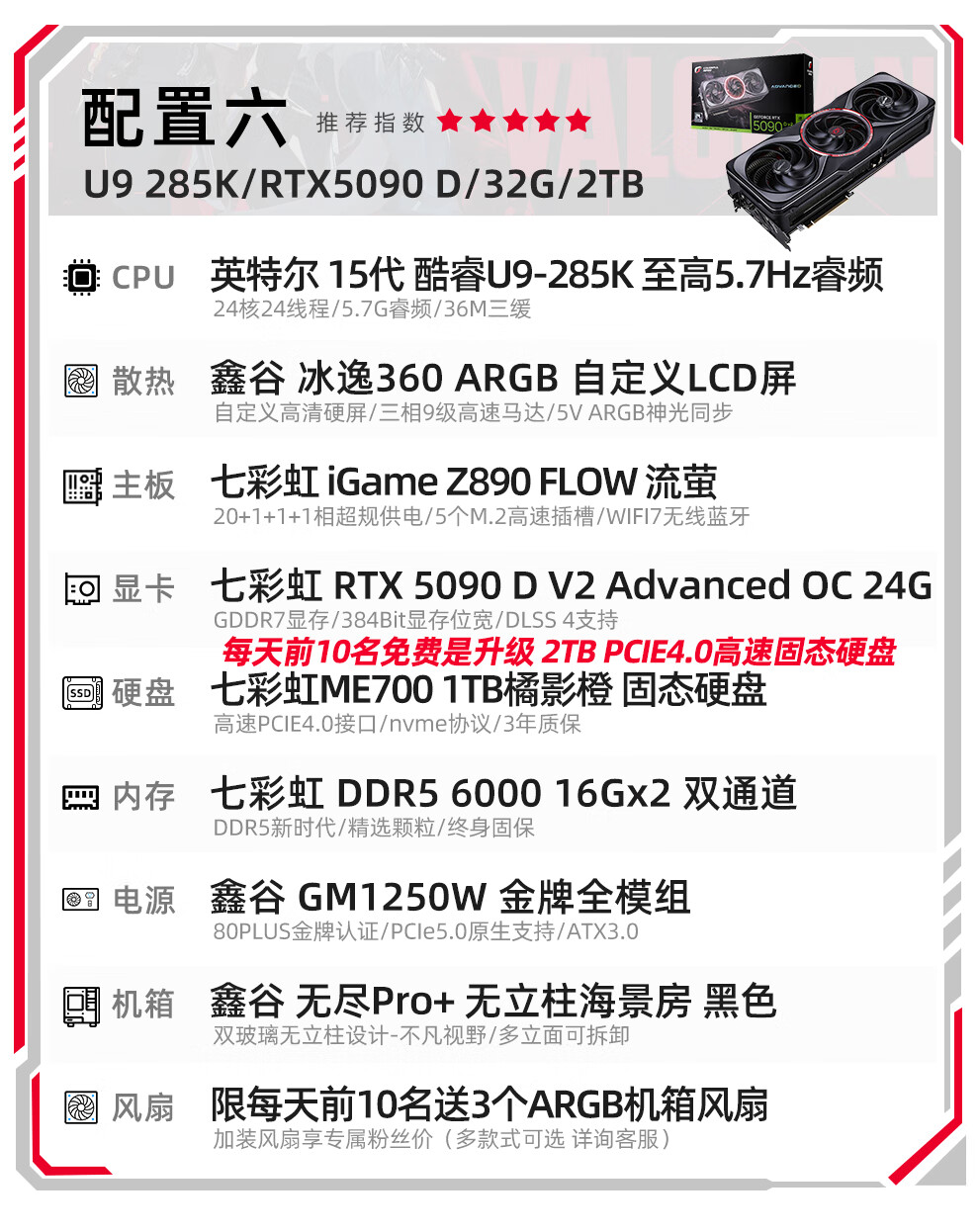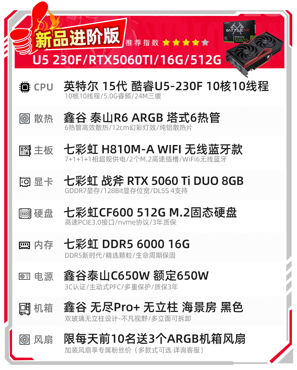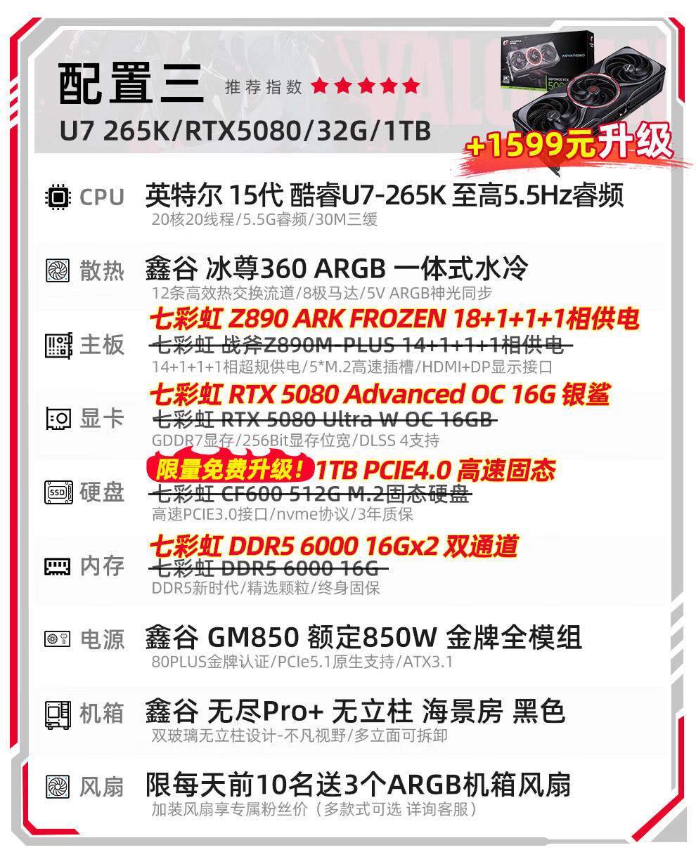 Colorful Core 15th generation U7 265K RTX5060TI/5070TI/5080 5090D graphics card E-sports game Black Myth Wukong AI designed desktop computer assembly machine with three U7 265K丨1TB丨5080 Official new guarantee
