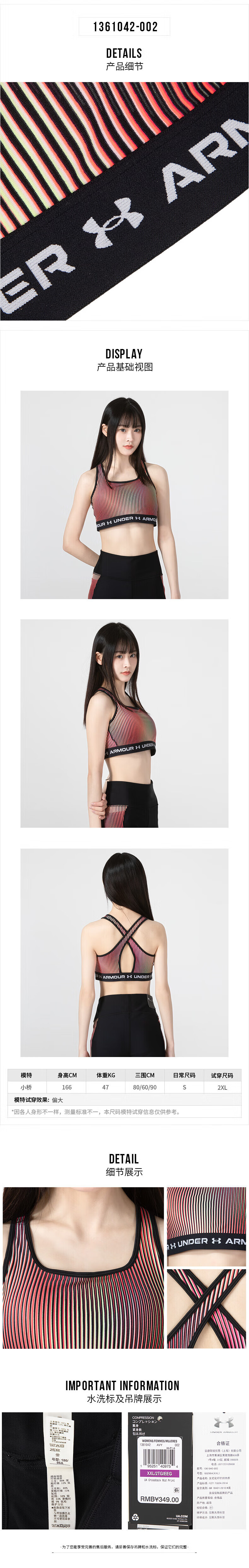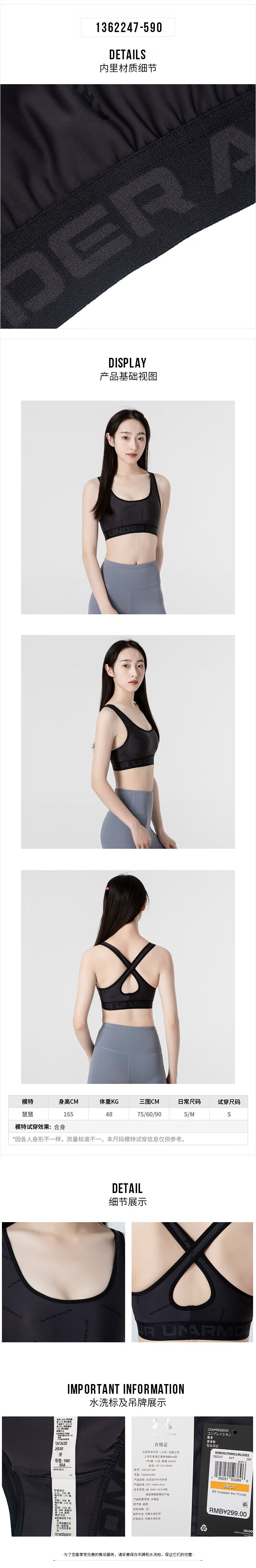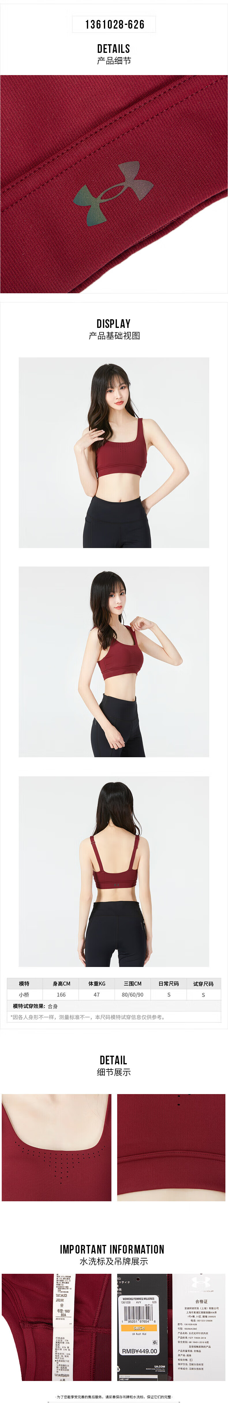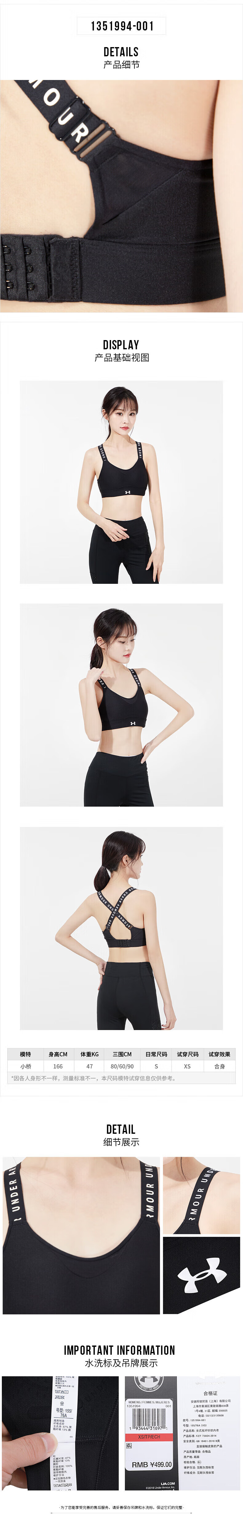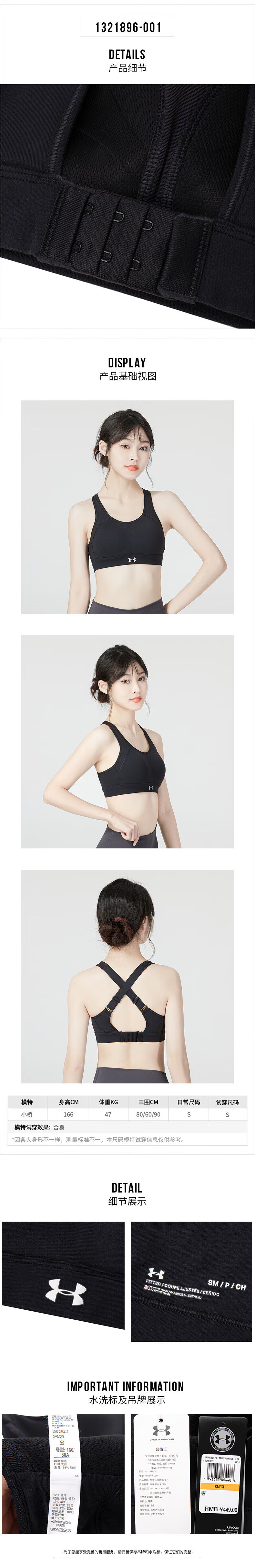 UNDER ARMOUR Women's Sports Bra New Bra Fitness Yoga Pilates Vest Training Running Bra Cycling Bra 1351994-001/Photos Refund 5 XS