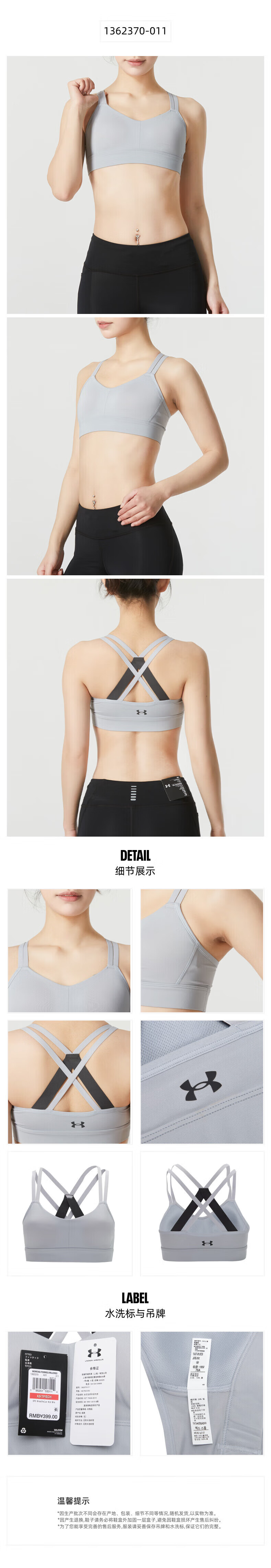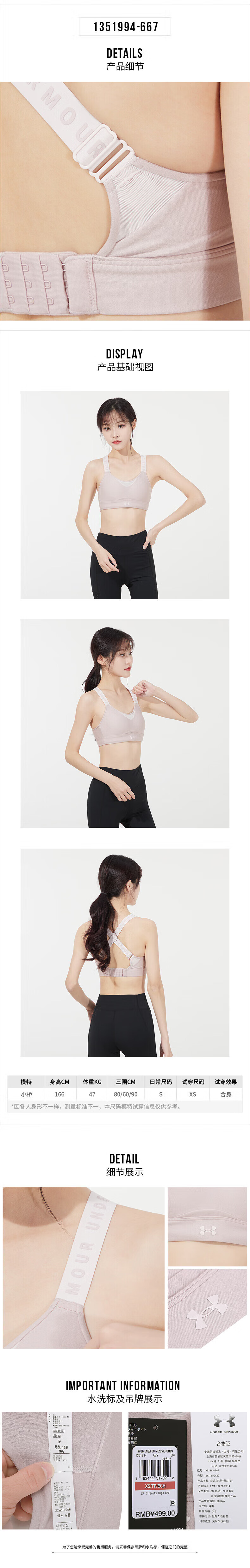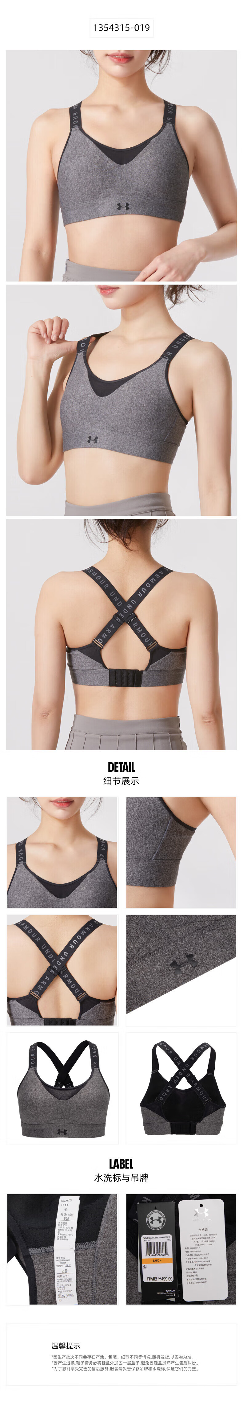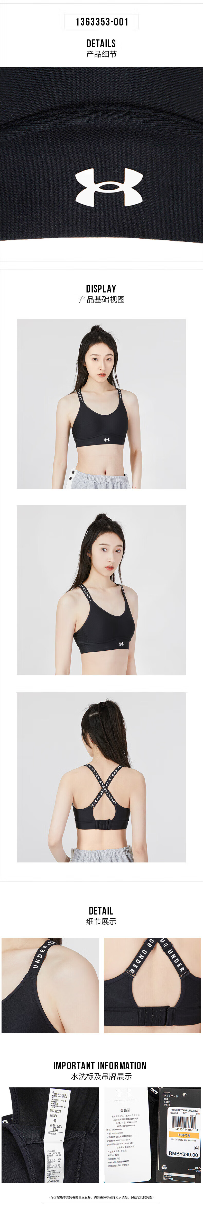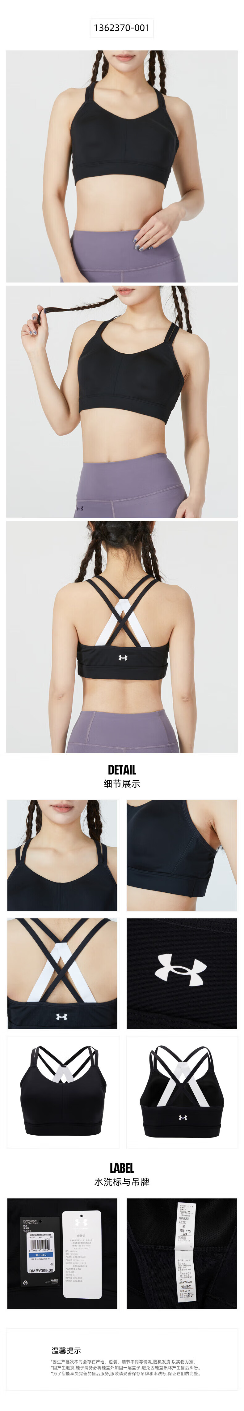 UNDER ARMOUR Women's Sports Bra New Bra Fitness Yoga Pilates Vest Training Running Bra Cycling Bra 1351994-001/Photos Refund 5 XS