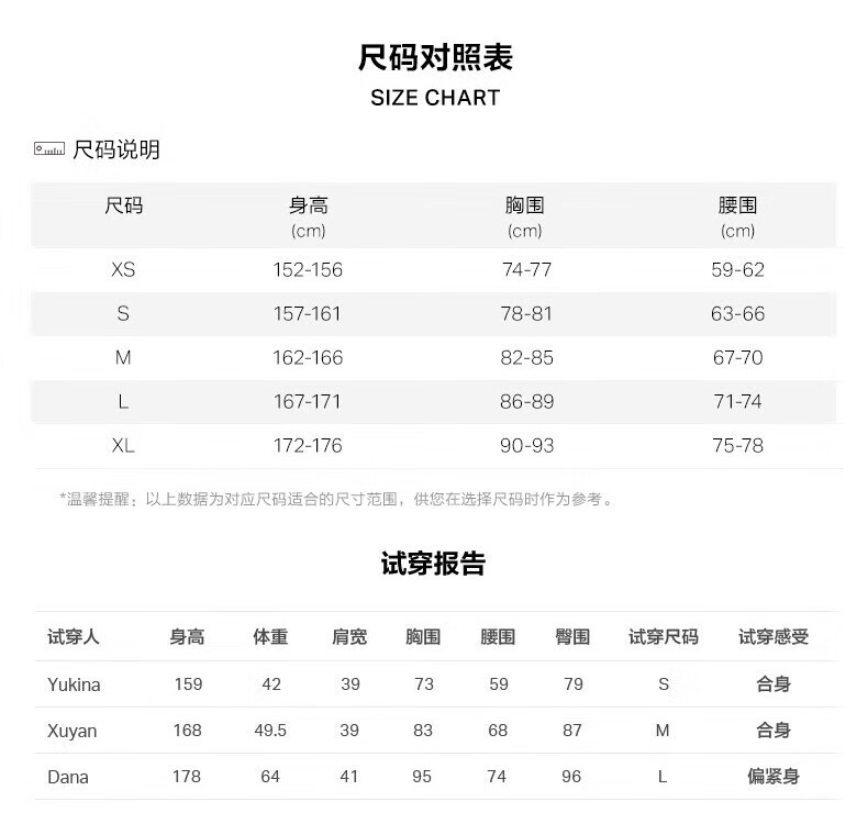 China (cm) 160-165/84-86 165-170 / 88-90 167-172 / 92-96 168-173 / 98-102 170-176 / 106-110