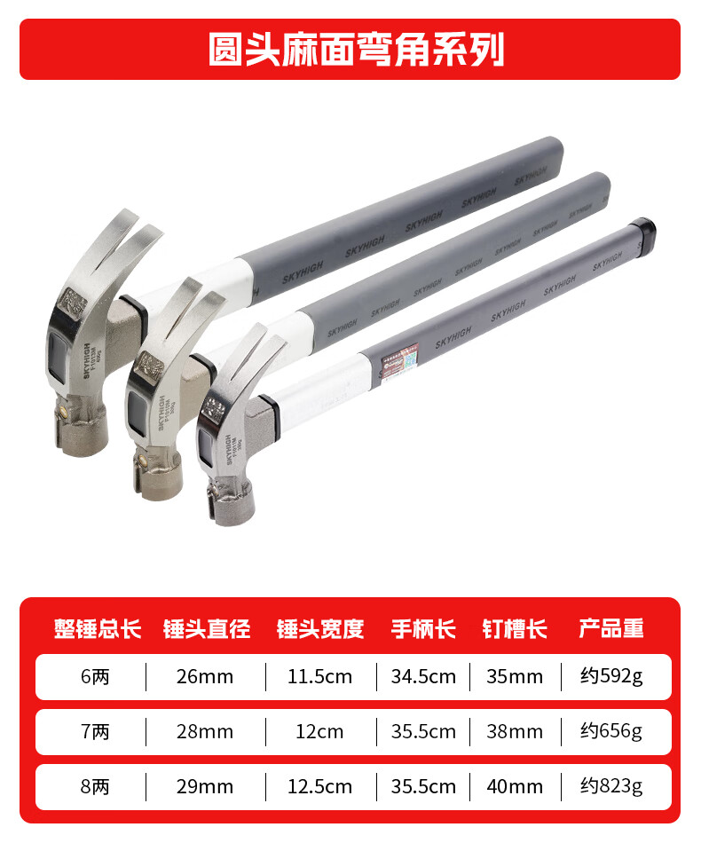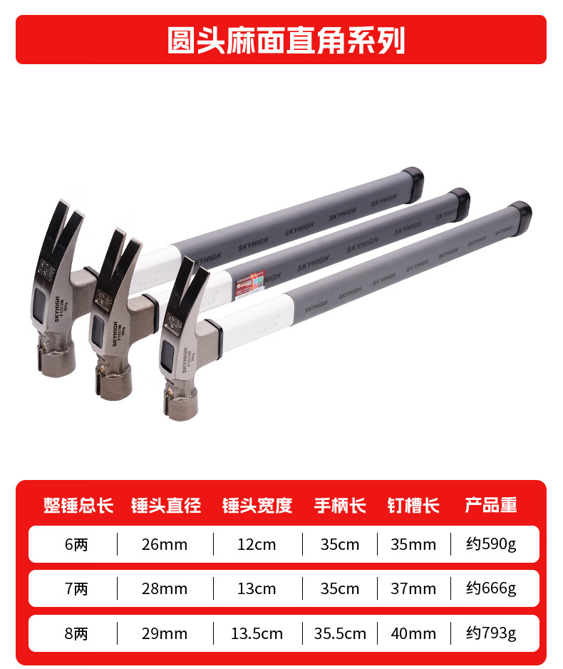 Australia and New Zealand woodworking horn high carbon steel strong magnetic fiber construction site hammer hammer hammer special hammer pitted right angle F1510M- round head pitted right angle hammer head 6 taels