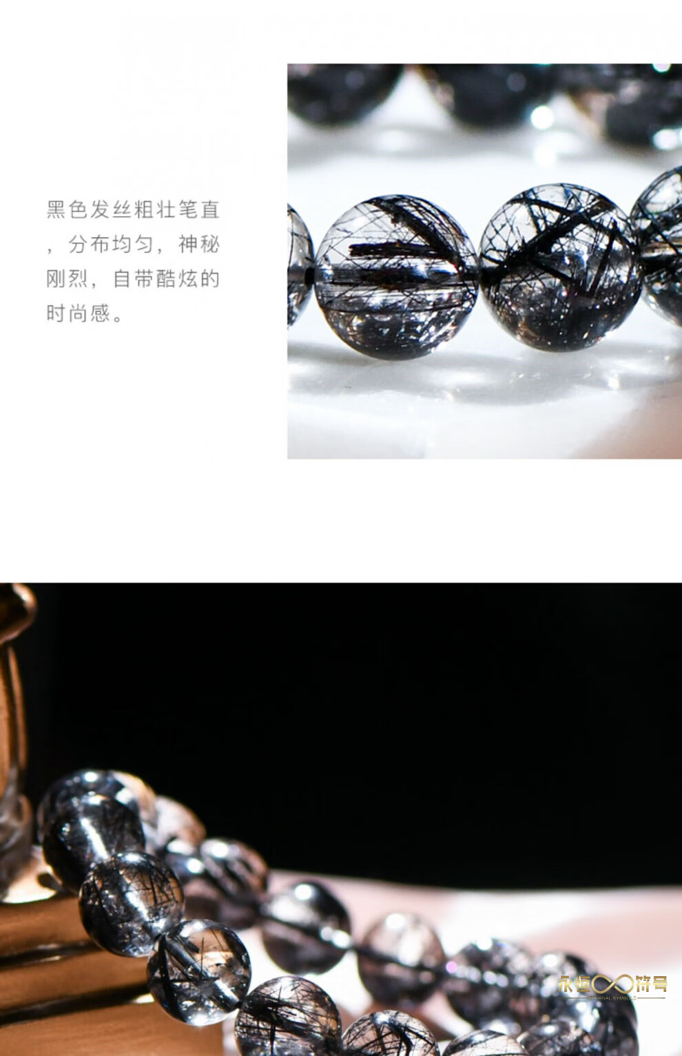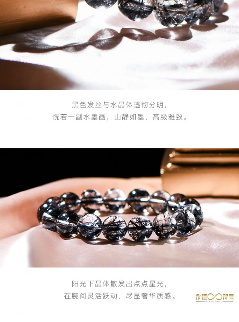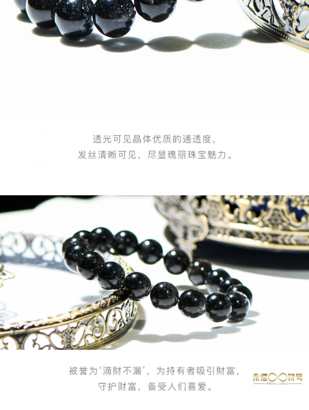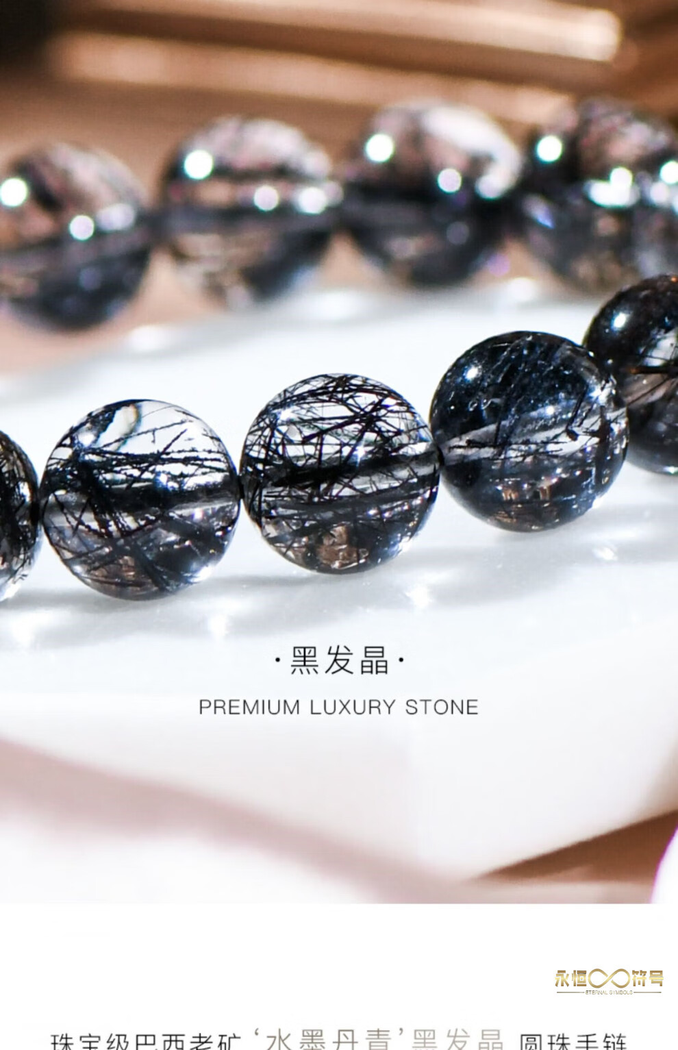 Eternal symbol light luxury brand natural crystal bracelet for women, collection grade Brazilian 7A+ old mine black hair crystal bracelet for men's birthday gift, no leakage of wealth, jewelry grade ink painting, about 10