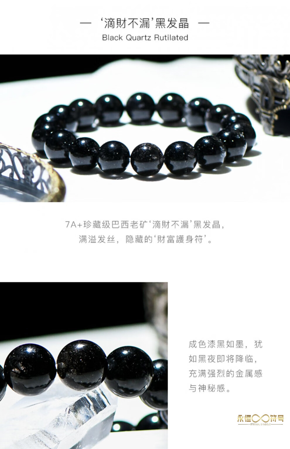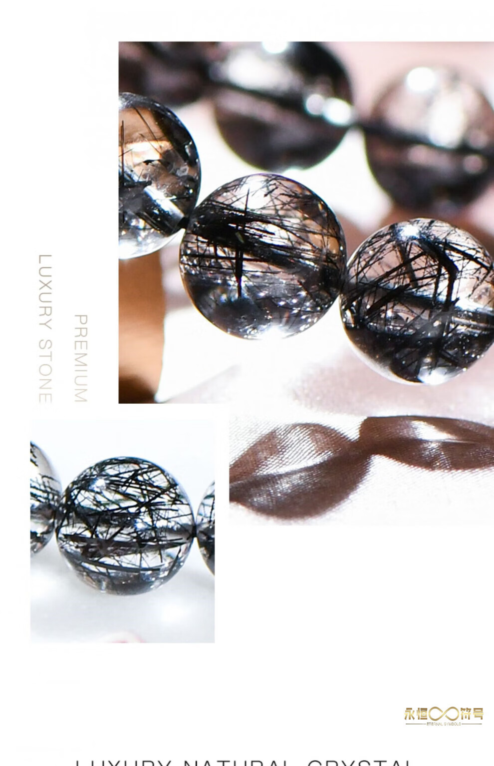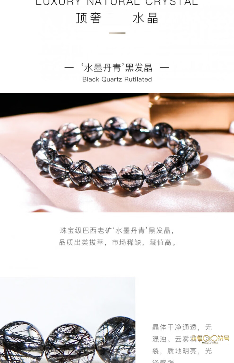 Eternal symbol light luxury brand natural crystal bracelet for women, collection grade Brazilian 7A+ old mine black hair crystal bracelet for men's birthday gift, no leakage of wealth, jewelry grade ink painting, about 10