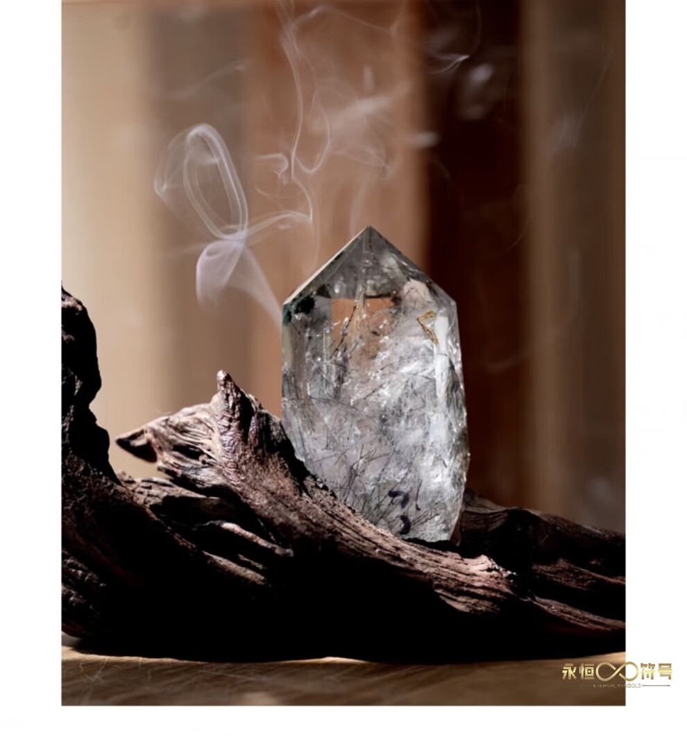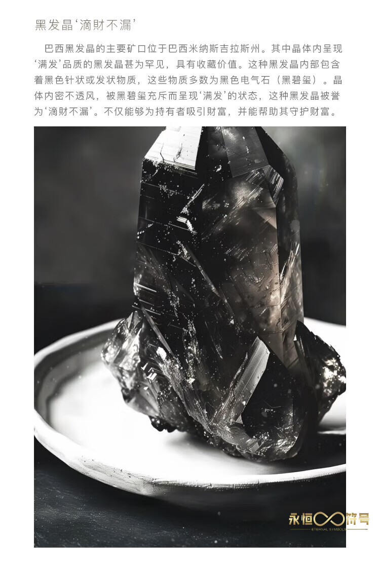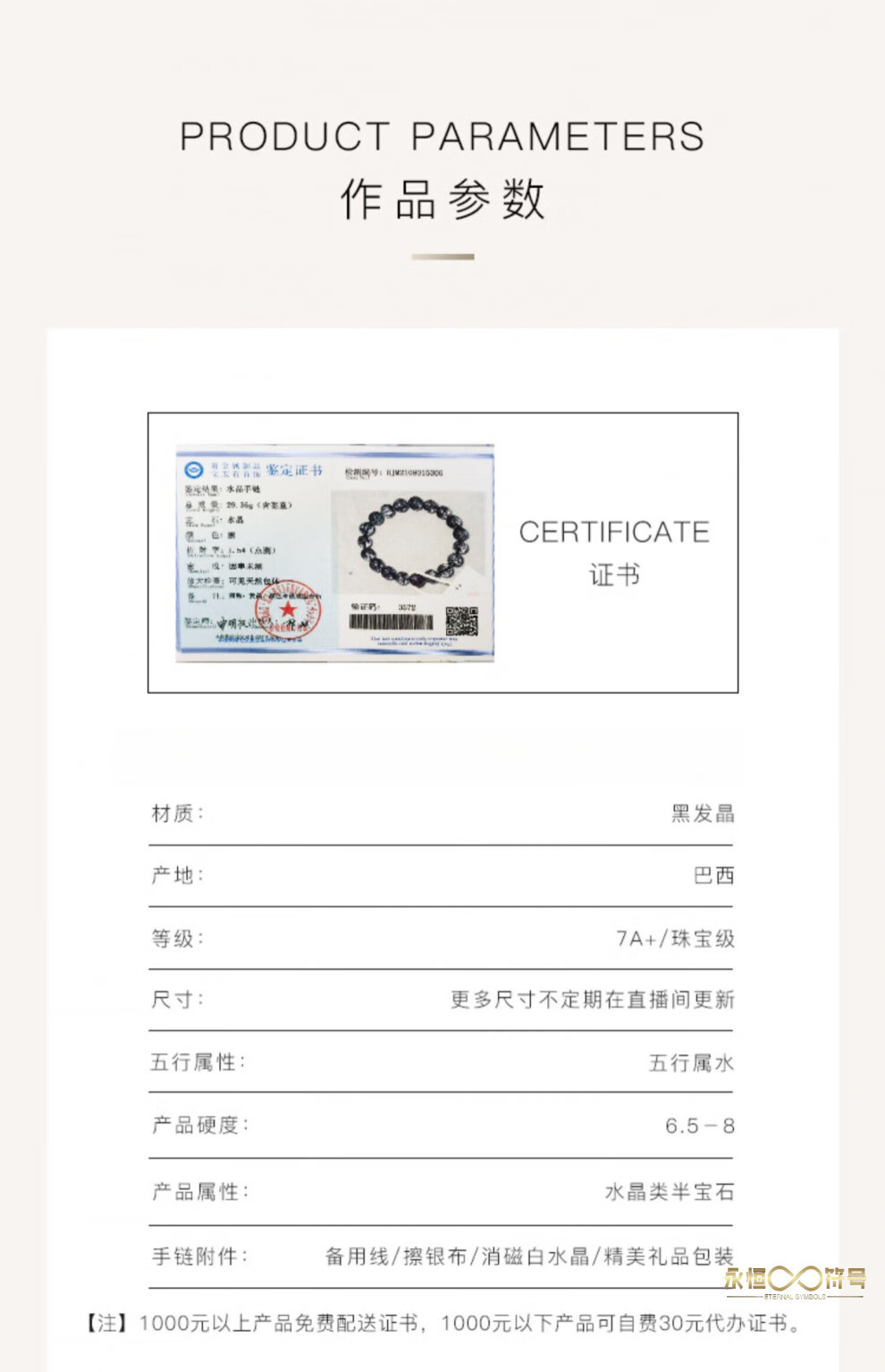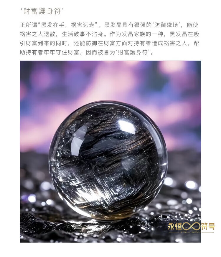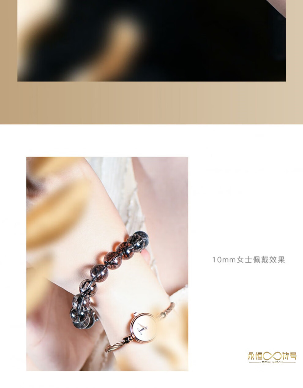 Eternal symbol light luxury brand natural crystal bracelet for women, collection grade Brazilian 7A+ old mine black hair crystal bracelet for men's birthday gift, no leakage of wealth, jewelry grade ink painting, about 10
