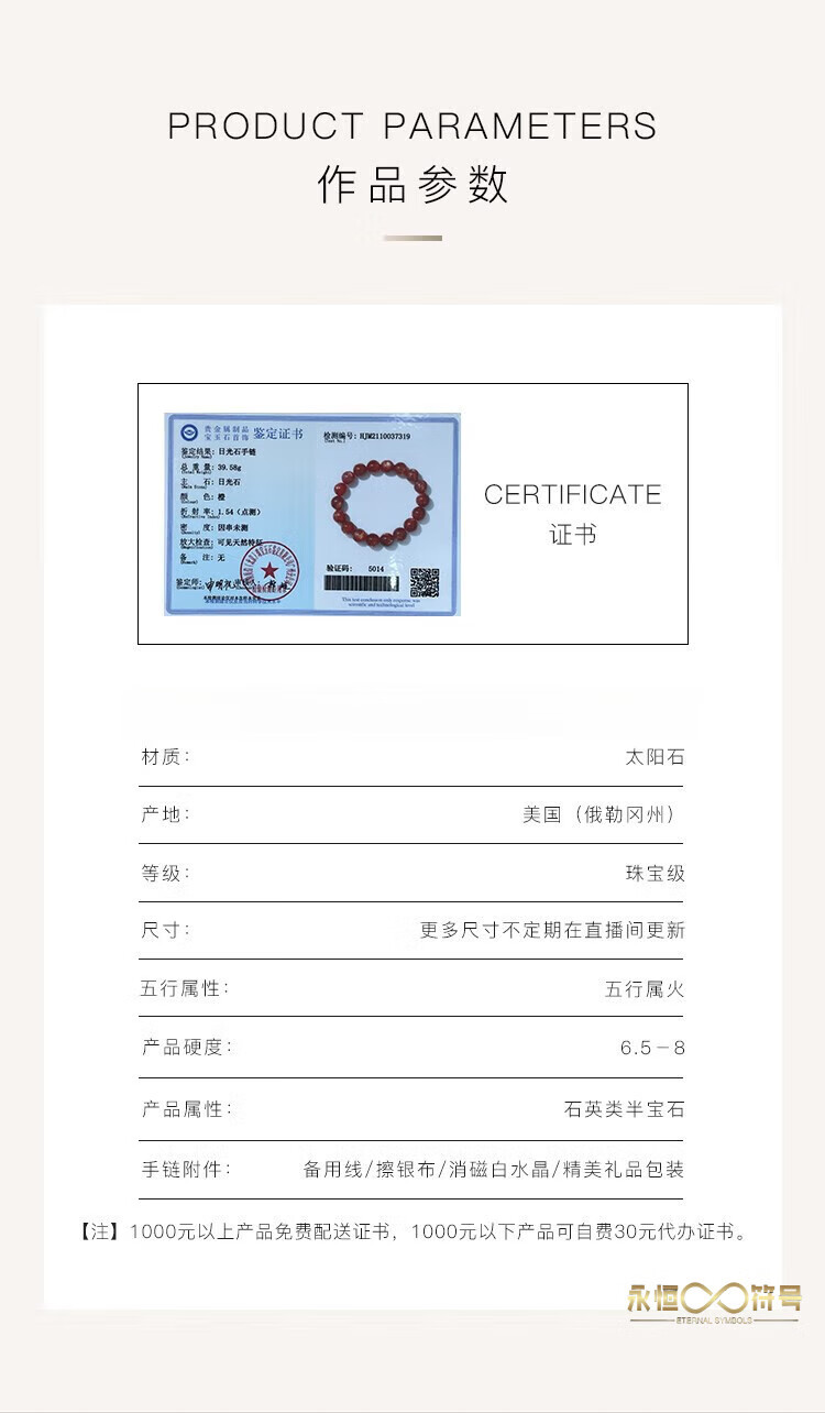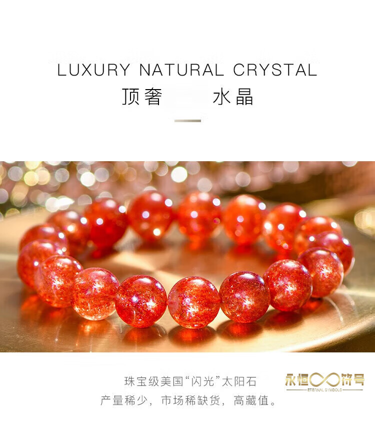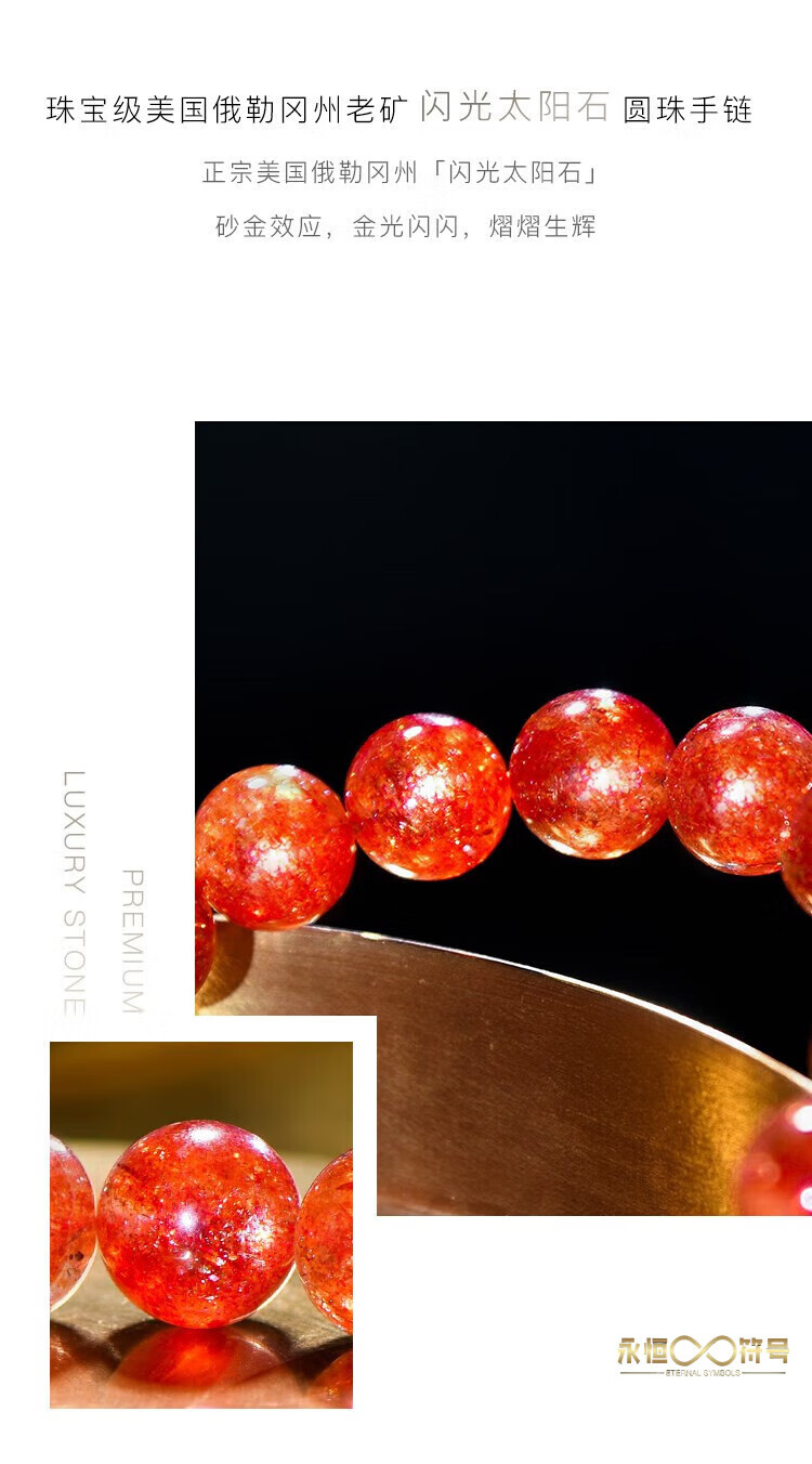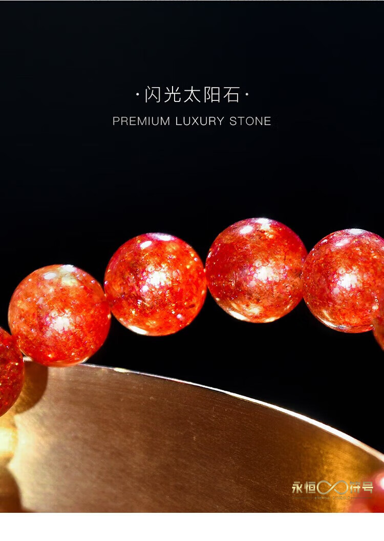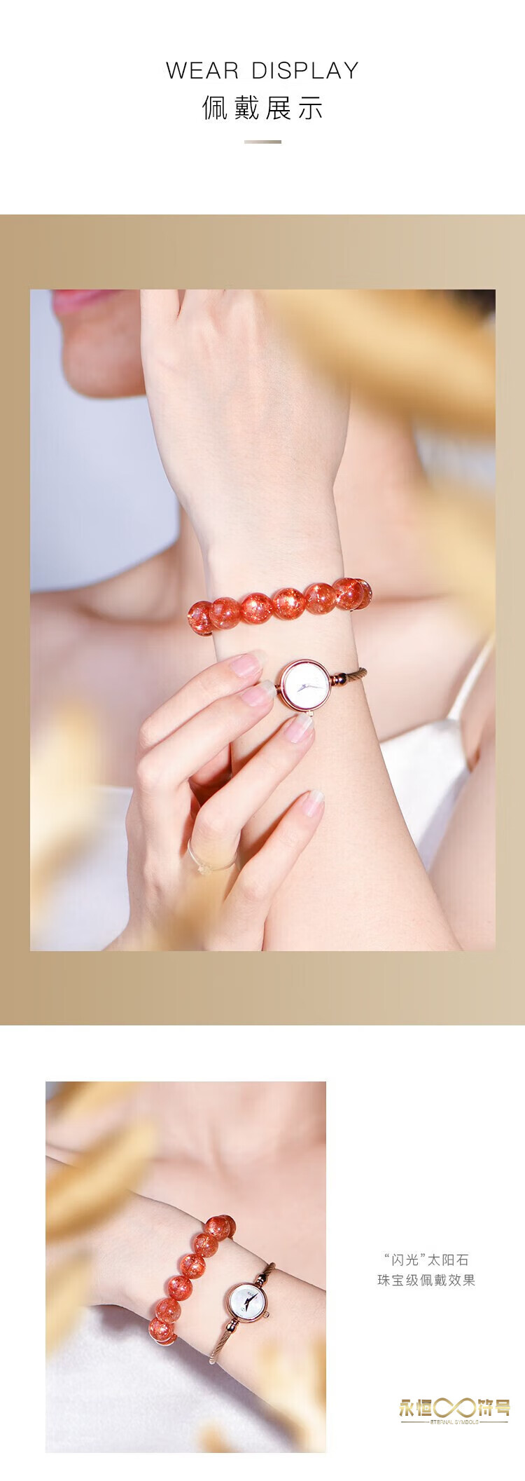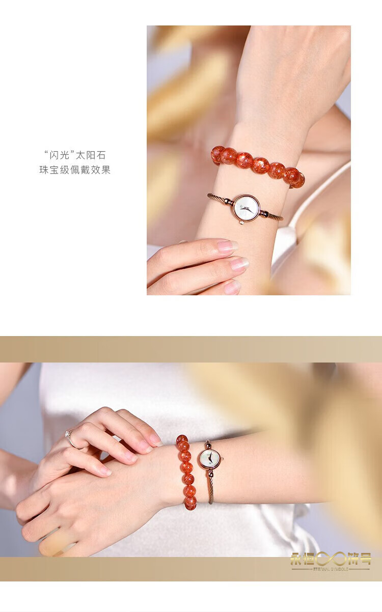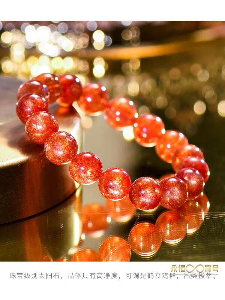 Eternal symbol light luxury brand jewelry grade natural crystal bracelet American glitter gold sunstone bead bracelet female birthday gift sunstone jewelry grade about 8mm
