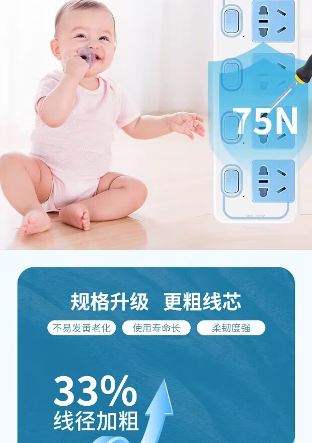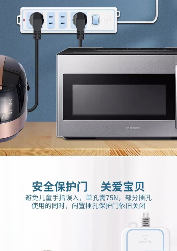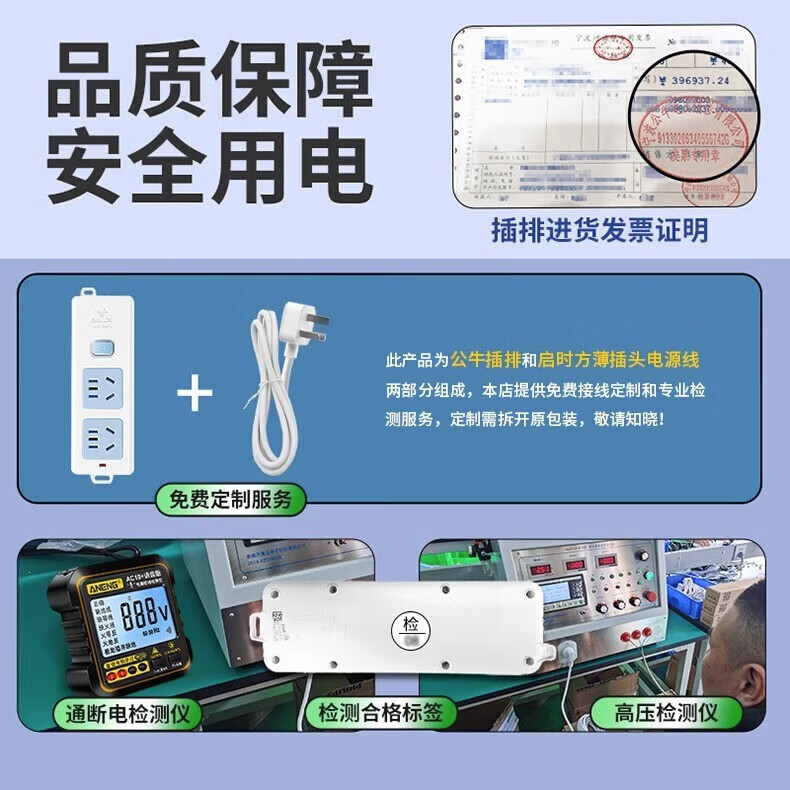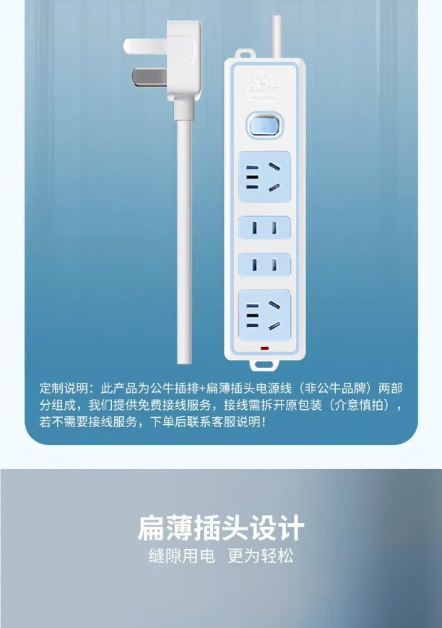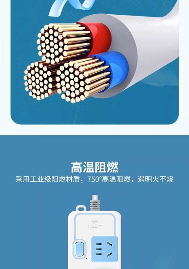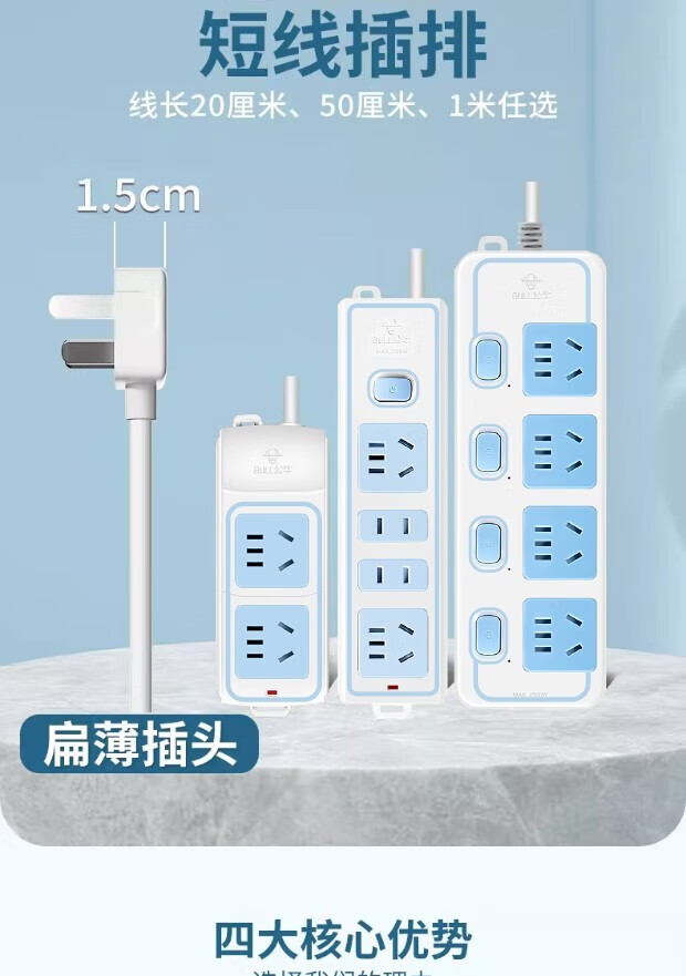 Bull short-line plug strip 0.2 meter socket ultra-thin plug flat household power strip 0.5 meter 1 meter 1.5 meter strip total control 2 sockets spot quick release wire length 0.2 meters