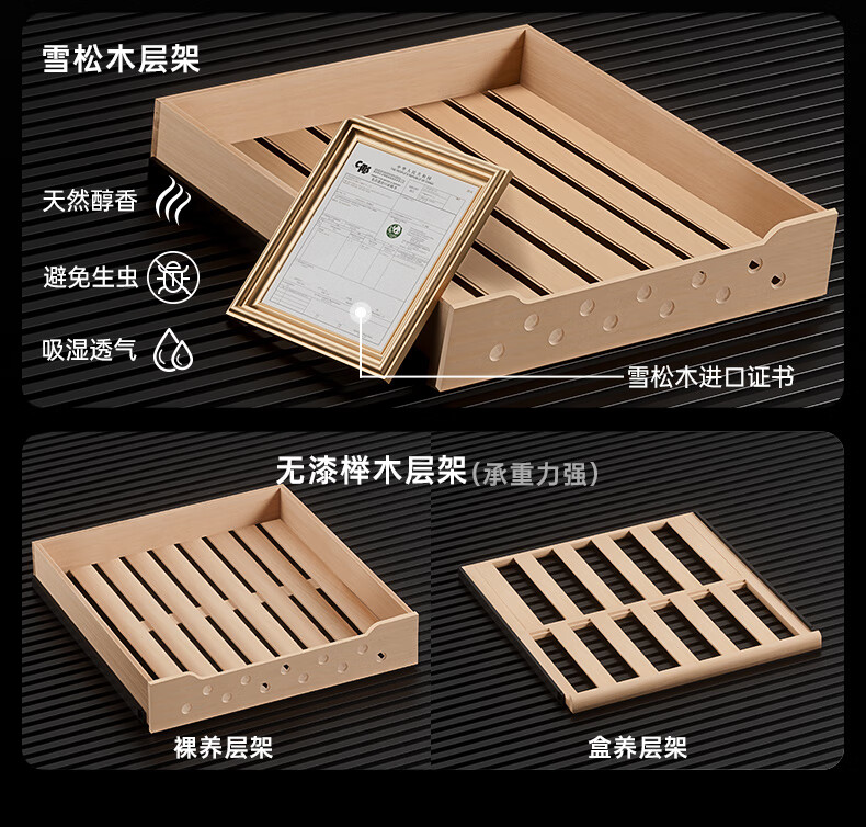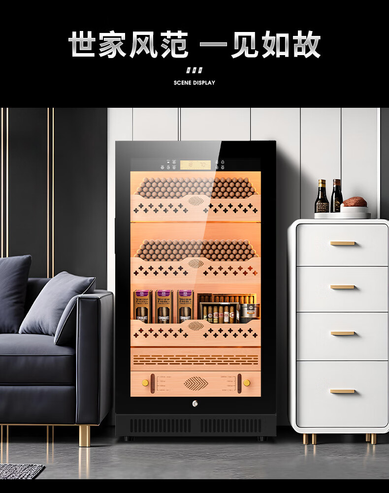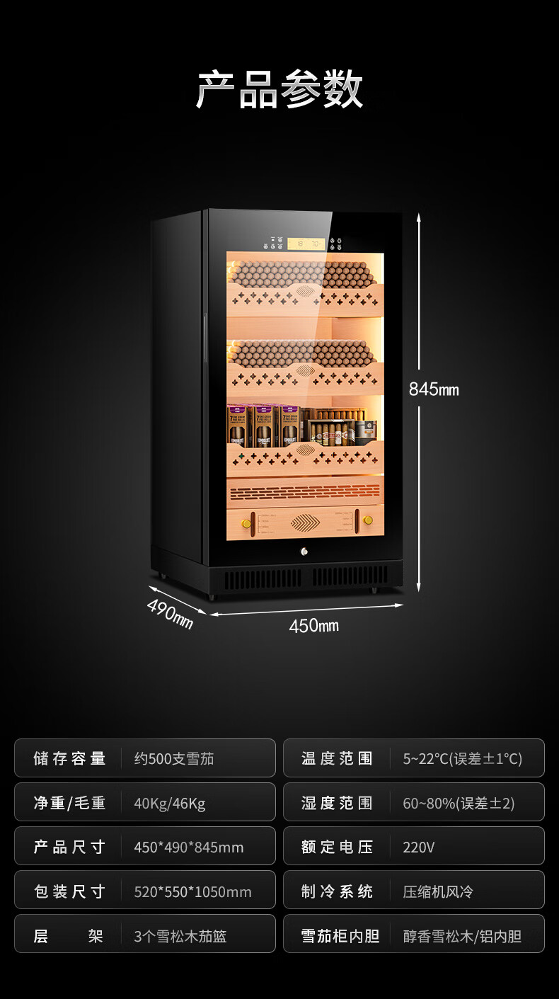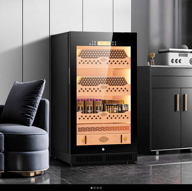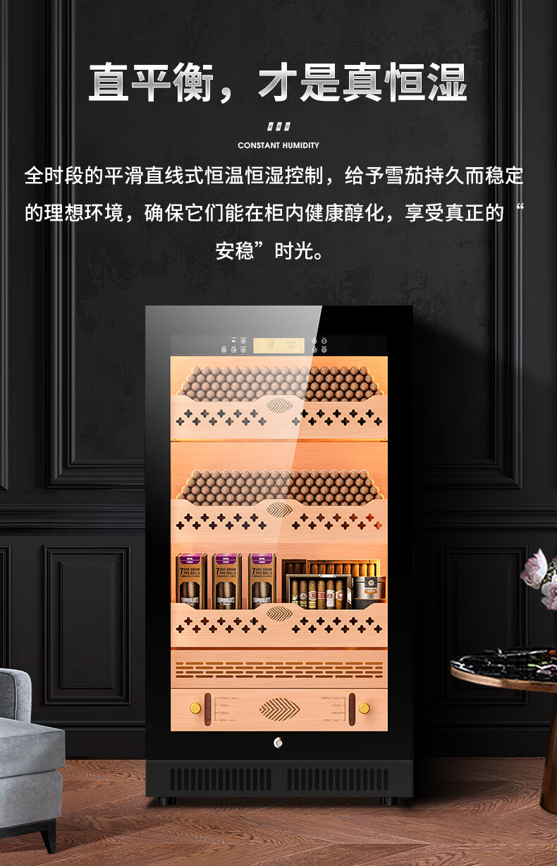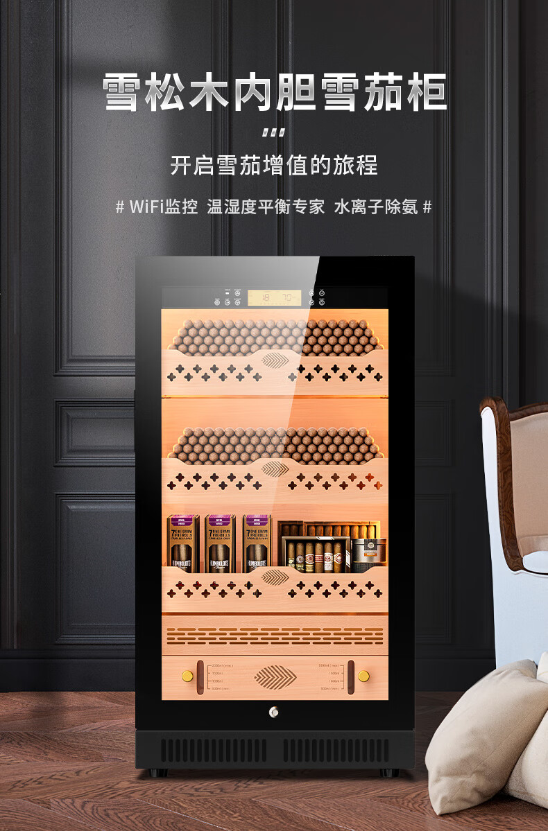 Qielong CL-22C cigar cabinet, precise and intelligent constant temperature and humidity, cedar wood liner shelf, compressor refrigeration, small household ammonia removal, small household humidification cabinet, black cedar wood liner, WiFi + purified ammonia + constant temperature and humidity