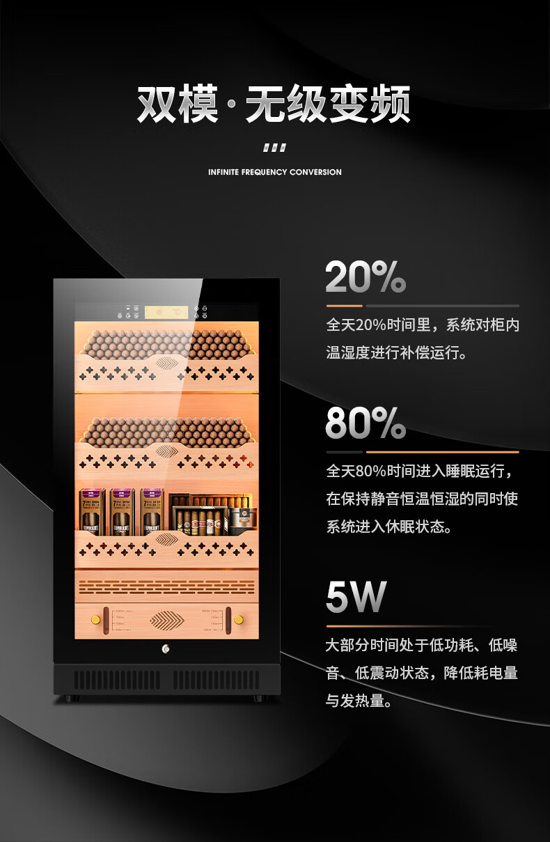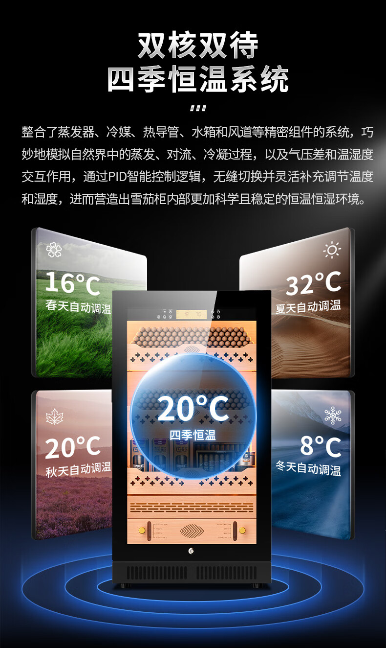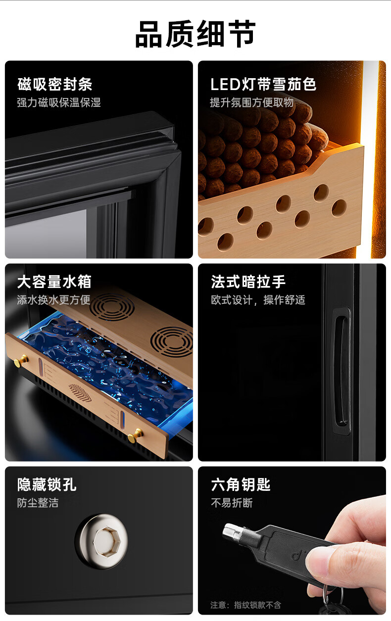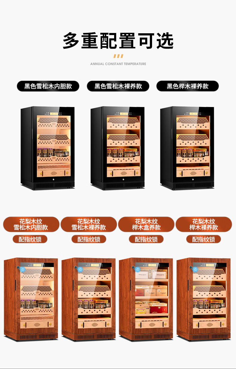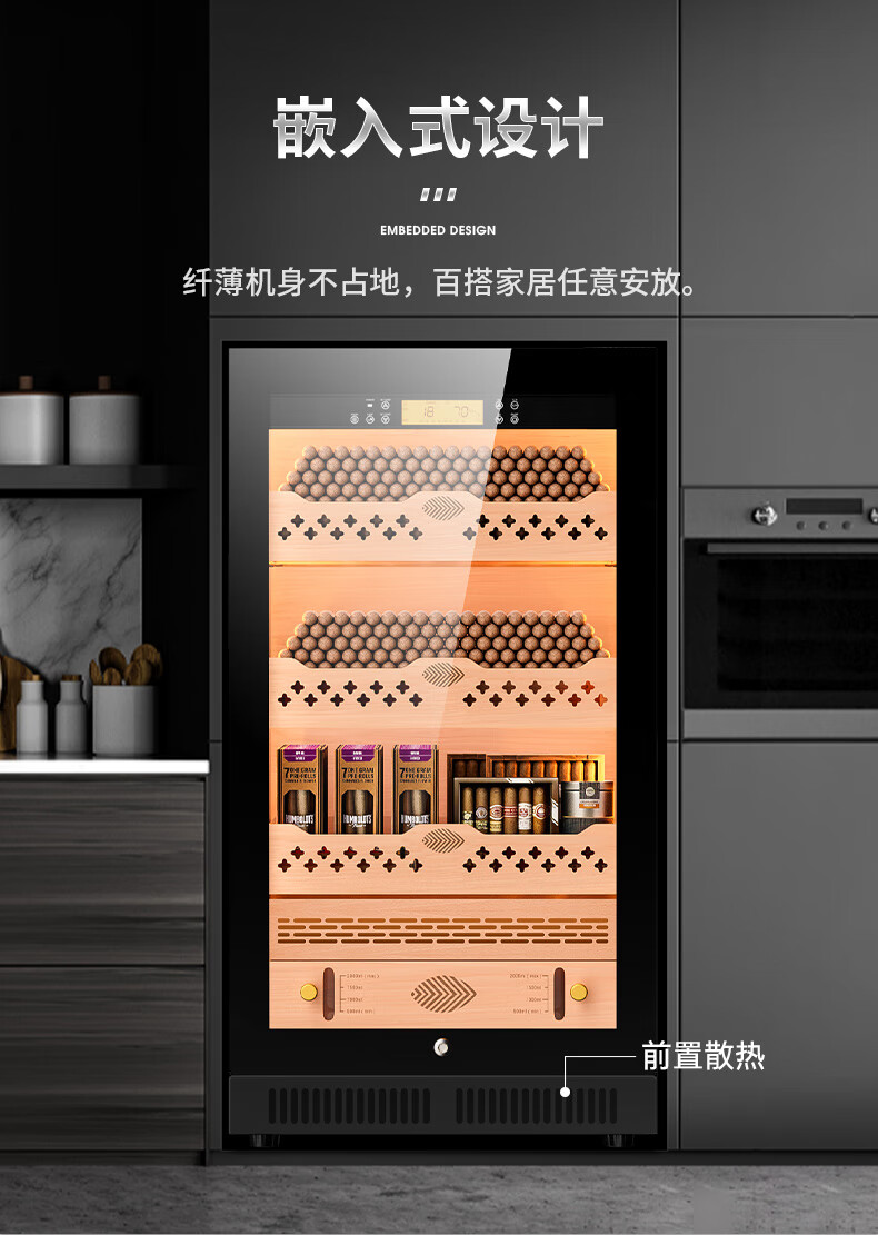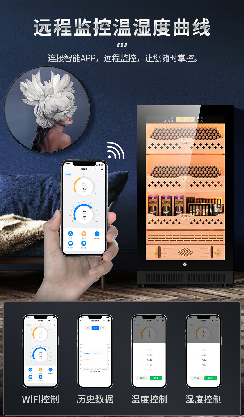 Qielong CL-22C cigar cabinet, precise and intelligent constant temperature and humidity, cedar wood liner shelf, compressor refrigeration, small household ammonia removal, small household humidification cabinet, black cedar wood liner, WiFi + purified ammonia + constant temperature and humidity