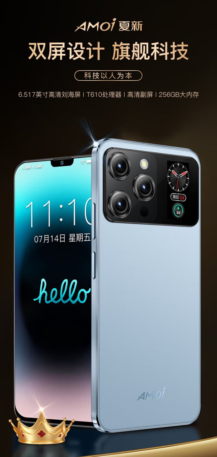 Amoi mobile phone dual screen Amoi mobile phone new student business 256G Android smartphone dual SIM full Netcom elderly phone cheap 2025 Dark Night Black 8 core + 256GB high configuration version