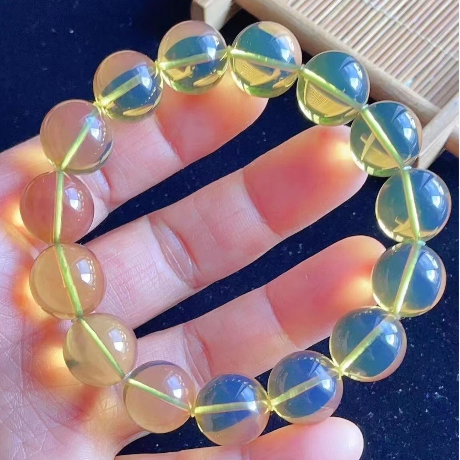 Junbu Natural Water Purified Myanmar Amber Gold Sky Blue Bracelet Men's and Women's Casual Style Bracelet Sky Blue Bracelet 16mm