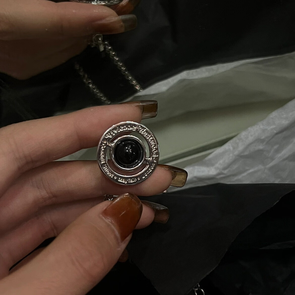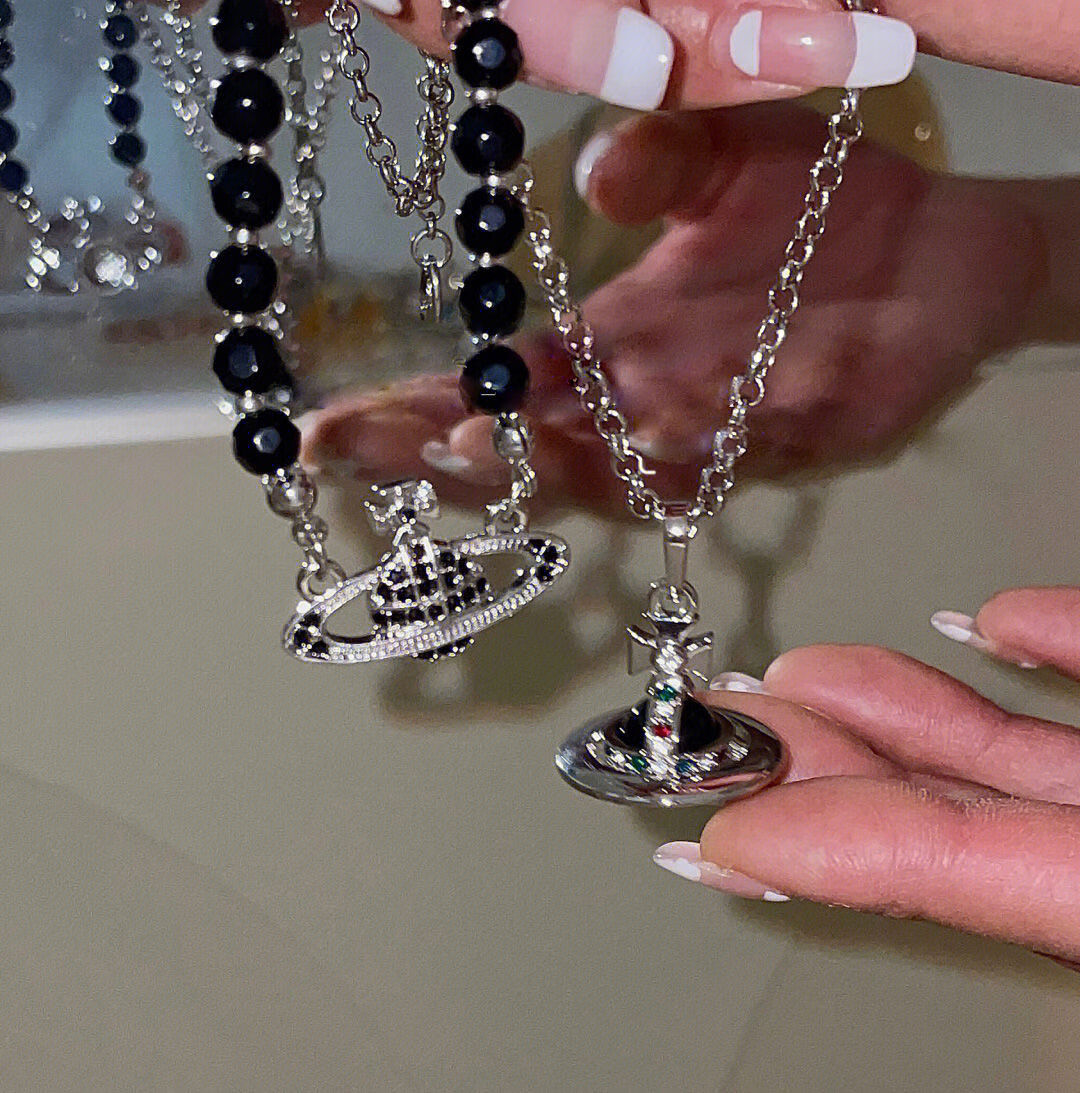 Intelligent three-dimensional Saturn West Queen Mother Glass Black Pearl Planet Clavicle Chain Necklace Women's Light Luxury Niche Design High-level Sense Black Planet Pendant Necklace (Keeps Color for Half a Year)