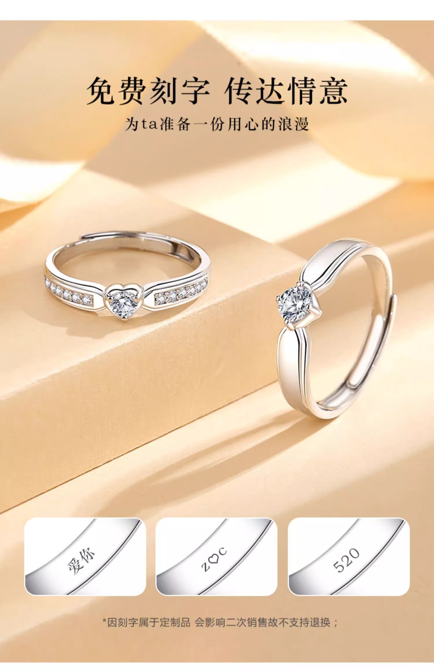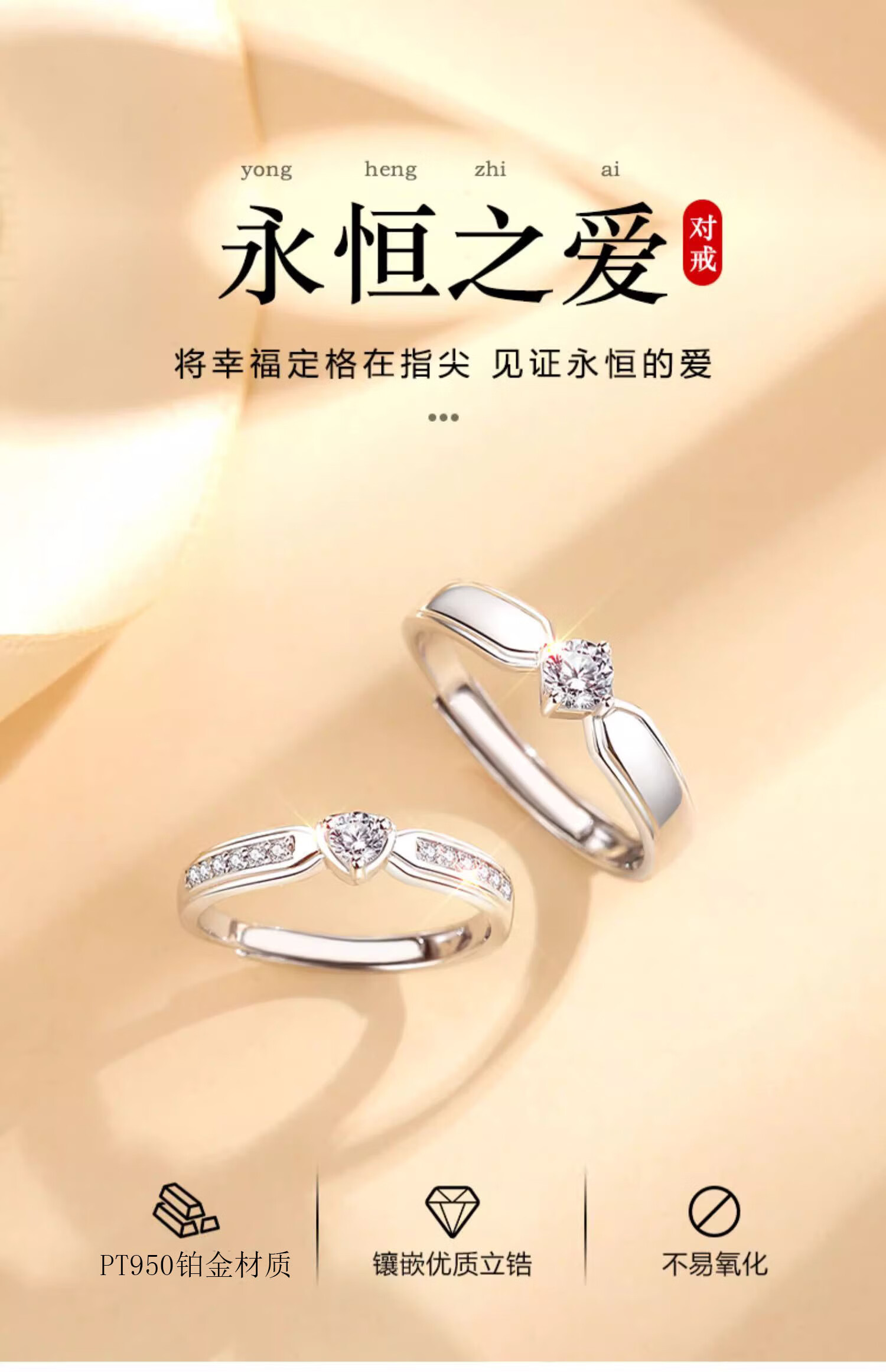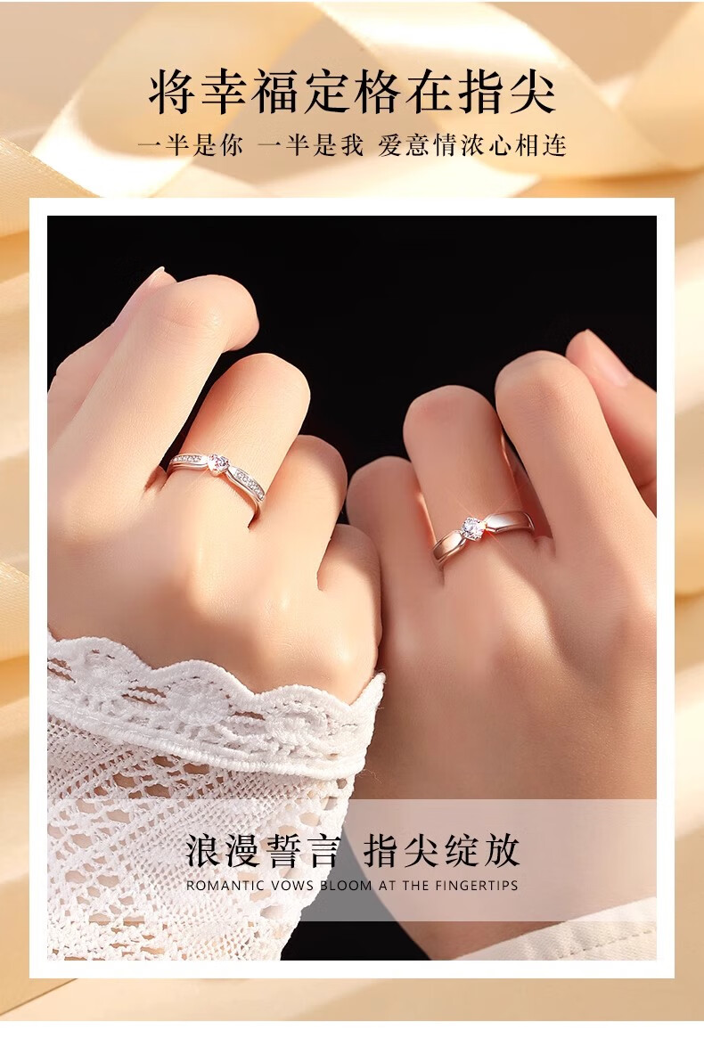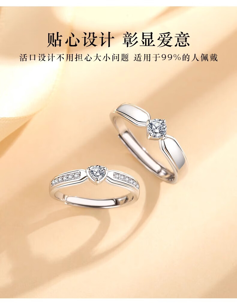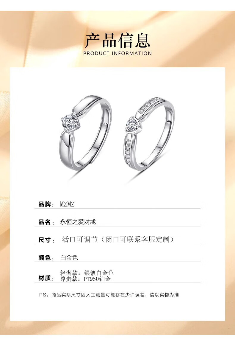 MZMZ Eternal Love Platinum Couple Ring PT950 Platinum Pairing Ring Valentine's Day Birthday Gift for Girlfriend and Wife Light Luxury Style - Couple Ring