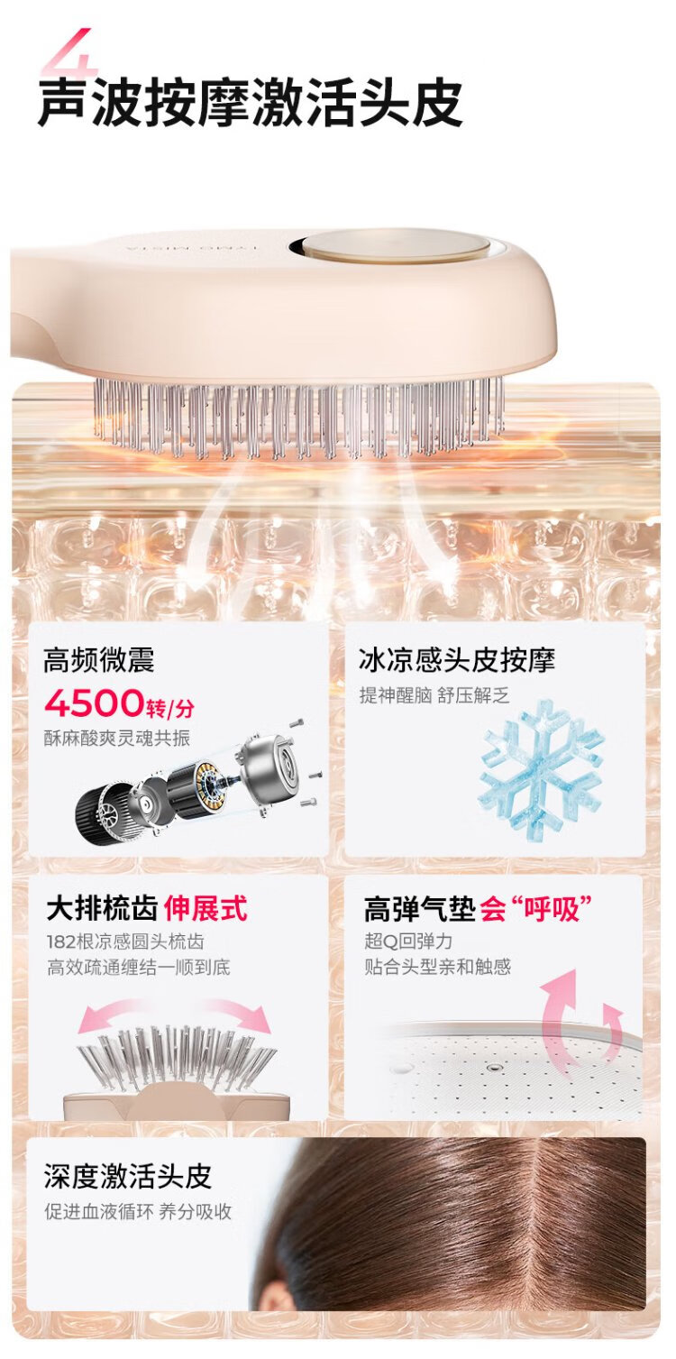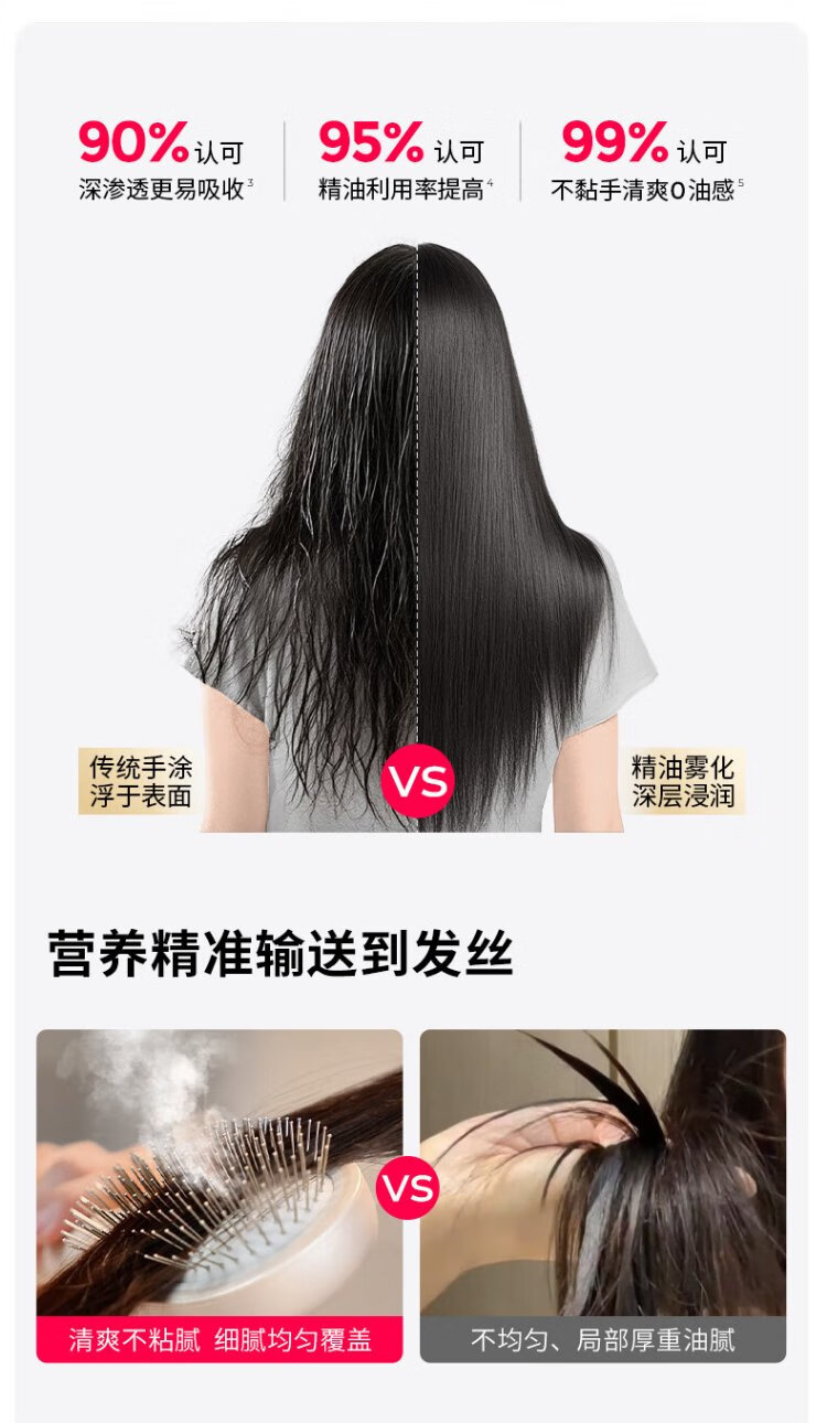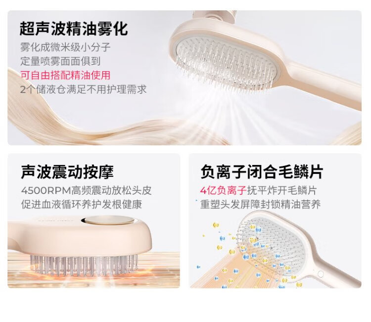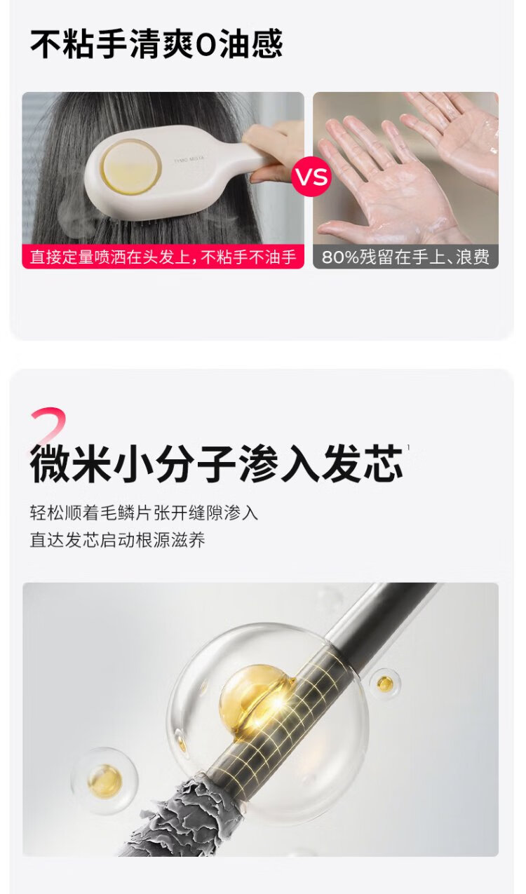TYMO straight hair comb massage comb essential oil mist nourishes scalp massage 400 million negative ions essential oil hair care hair care scalp health essential oil mist massage comb gold pink