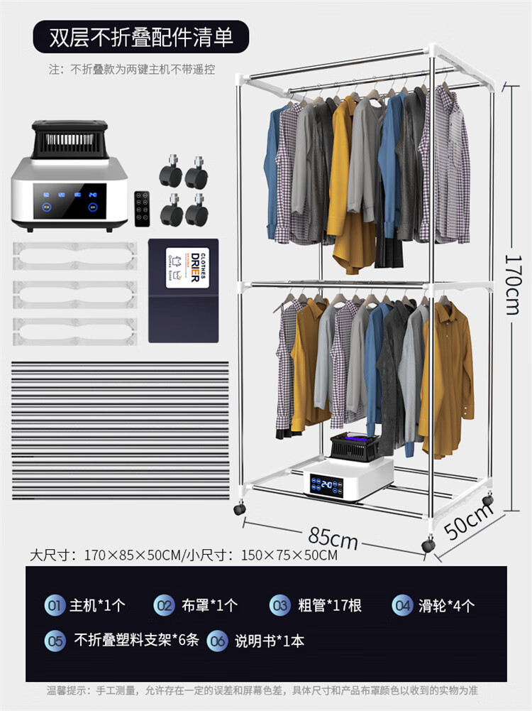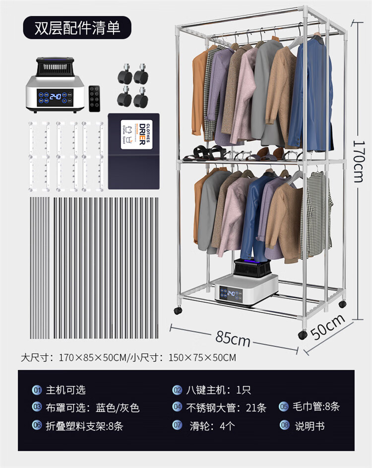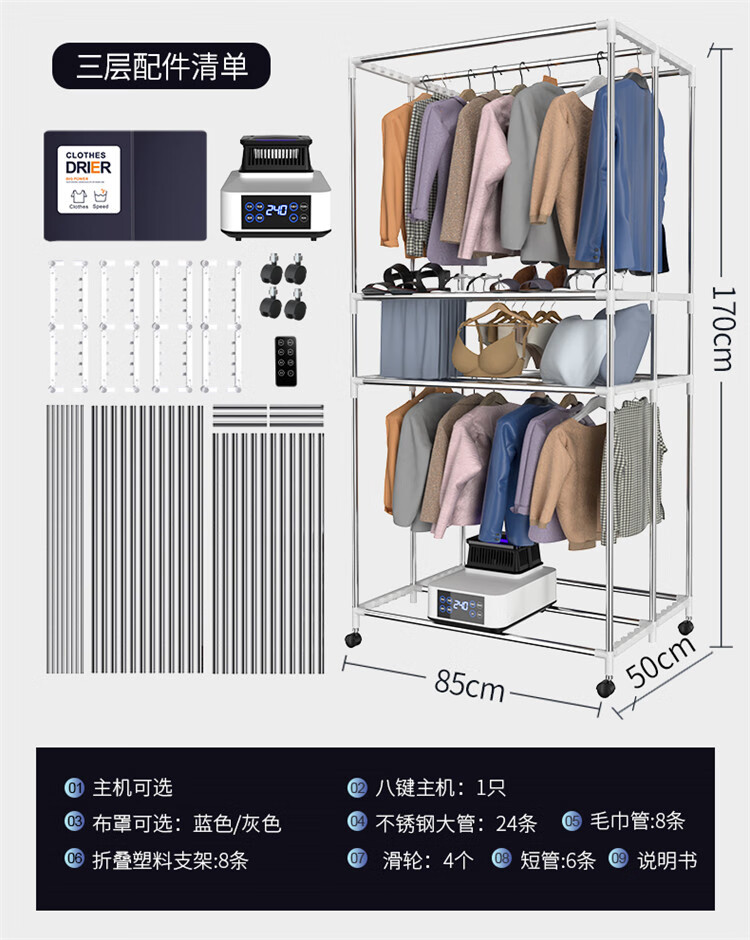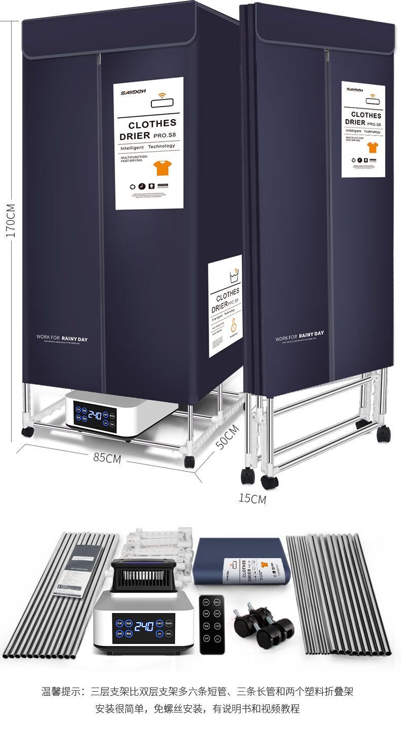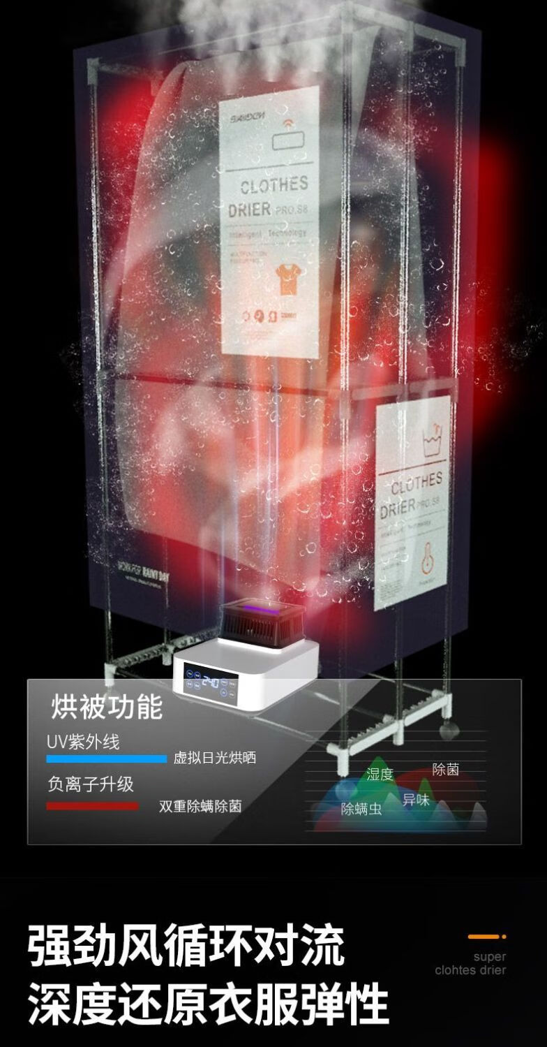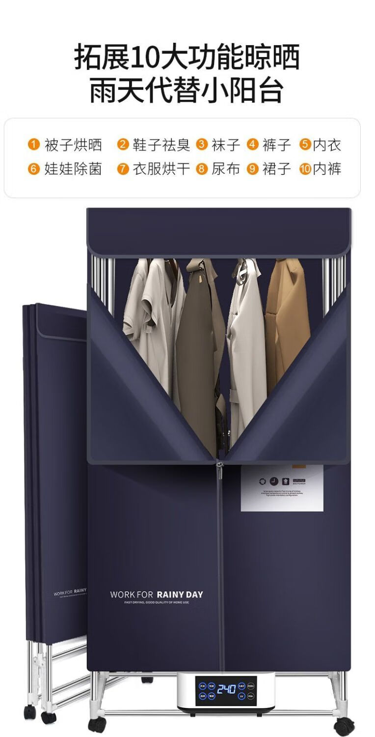 Wet clothes quick-drying dryer household clothes dryer foldable wardrobe style air drying clothes baby underwear dehumidification and sterilization large capacity timed drying easy storage top model foldable 12-speed speed adjustment two-layer rack 550L
