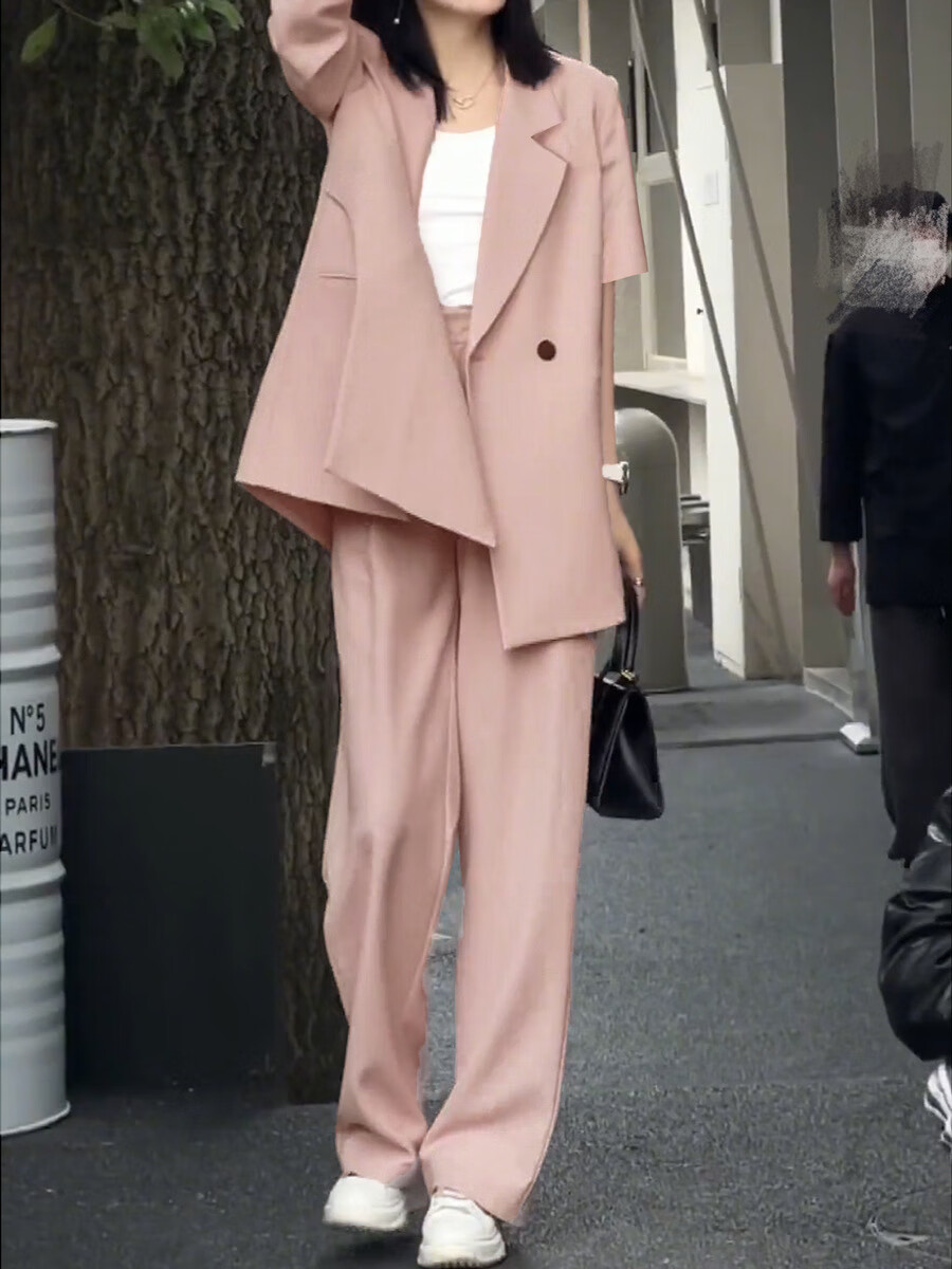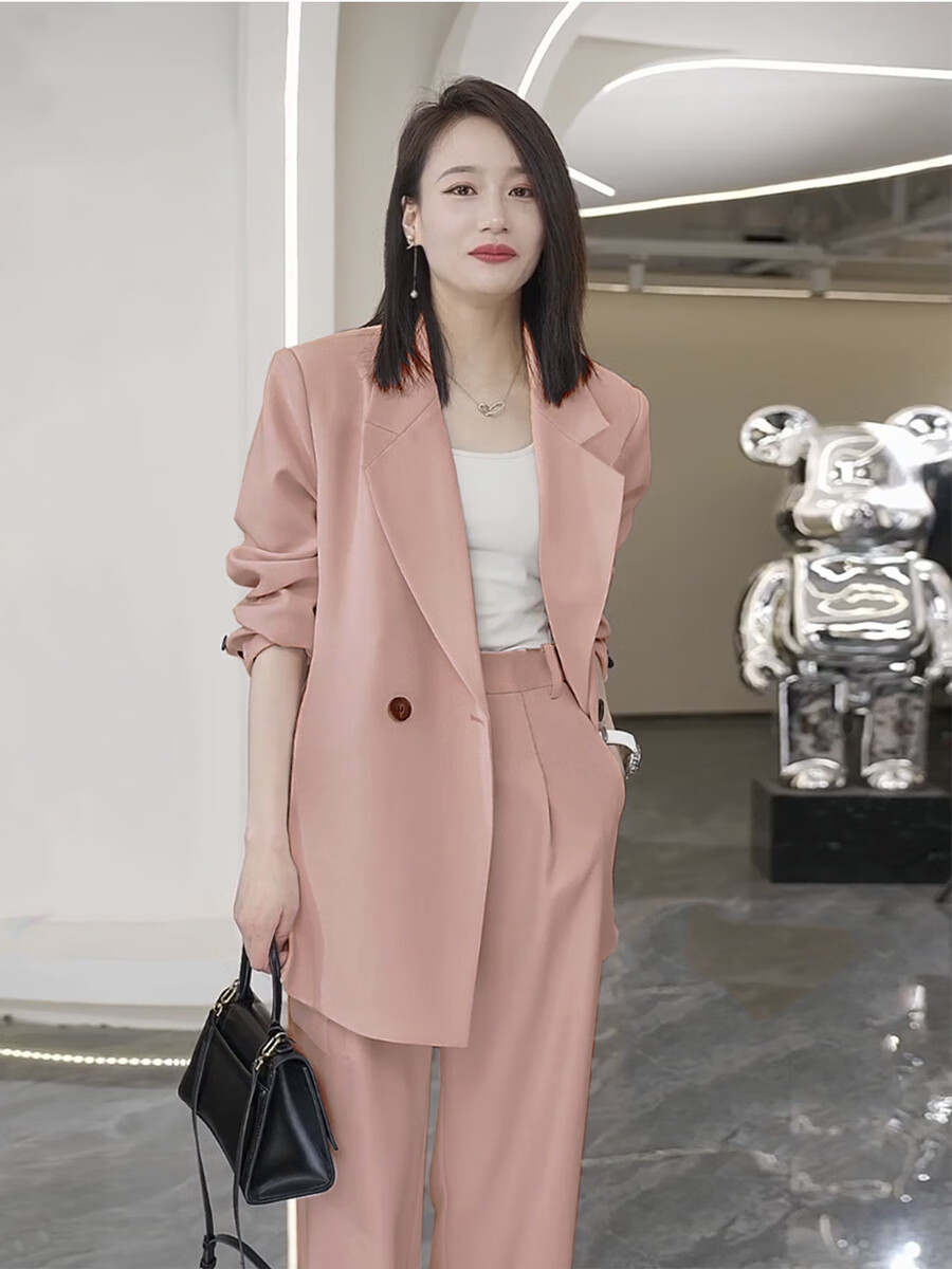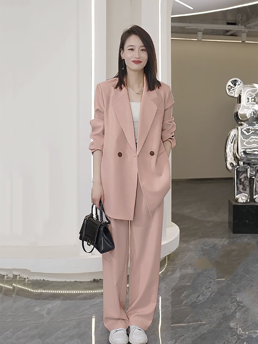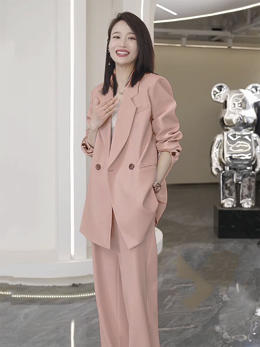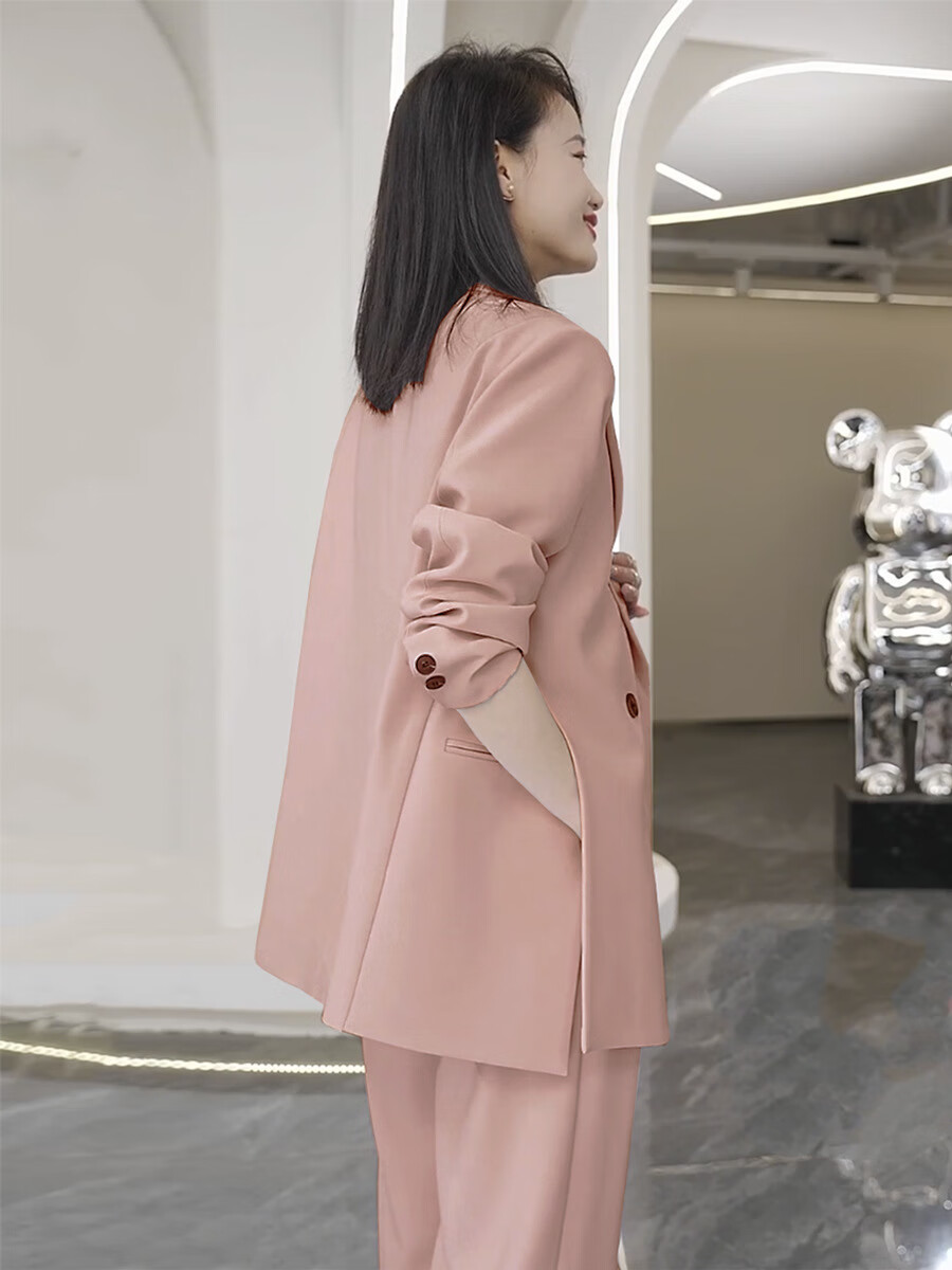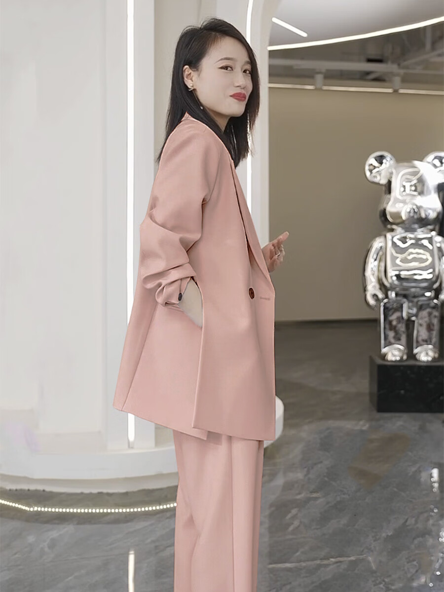 ANGEL MOOD spring extra large size fat girl m suit jacket wide leg pants suit slim casual pink loose suit 200 Jin Jin equals 0.5 kg Pink suit (spring and autumn) XL (recommended 110-135 Jin Jin equals 0.5 kg)