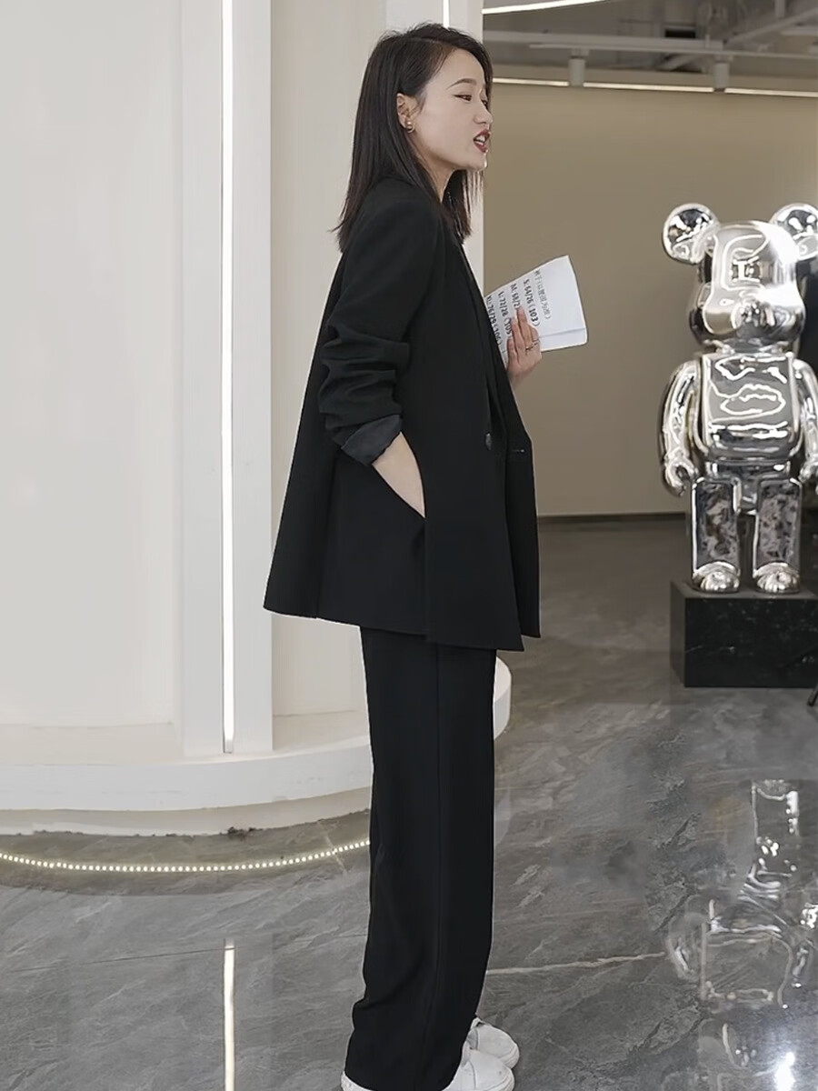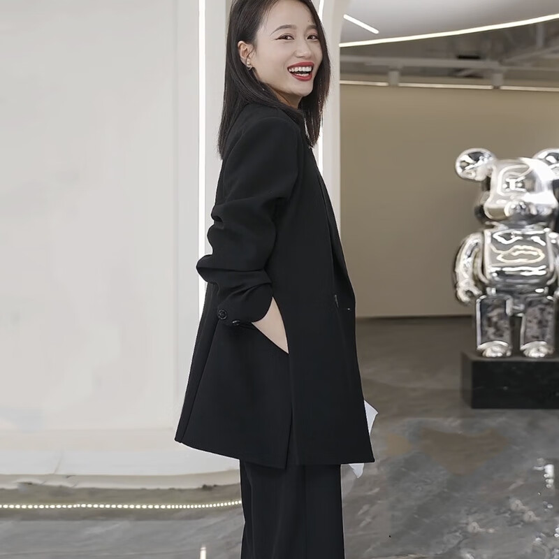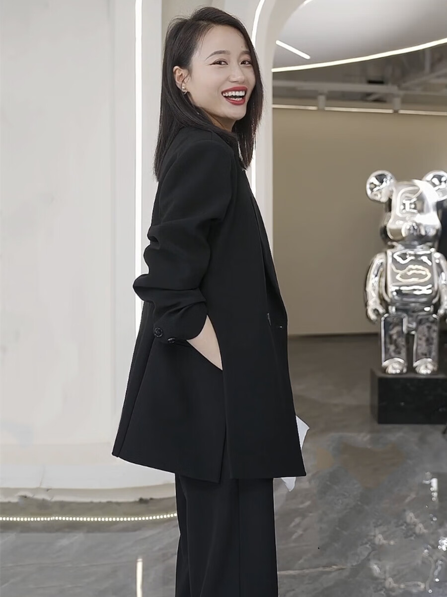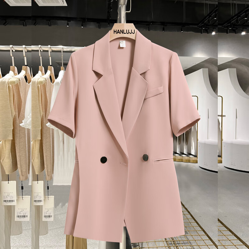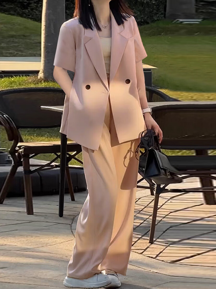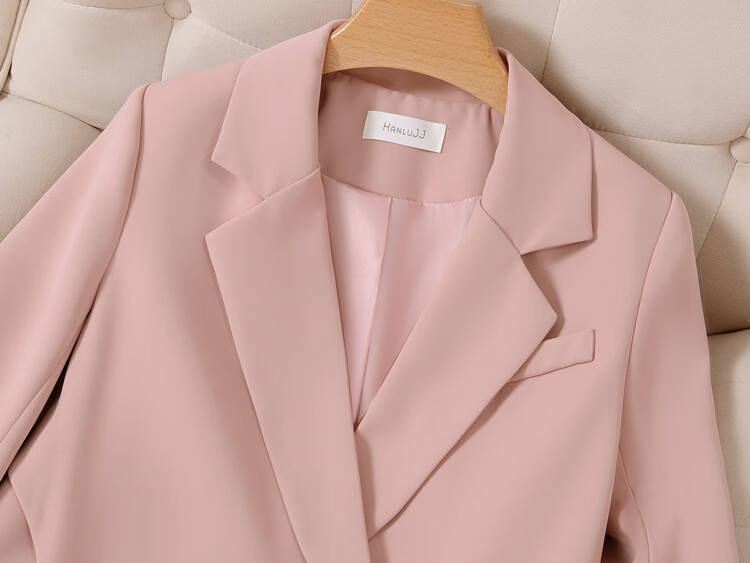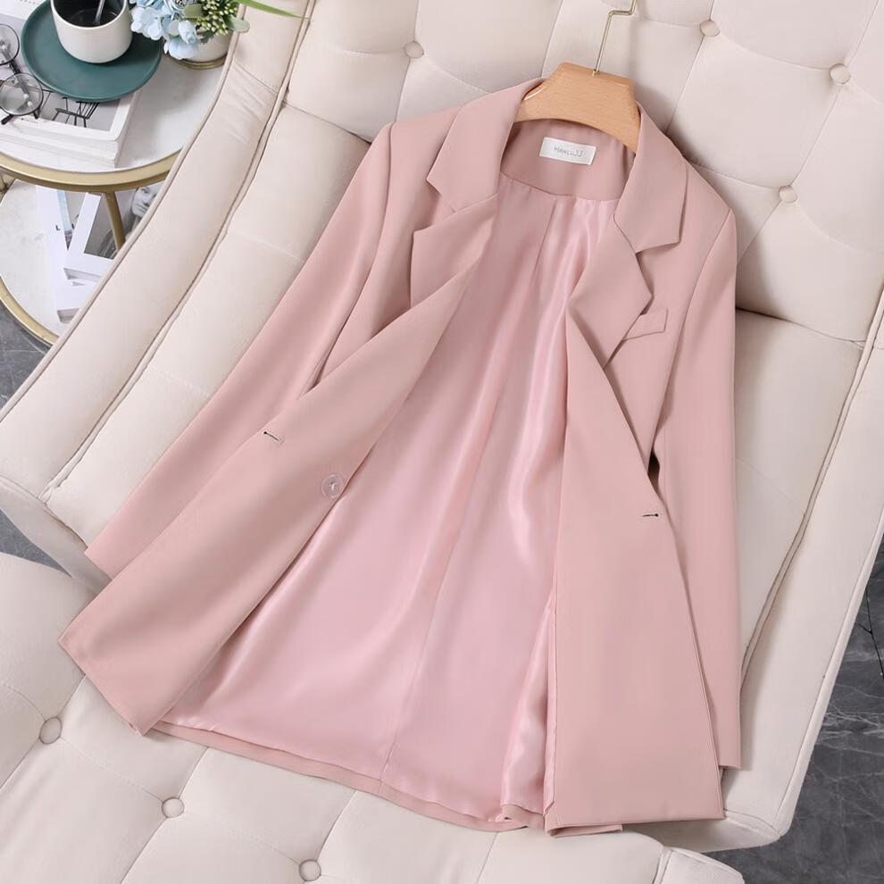 ANGEL MOOD spring extra large size fat girl m suit jacket wide leg pants suit slim casual pink loose suit 200 Jin Jin equals 0.5 kg Pink suit (spring and autumn) XL (recommended 110-135 Jin Jin equals 0.5 kg)