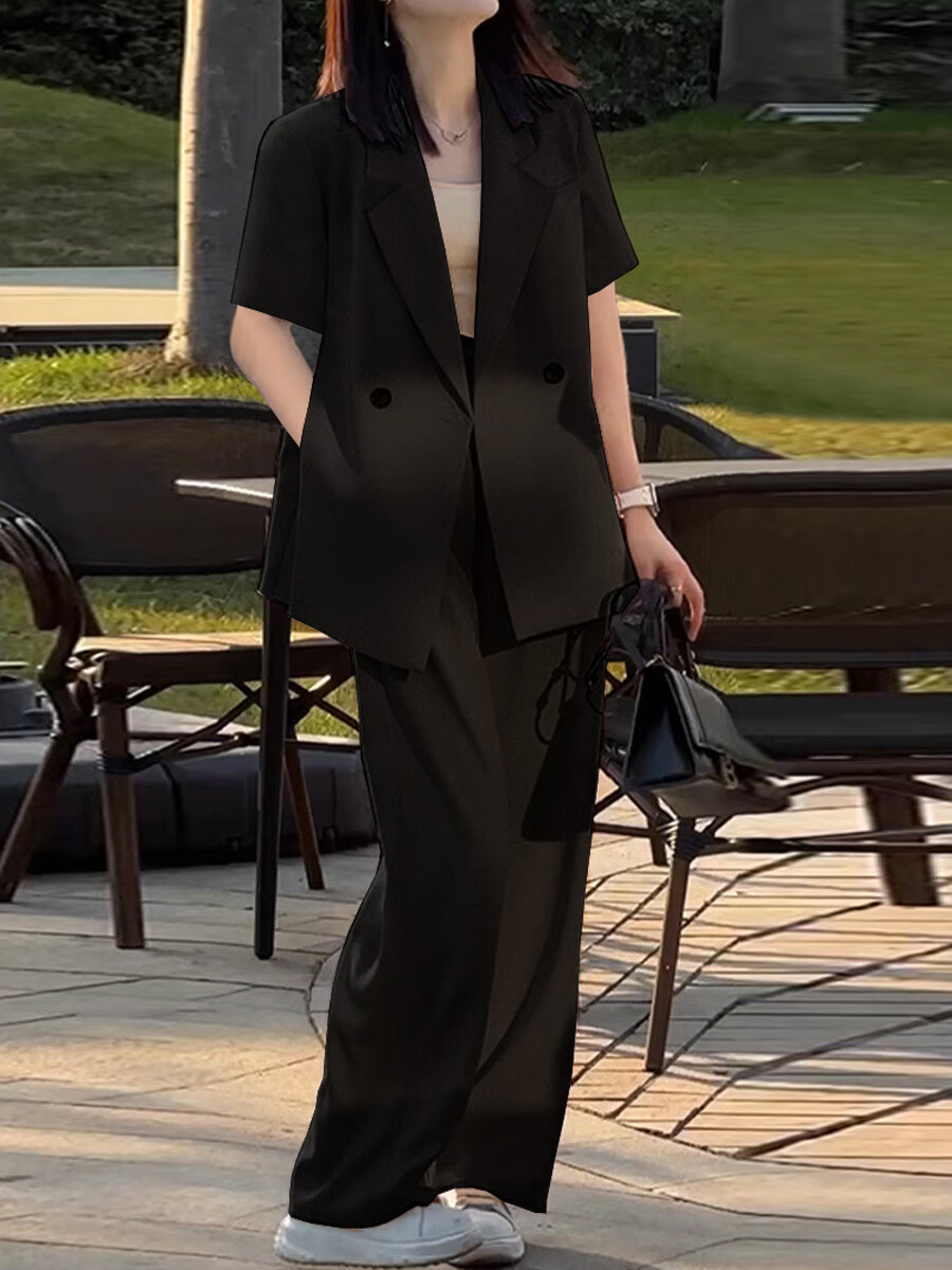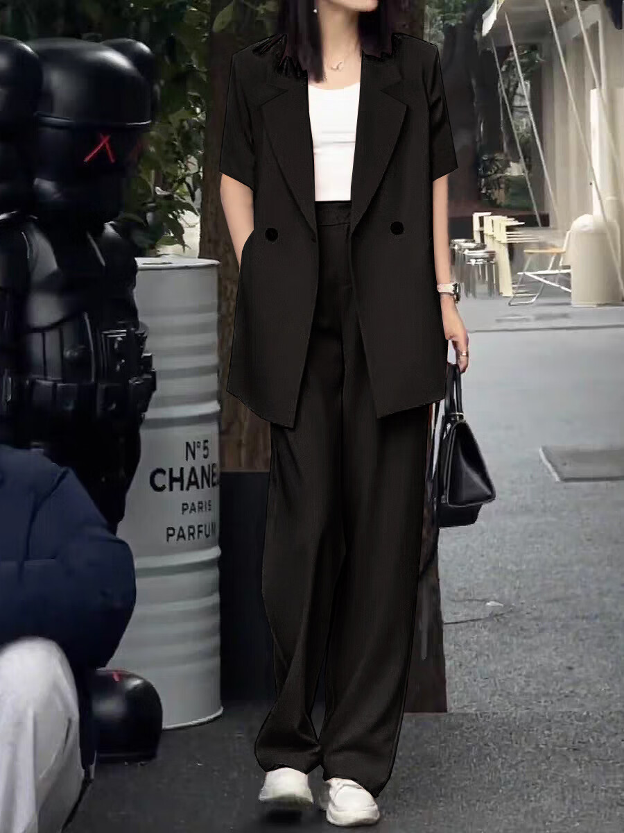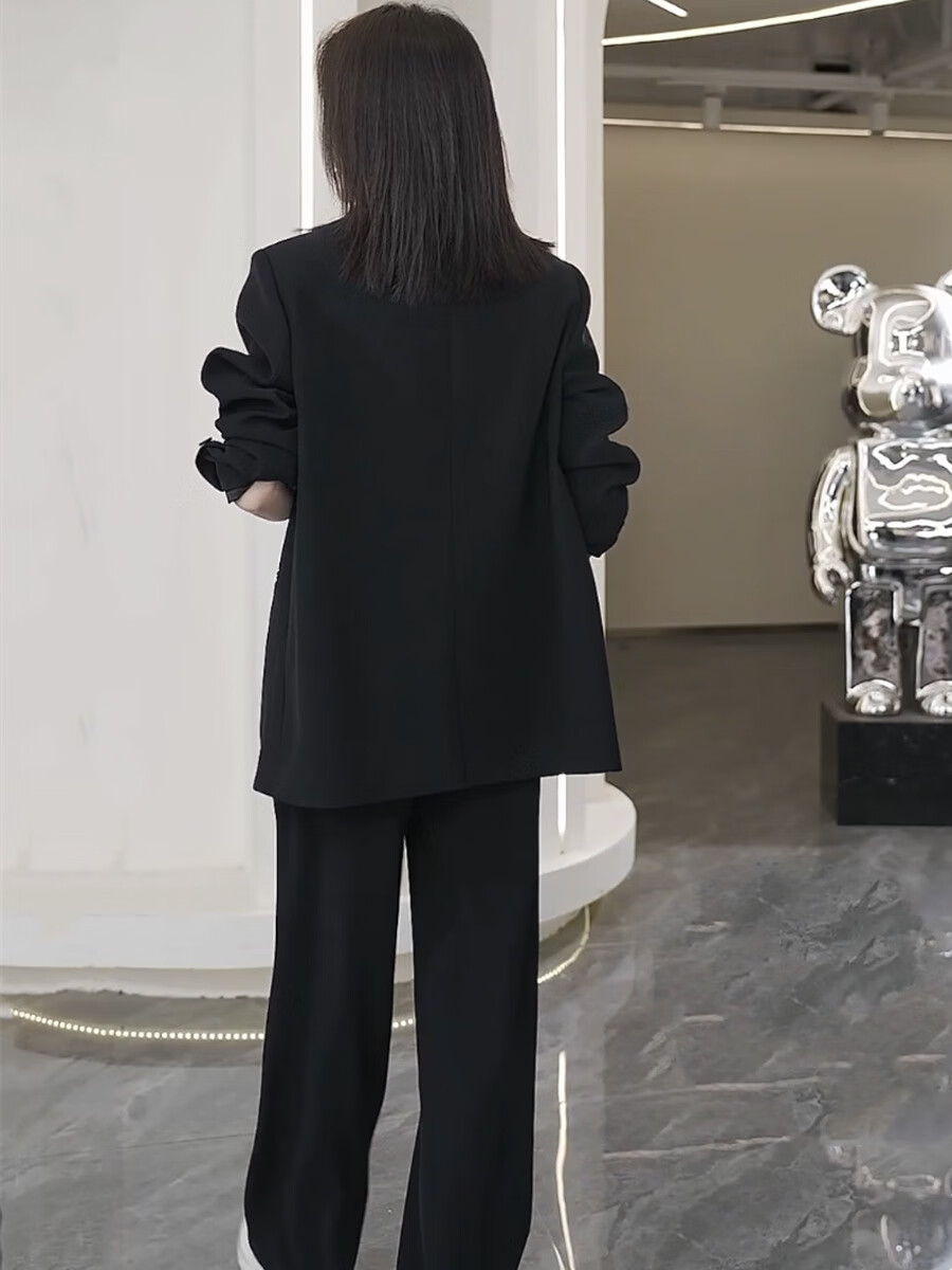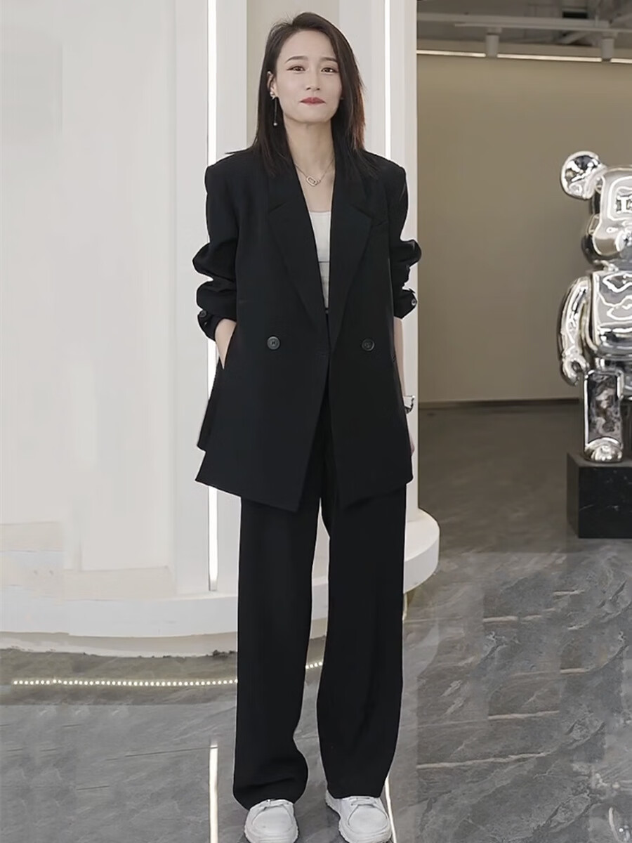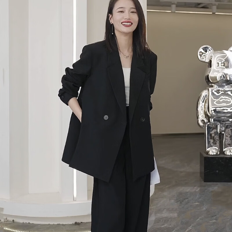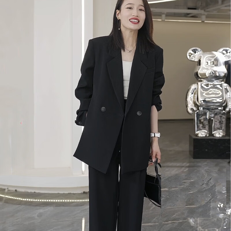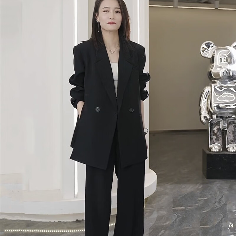 ANGEL MOOD spring extra large size fat girl m suit jacket wide leg pants suit slim casual pink loose suit 200 Jin Jin equals 0.5 kg Pink suit (spring and autumn) XL (recommended 110-135 Jin Jin equals 0.5 kg)