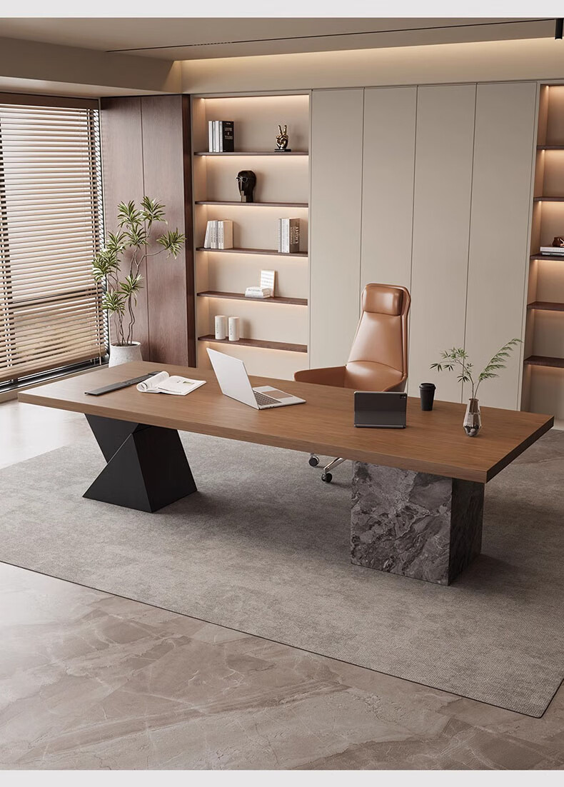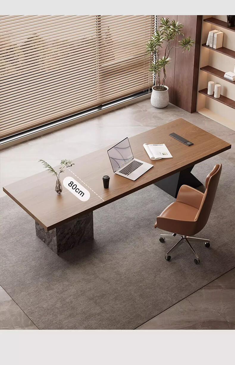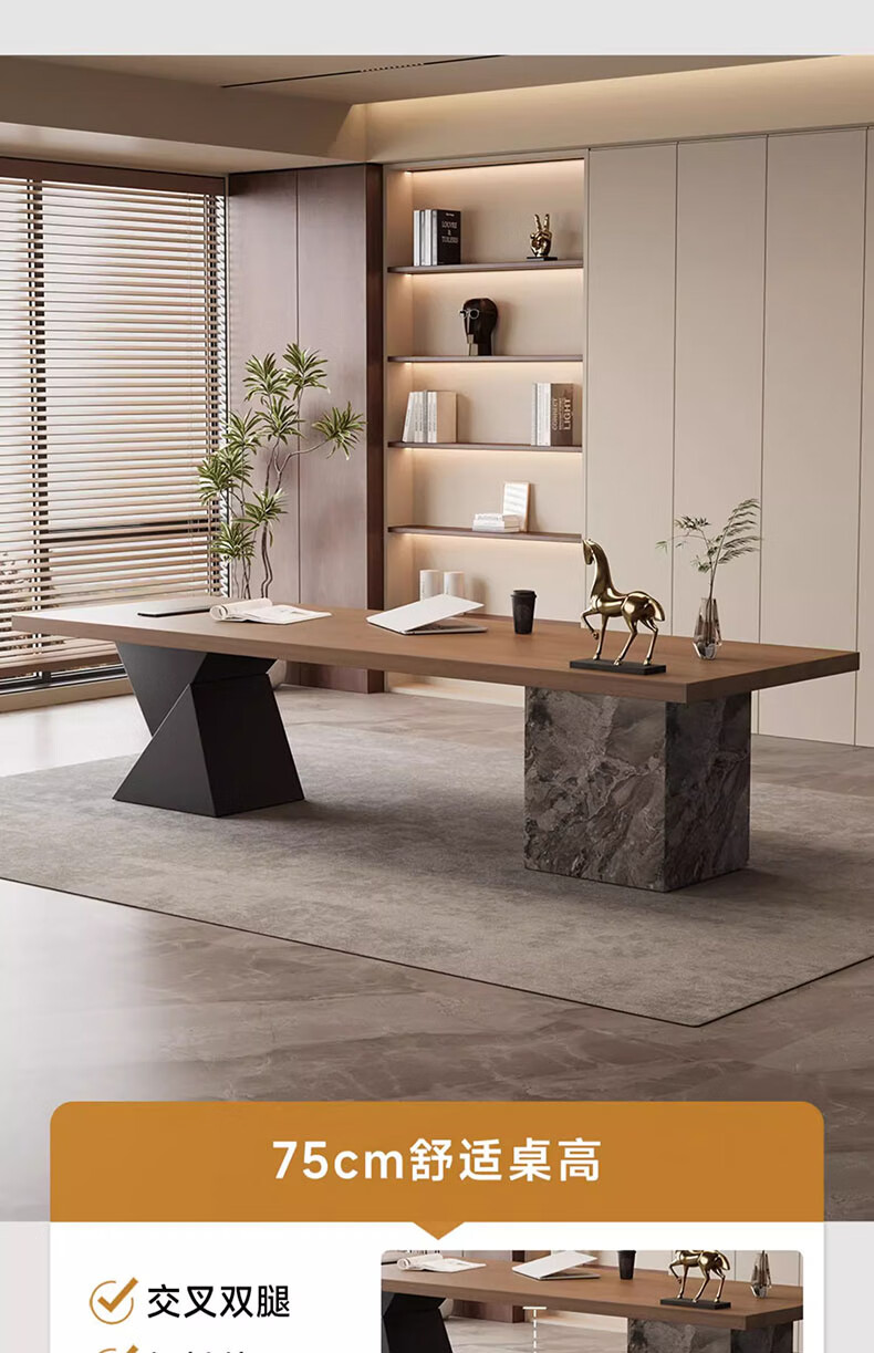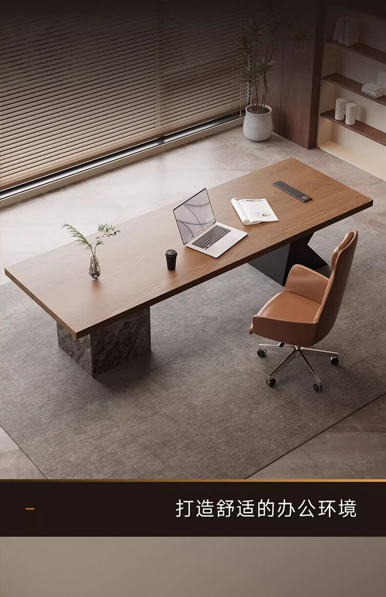 Hanjitangyu light luxury modern solid wood office desk boss desk Italian minimalist study desk home ash wood business executive desk ash wood 200*80*73*3cm office computer desk