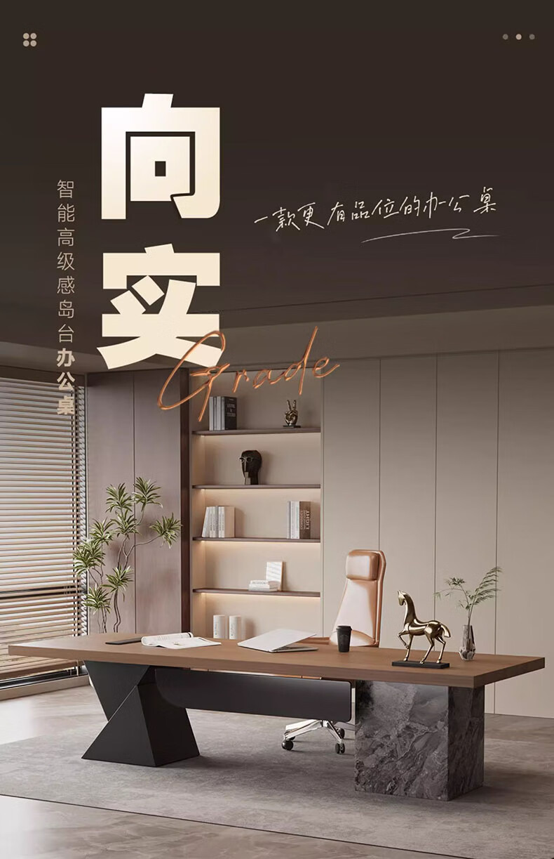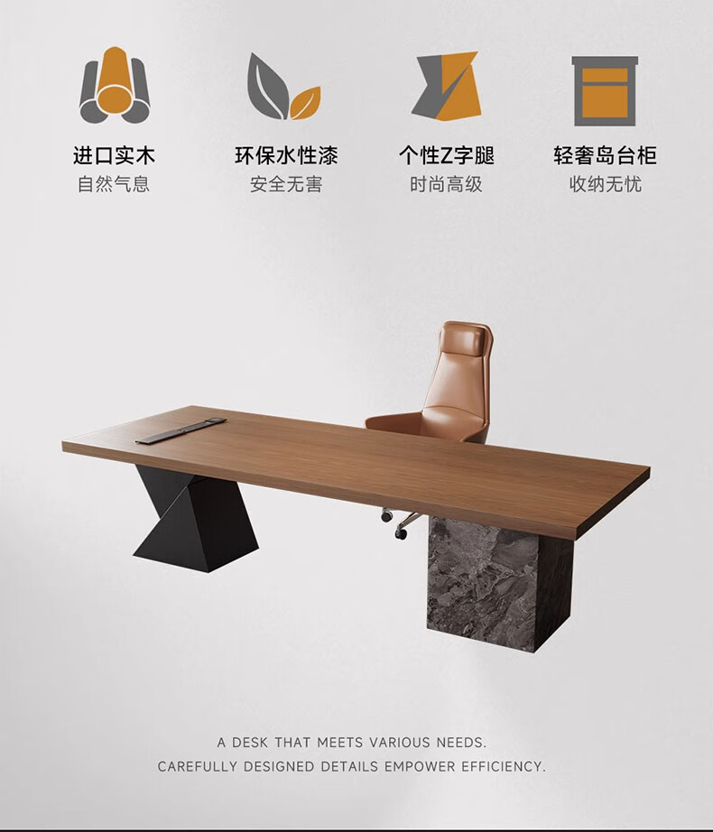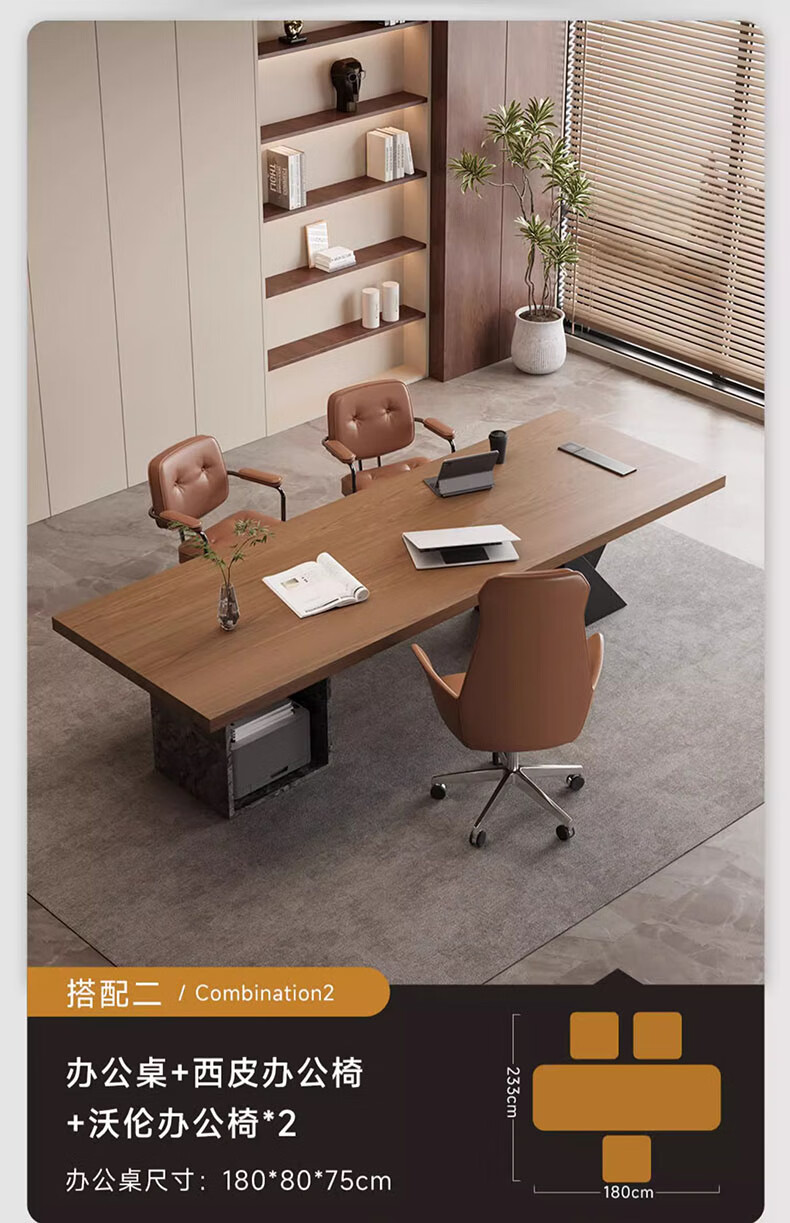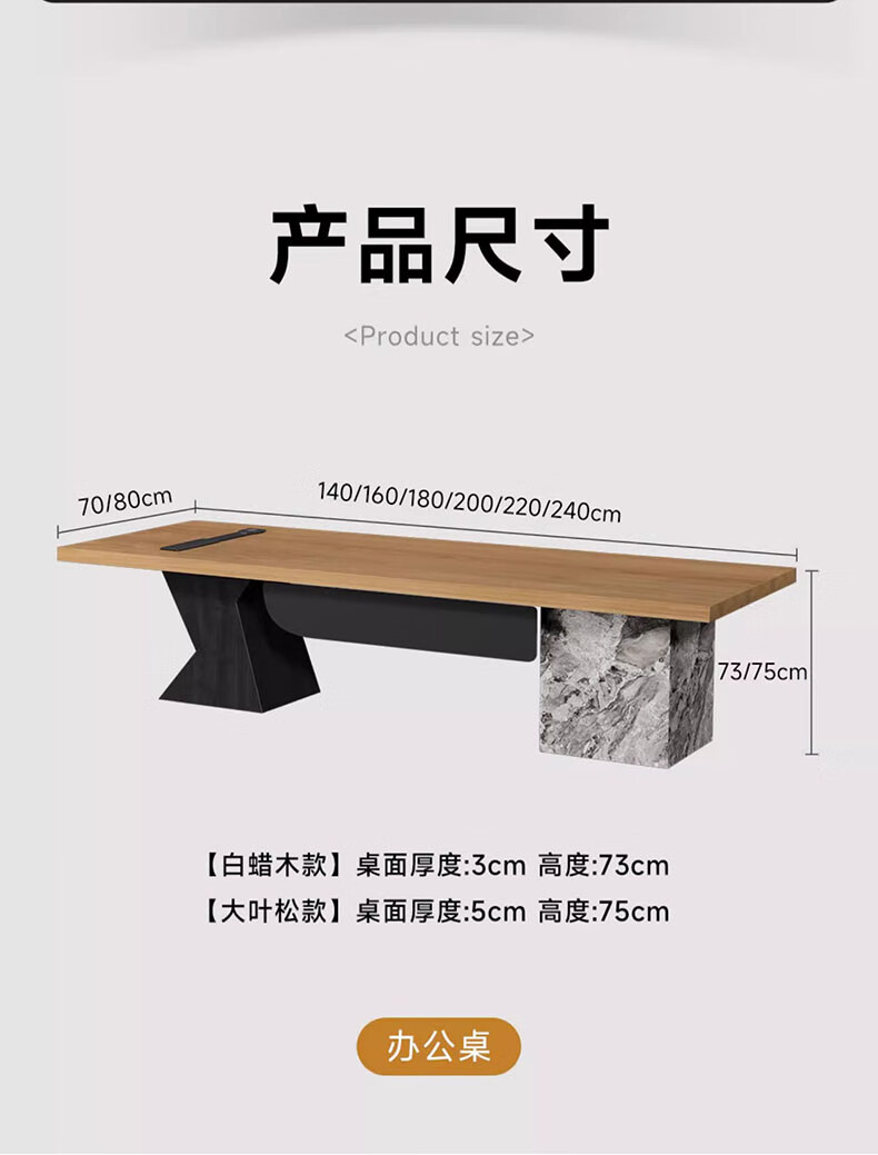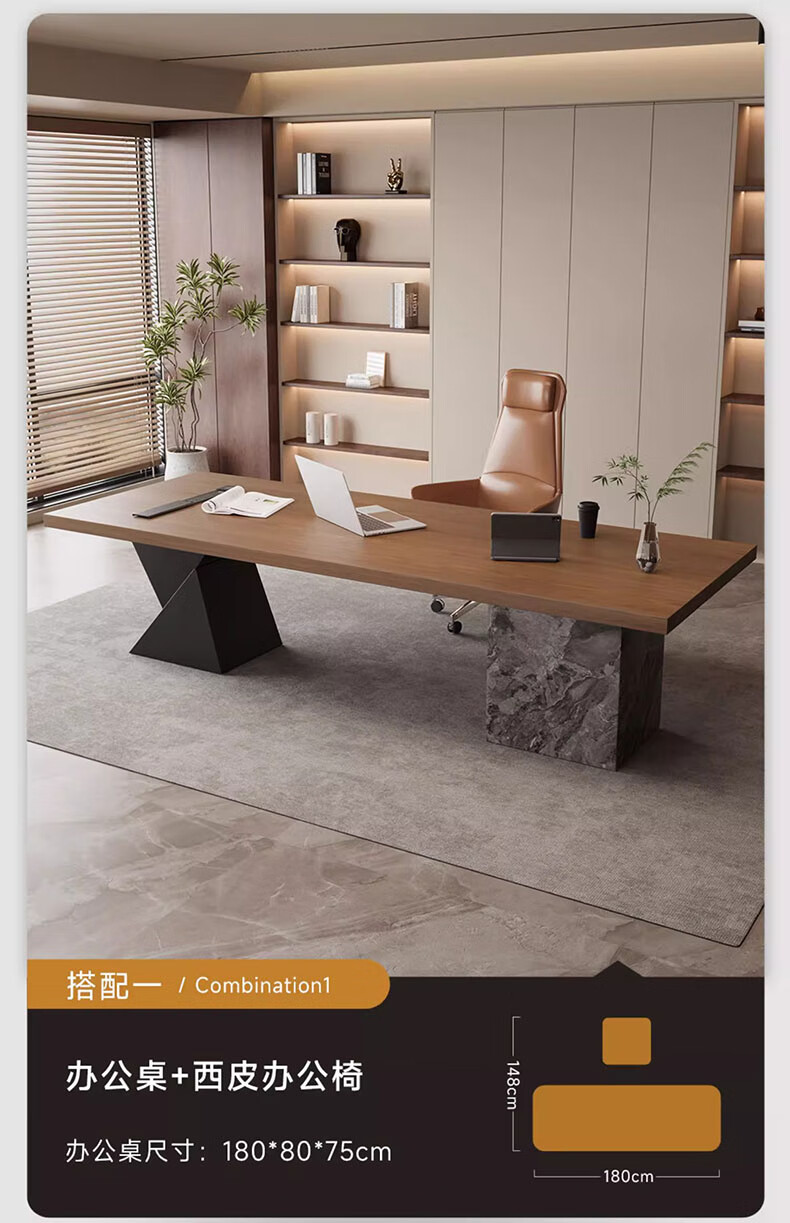 Hanjitangyu light luxury modern solid wood office desk boss desk Italian minimalist study desk home ash wood business executive desk ash wood 200*80*73*3cm office computer desk