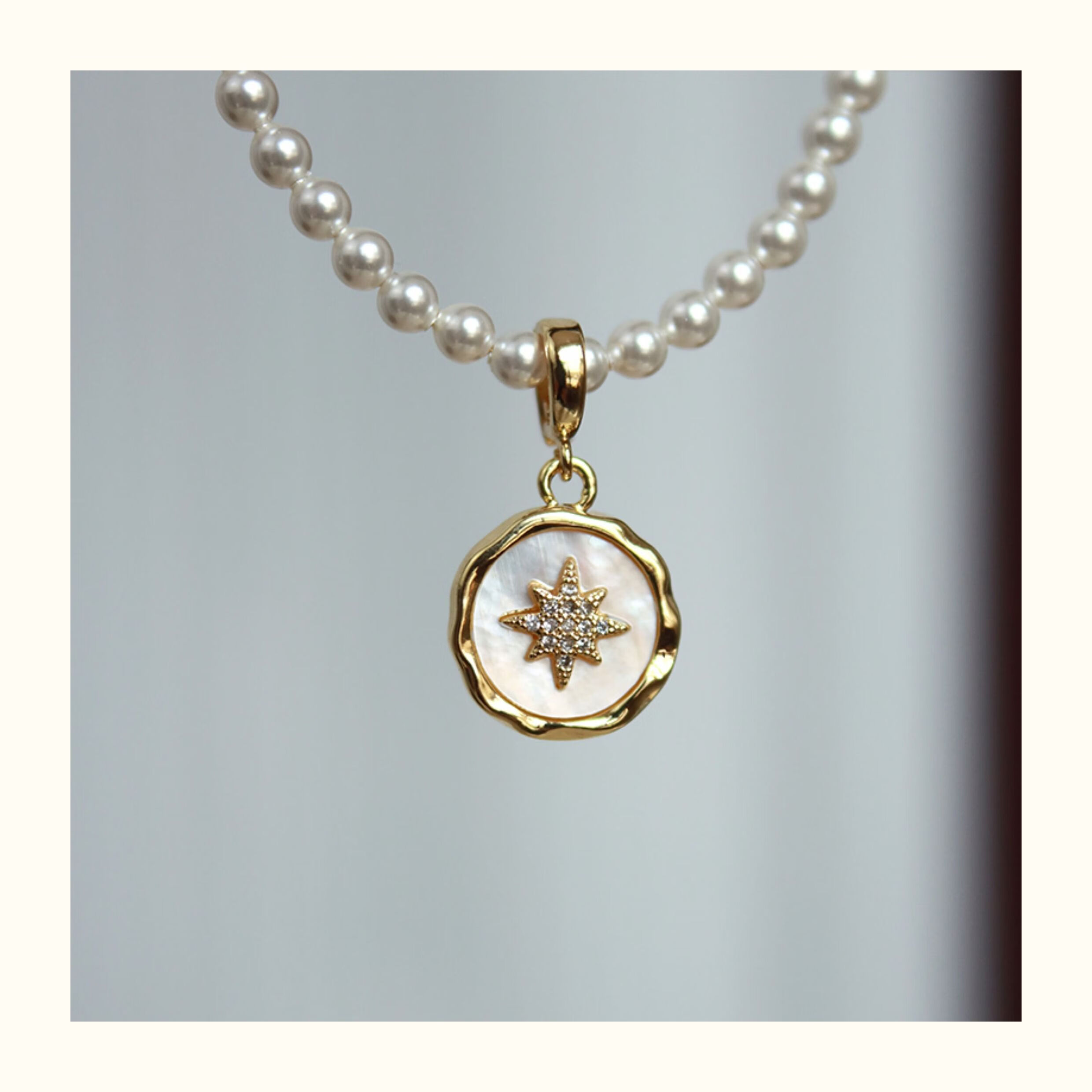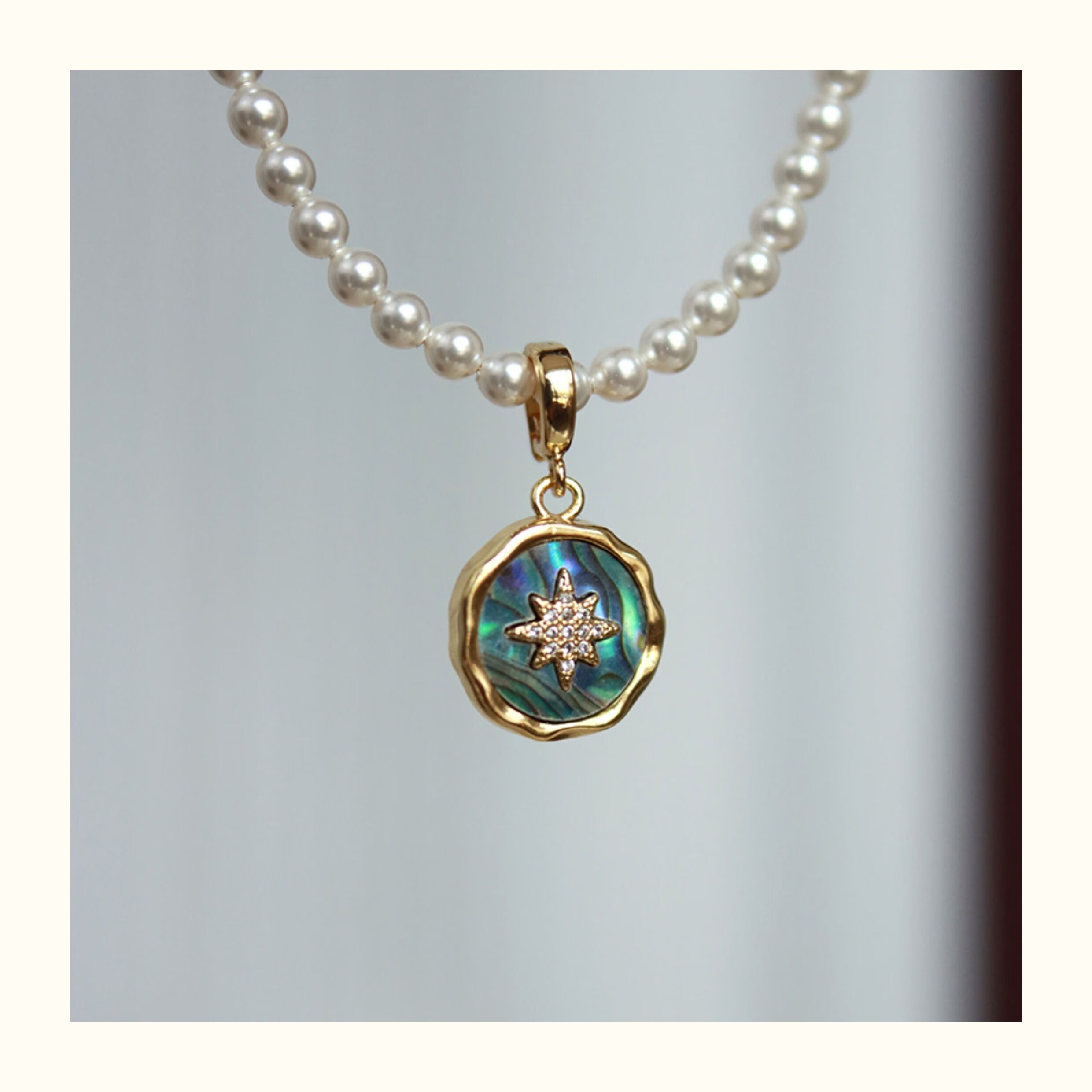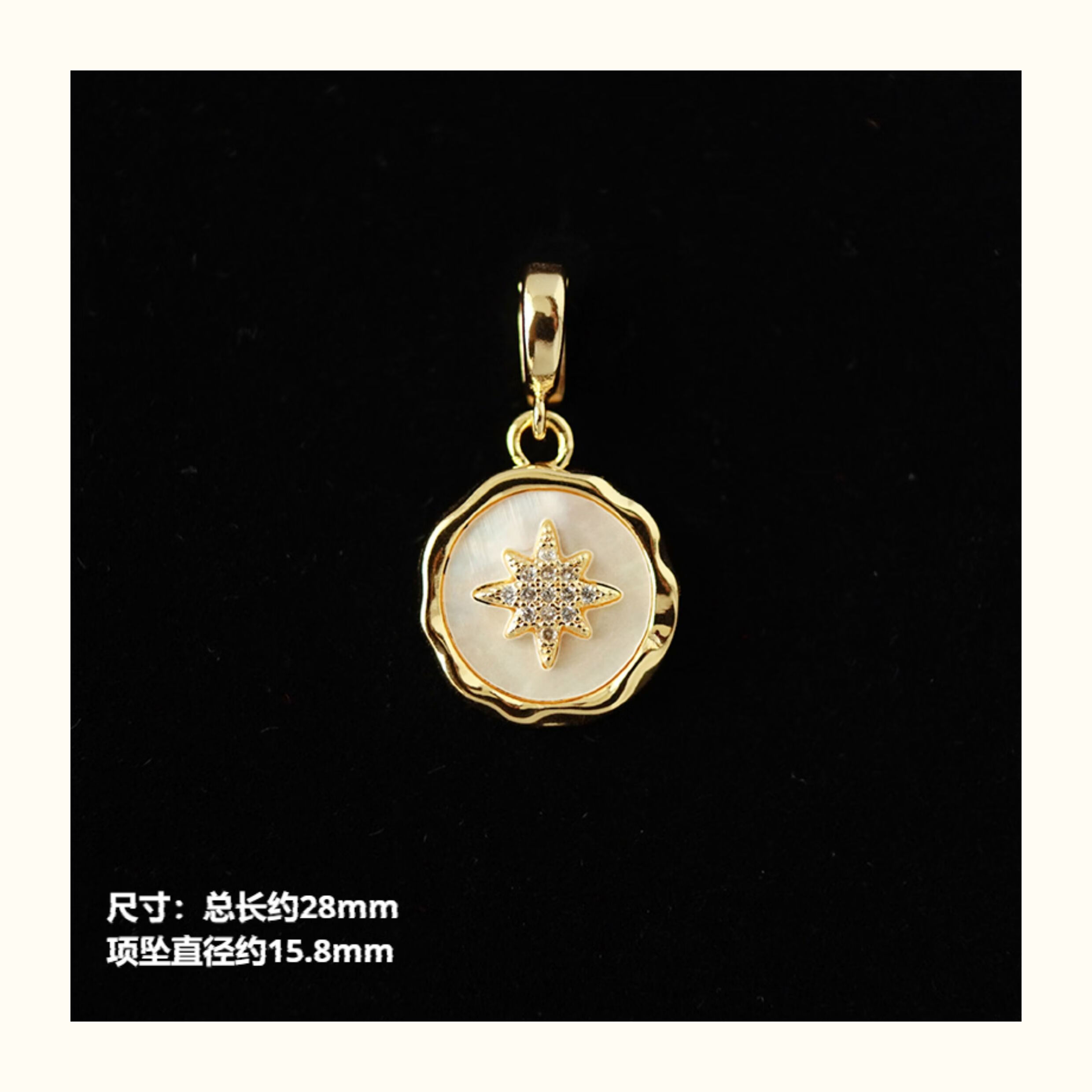 Junbu buckle pendant DIY pearl bare chain bead chain gold-plated necklace white butterfly shell round abalone shell detachable single pendant white butterfly shell single pendant