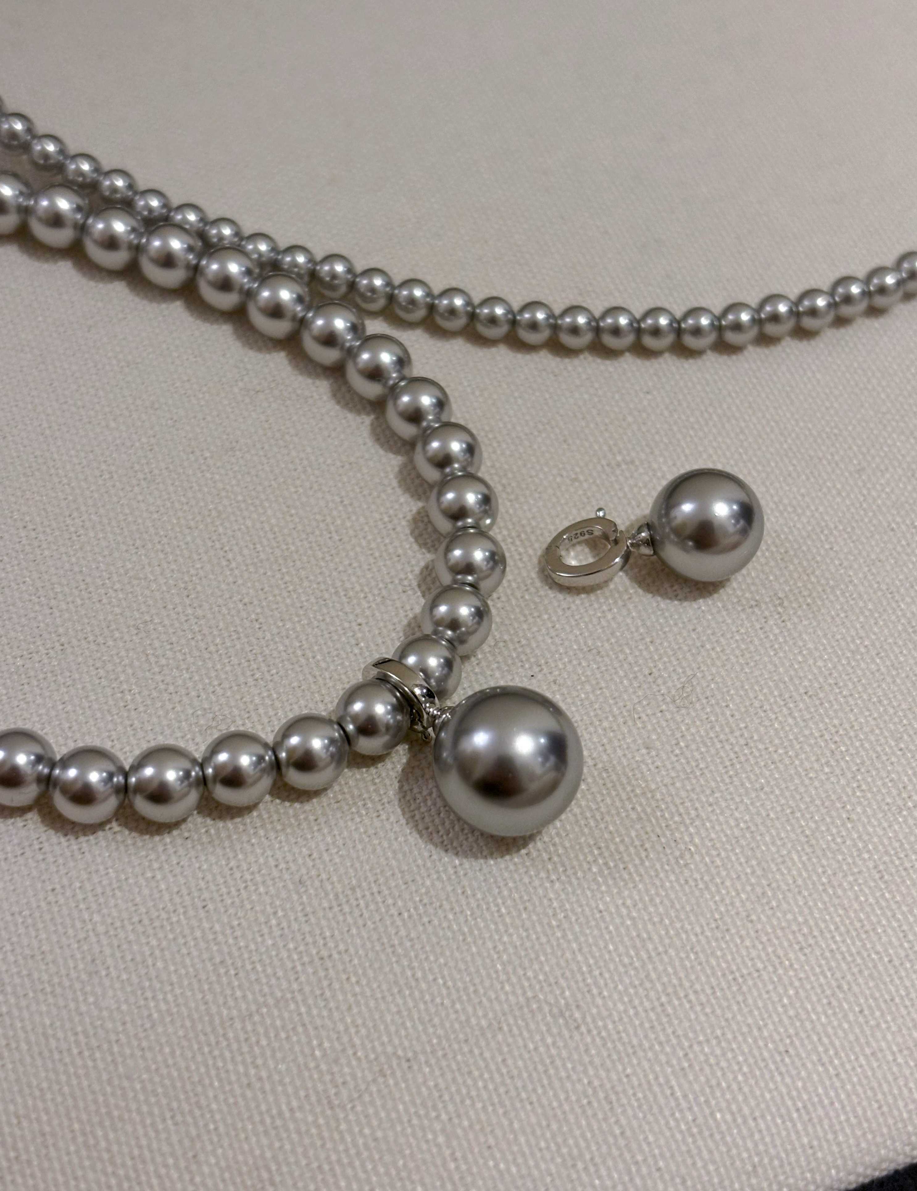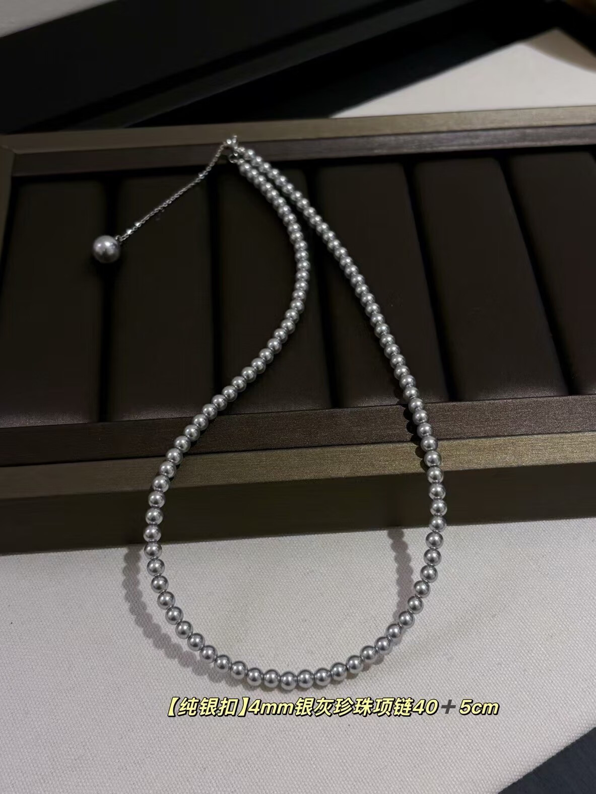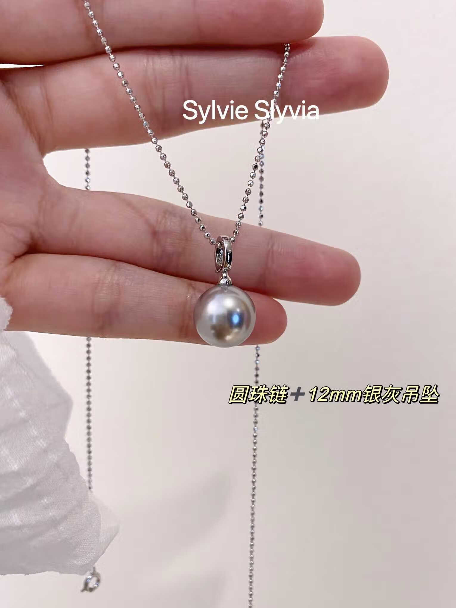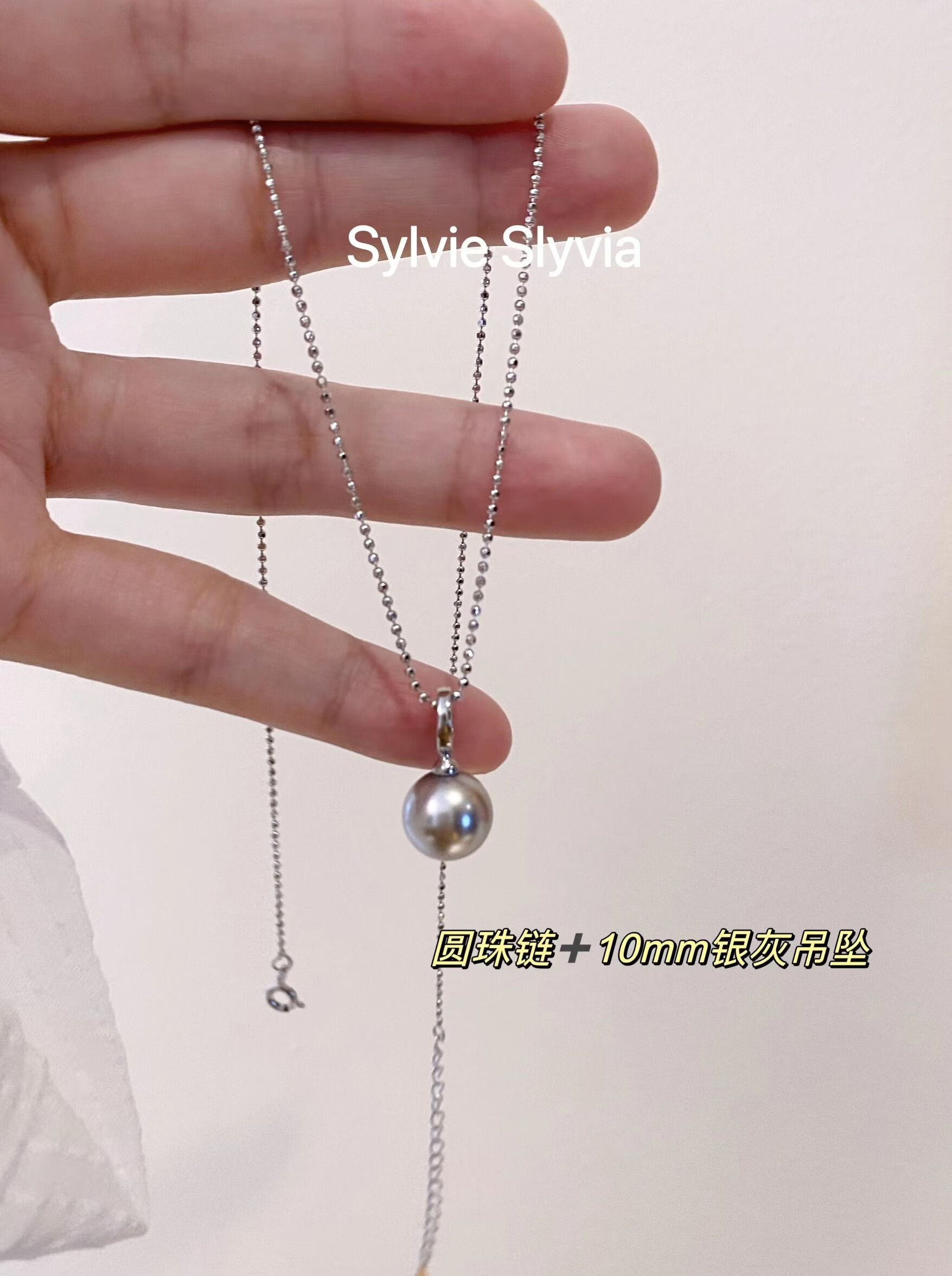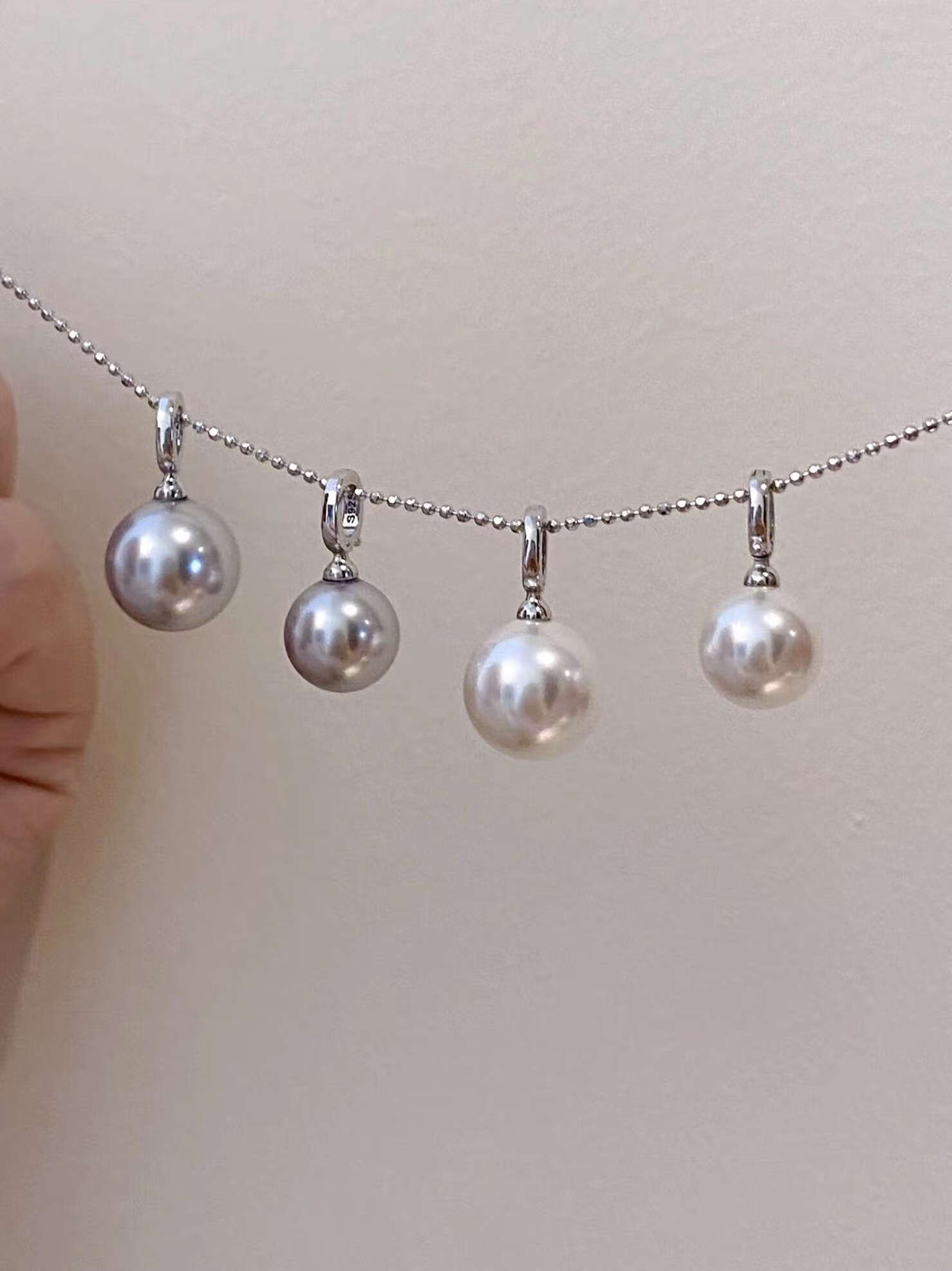 Junbushi Austrian strong light single silver gray pearl pendant buckle S925 sterling silver necklace simple and high-end female sterling silver Australian white 12mm necklace 40+5CM