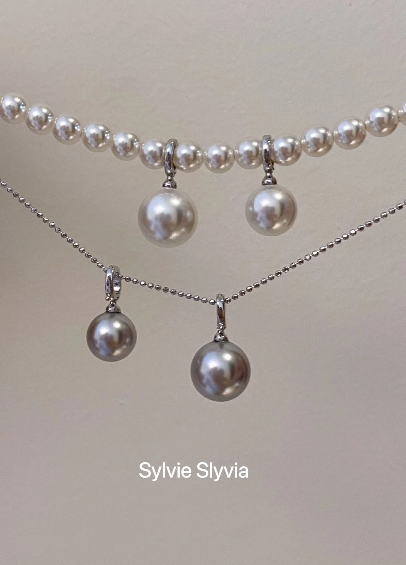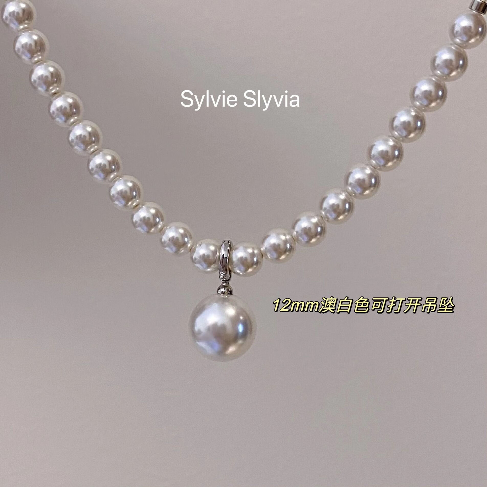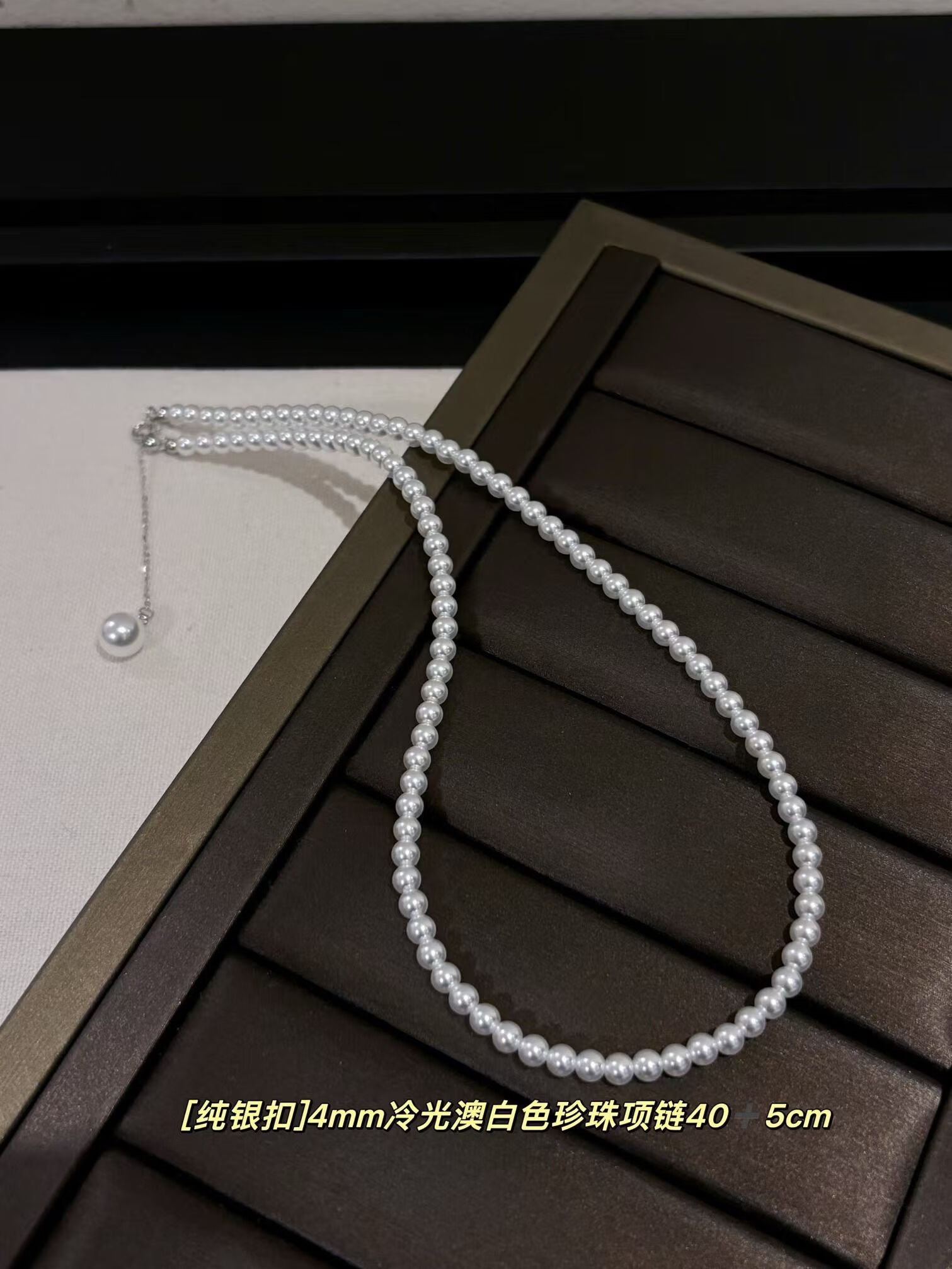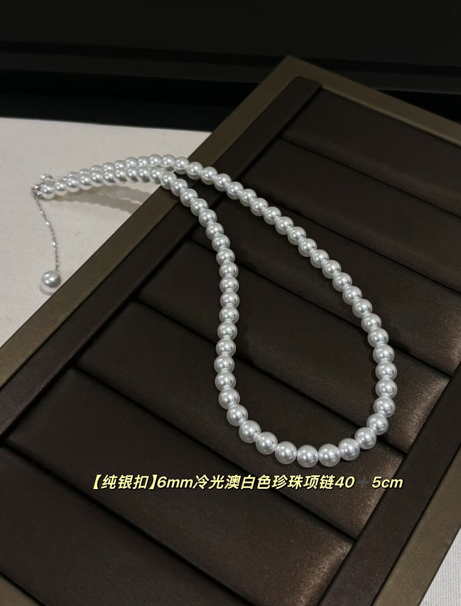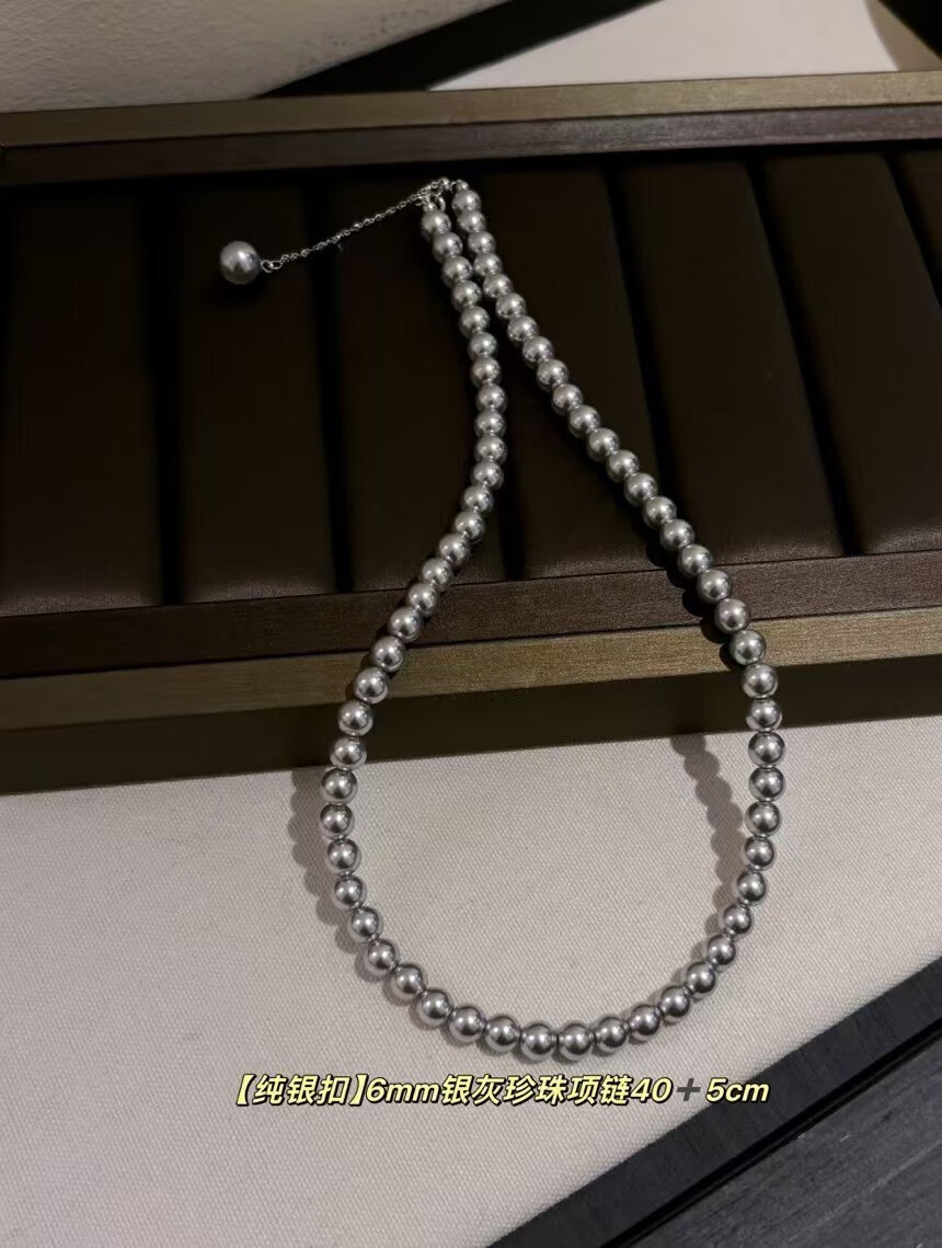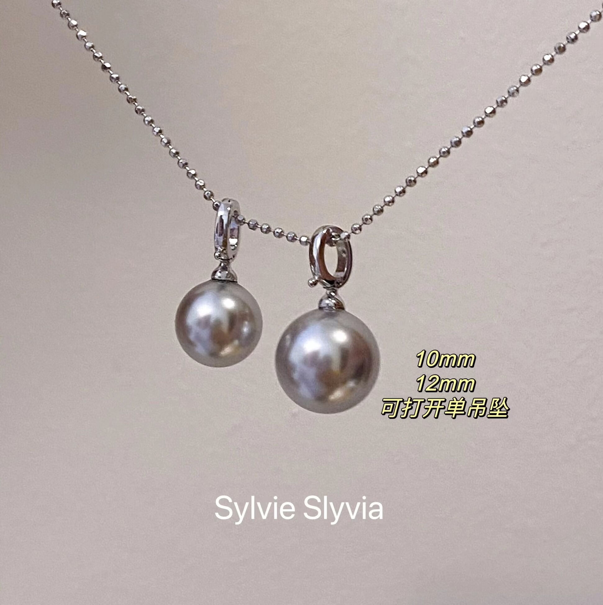 Junbushi Austrian strong light single silver gray pearl pendant buckle S925 sterling silver necklace simple and high-end female sterling silver Australian white 12mm necklace 40+5CM