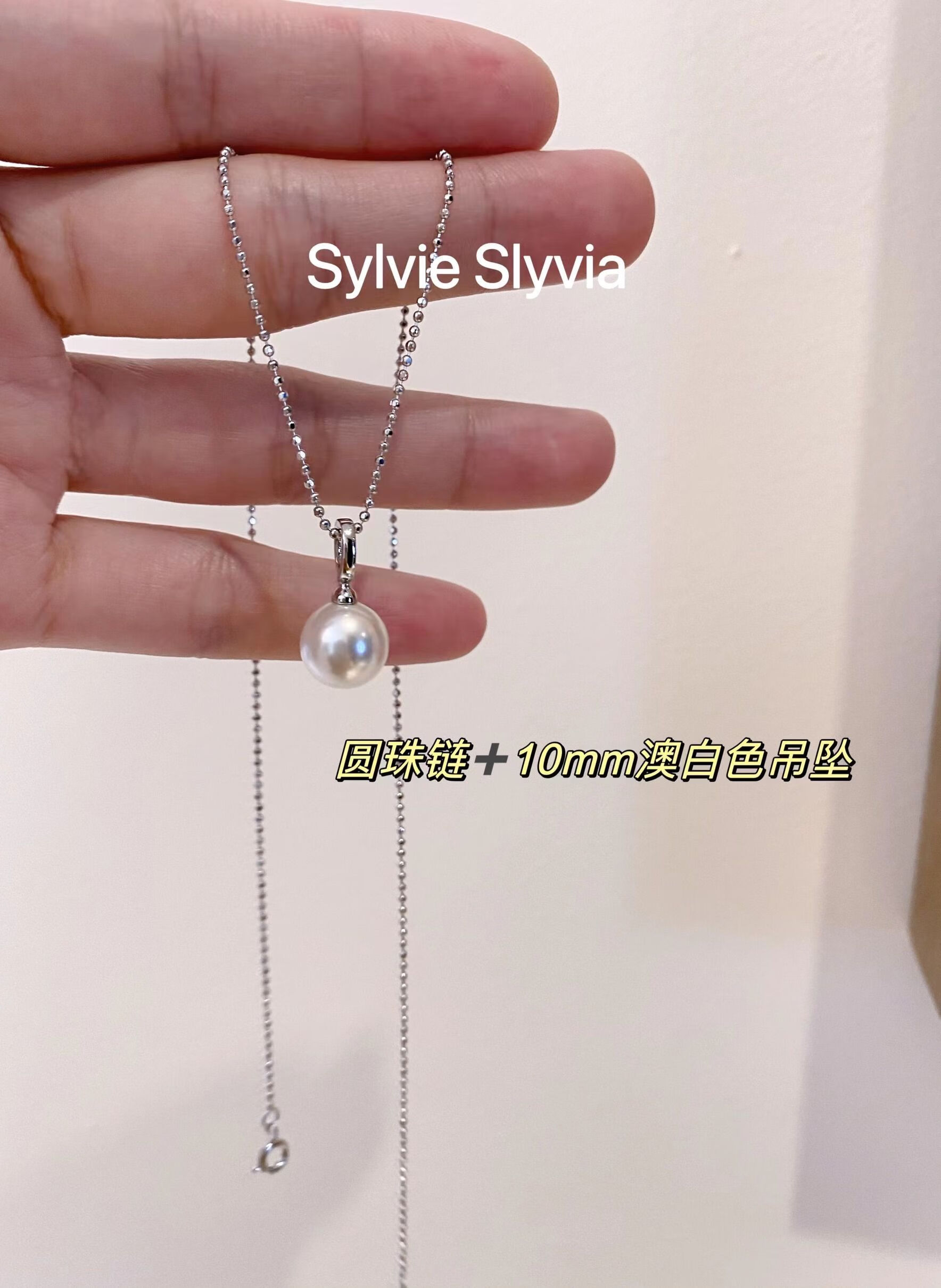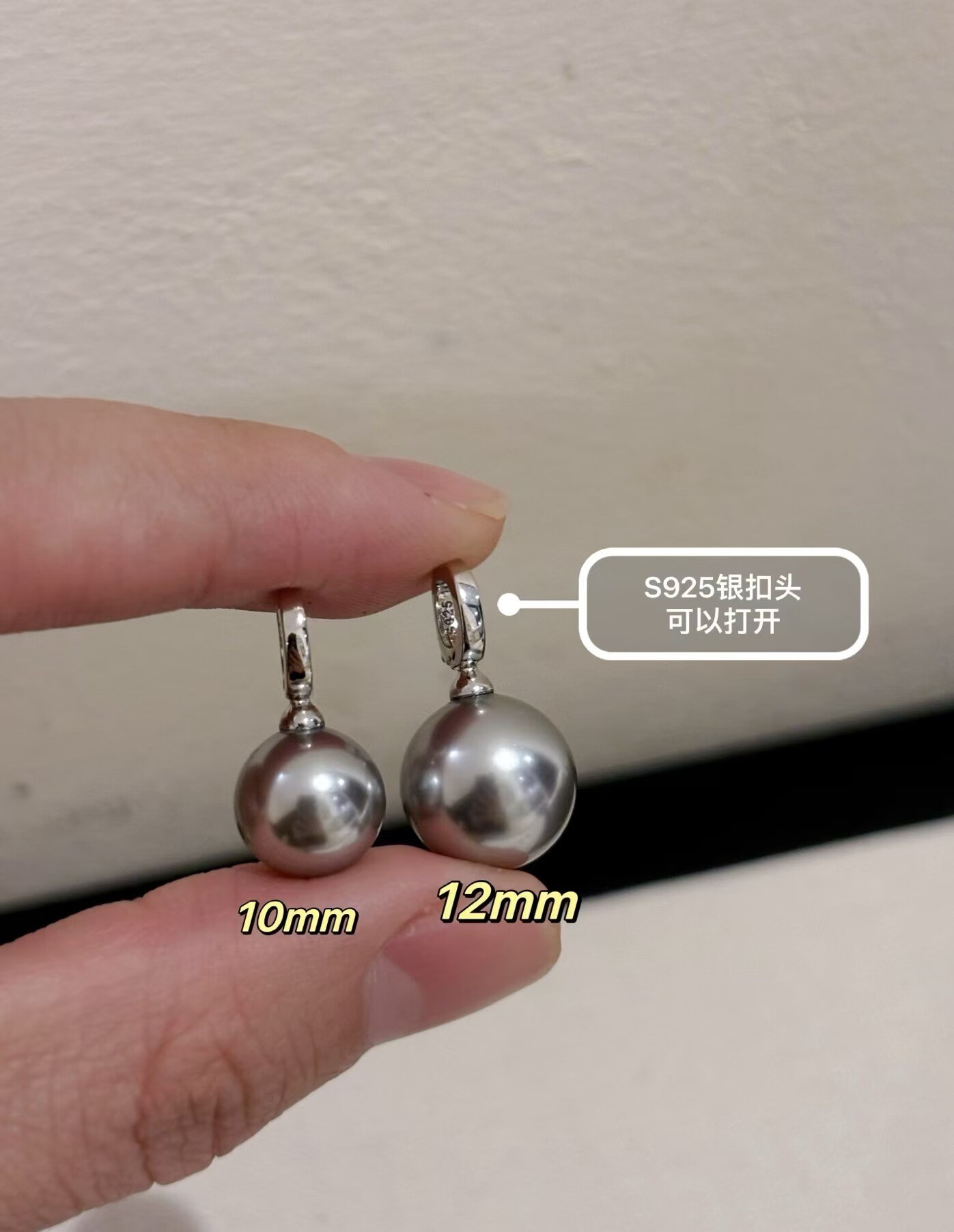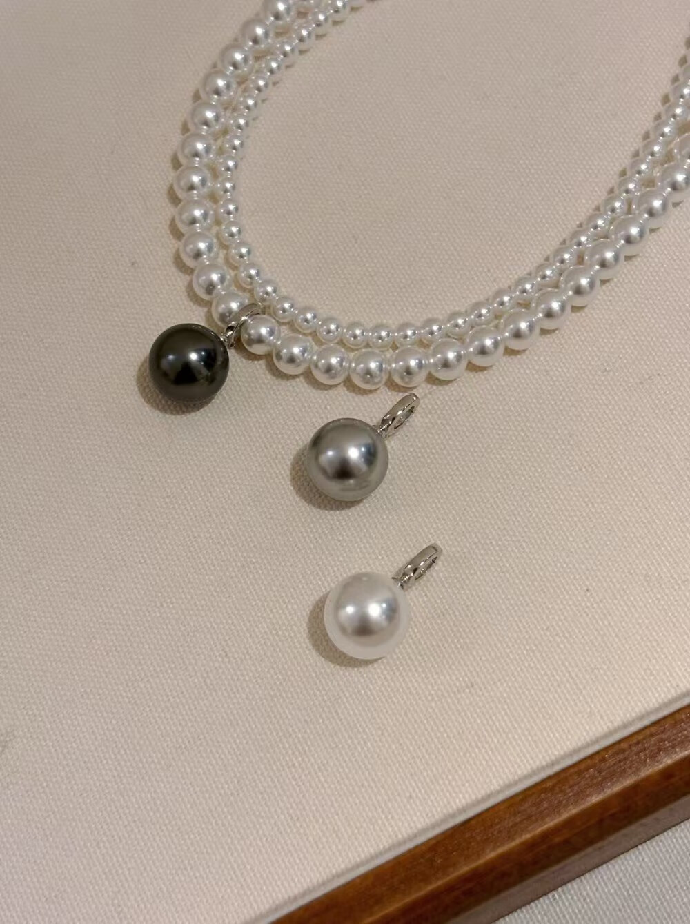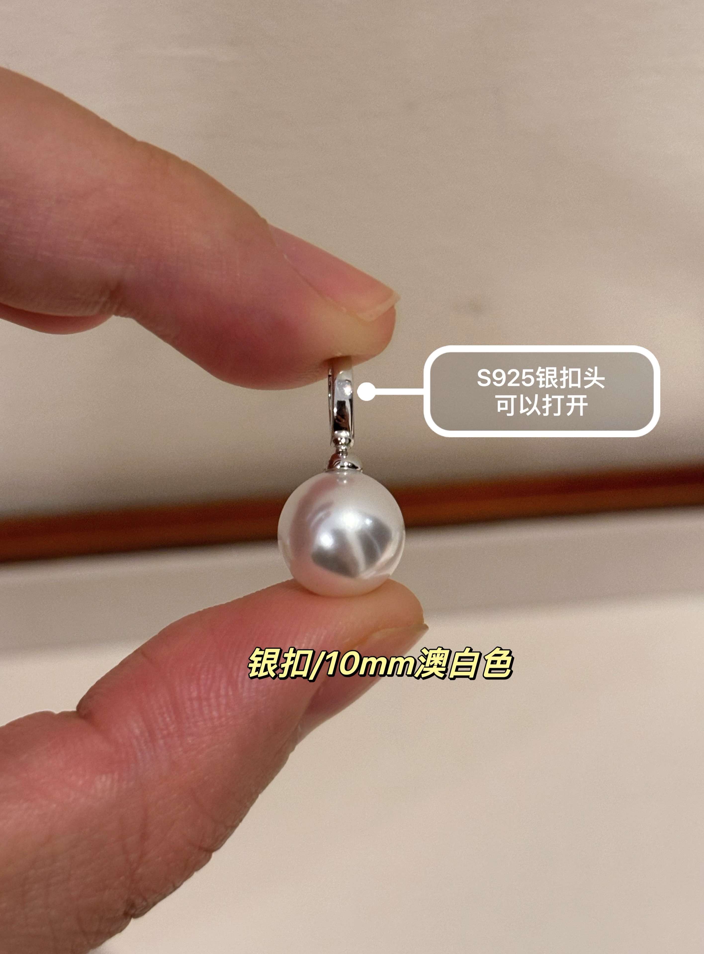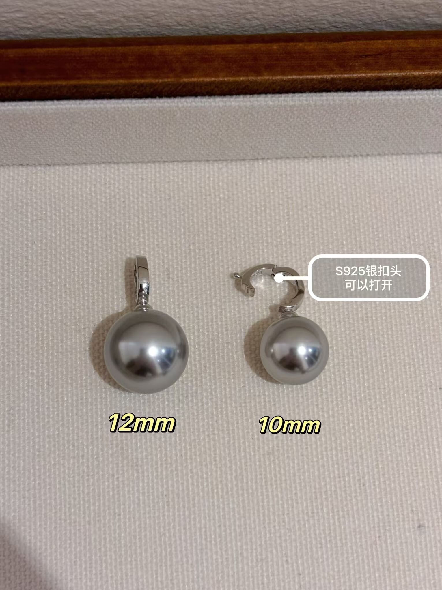 Junbushi Austrian strong light single silver gray pearl pendant buckle S925 sterling silver necklace simple and high-end female sterling silver Australian white 12mm necklace 40+5CM