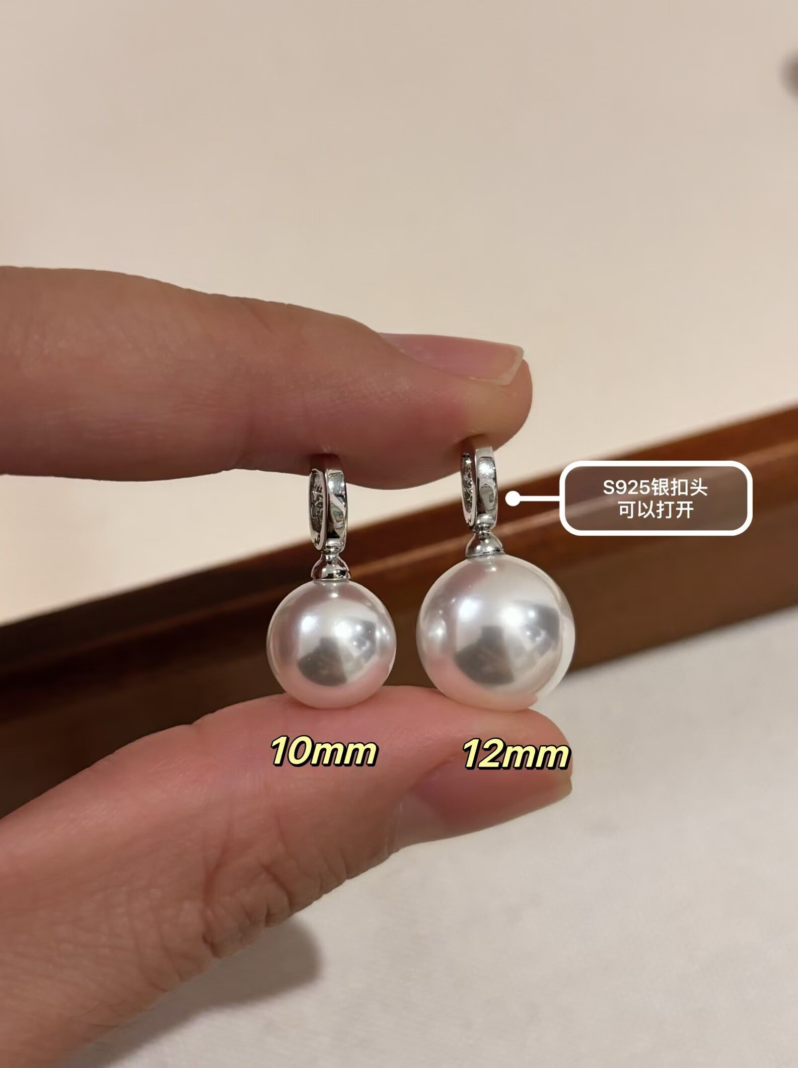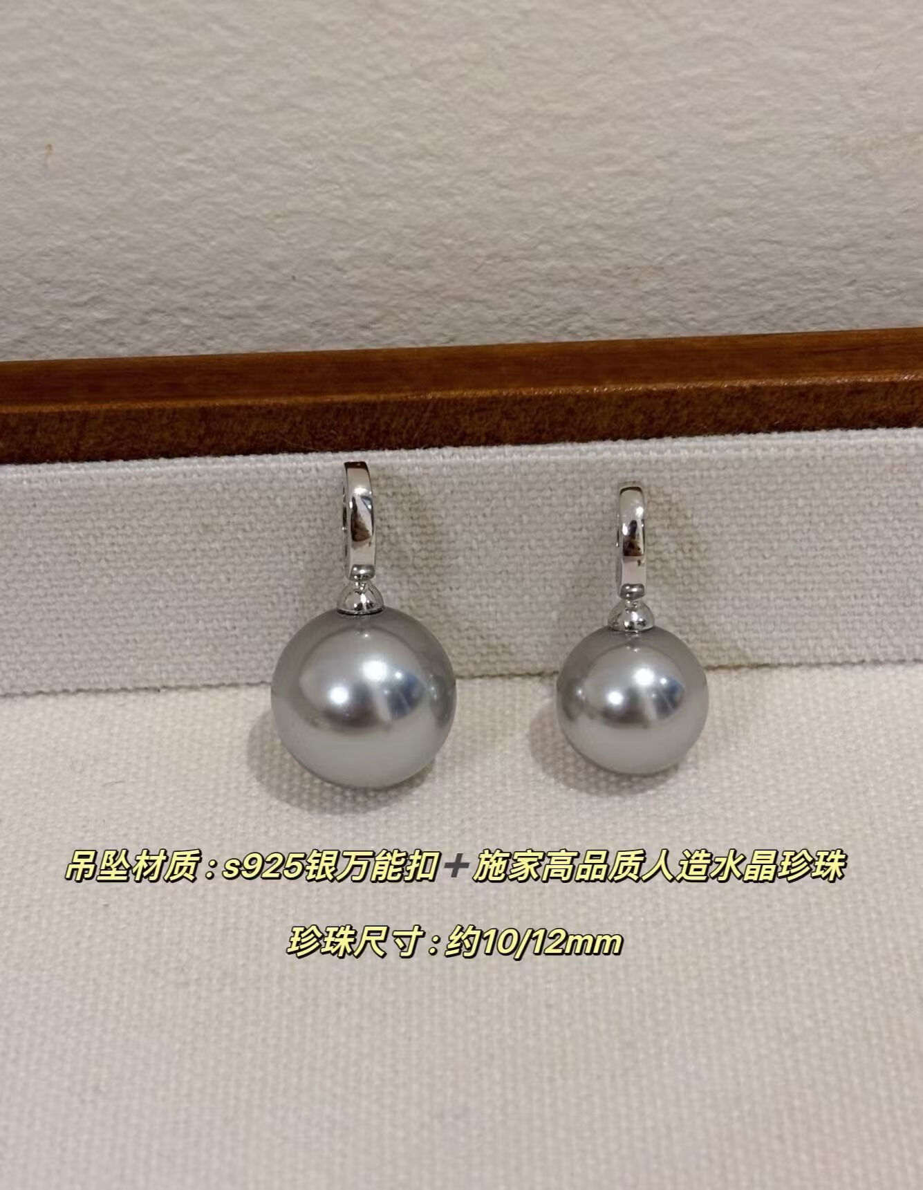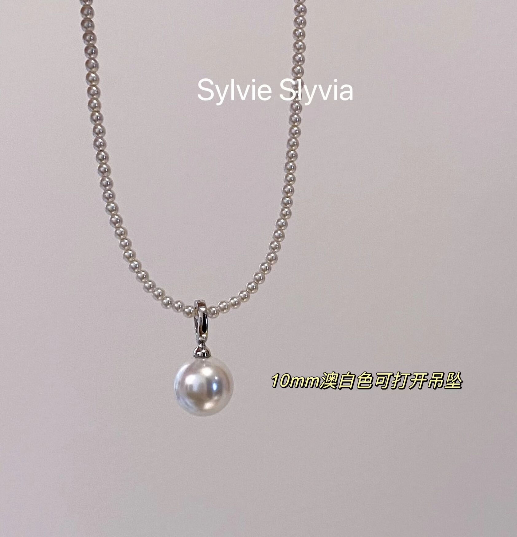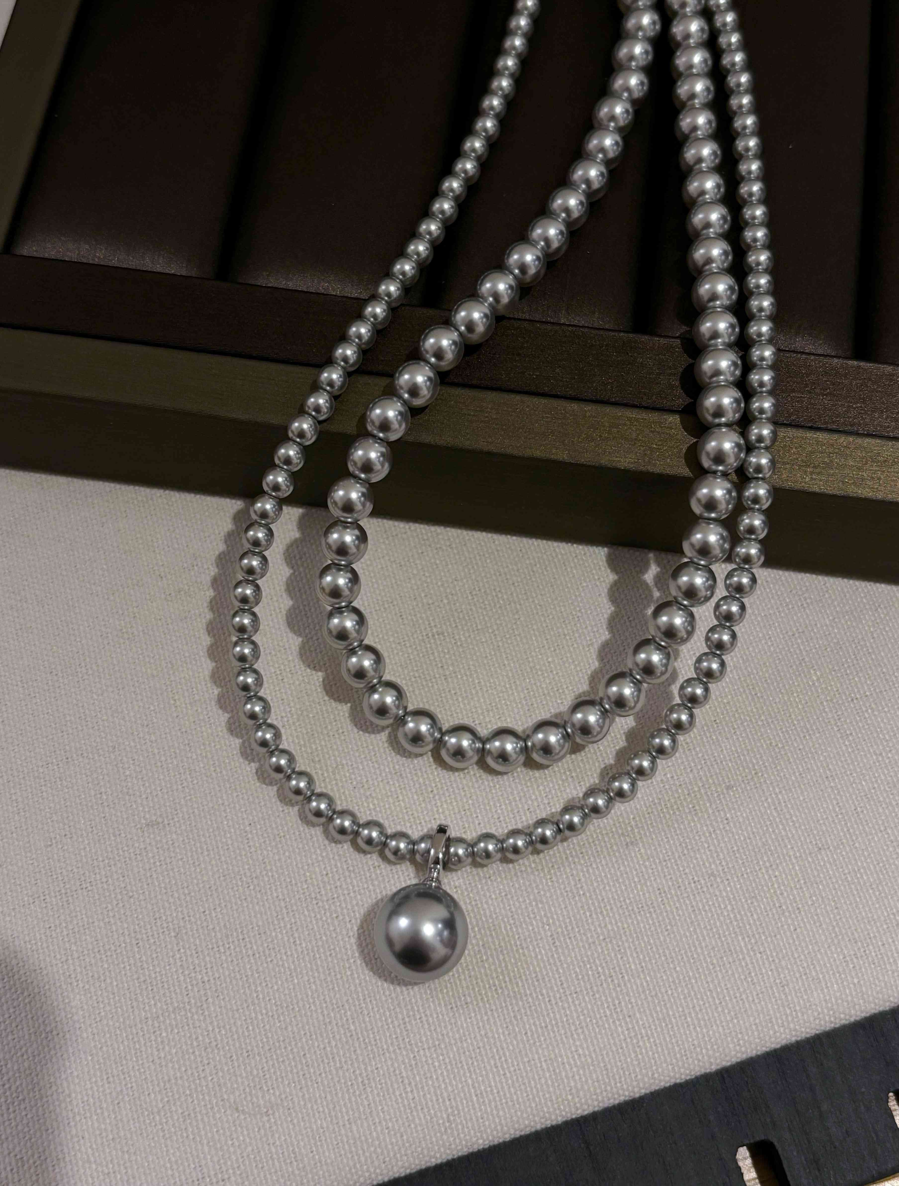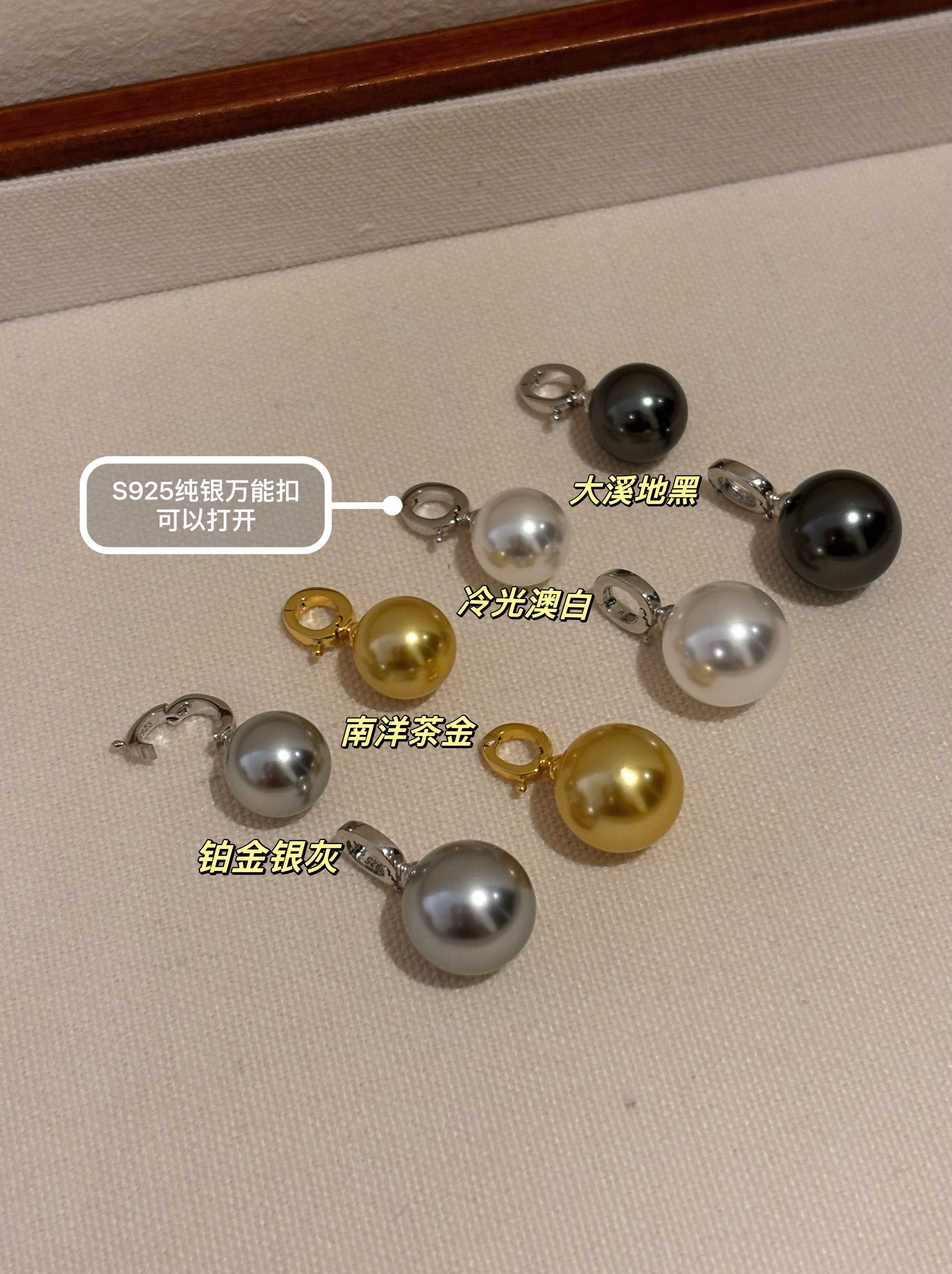 Junbushi Austrian strong light single silver gray pearl pendant buckle S925 sterling silver necklace simple and high-end female sterling silver Australian white 12mm necklace 40+5CM