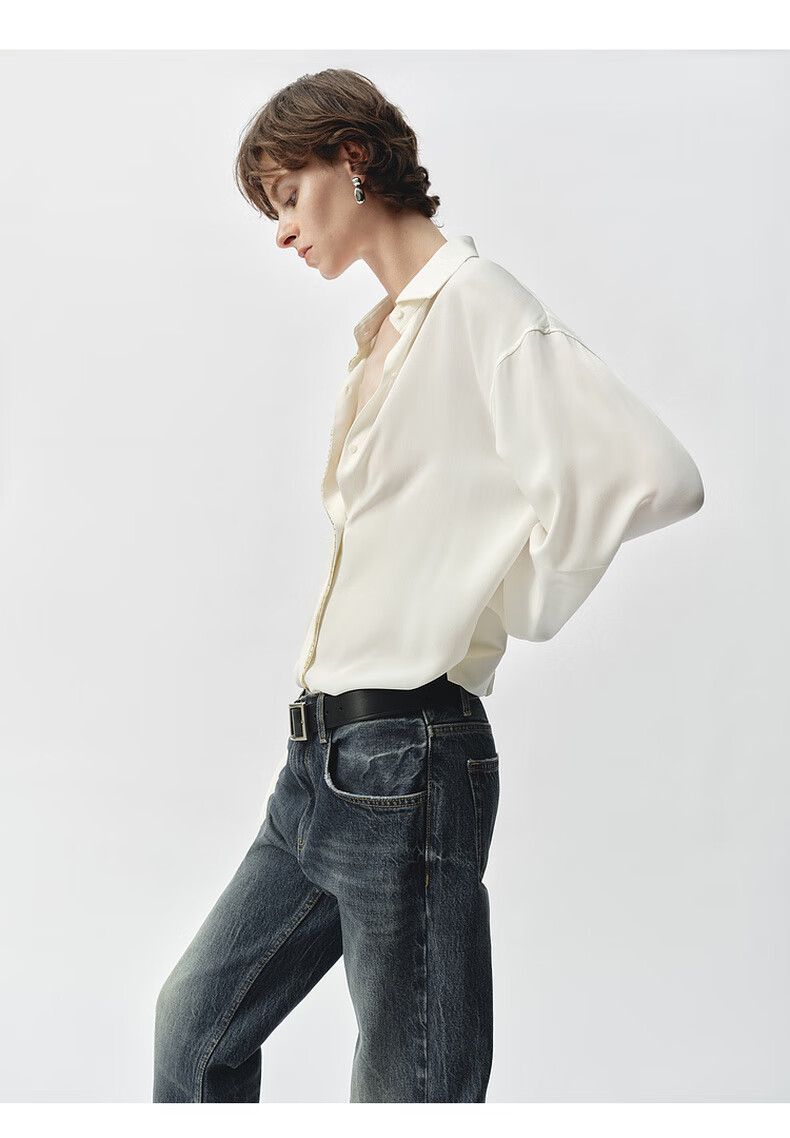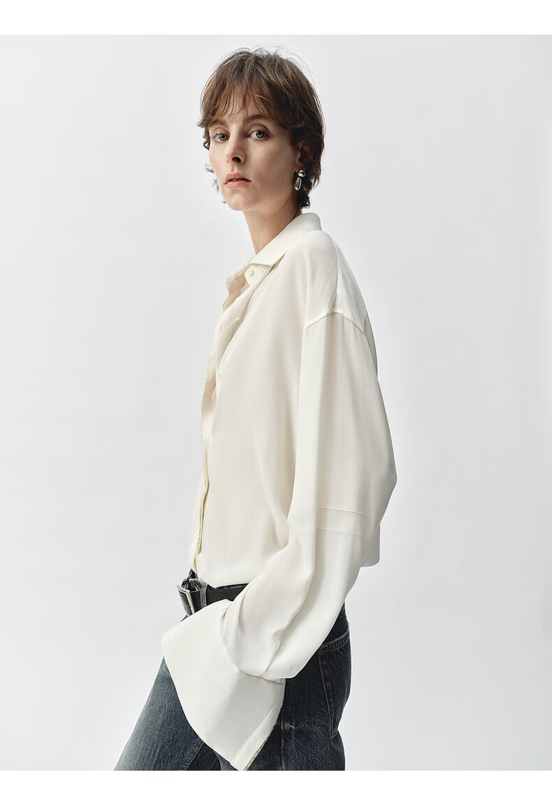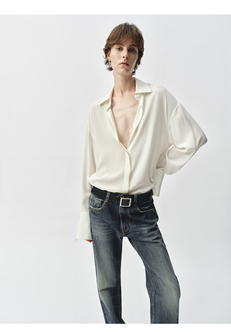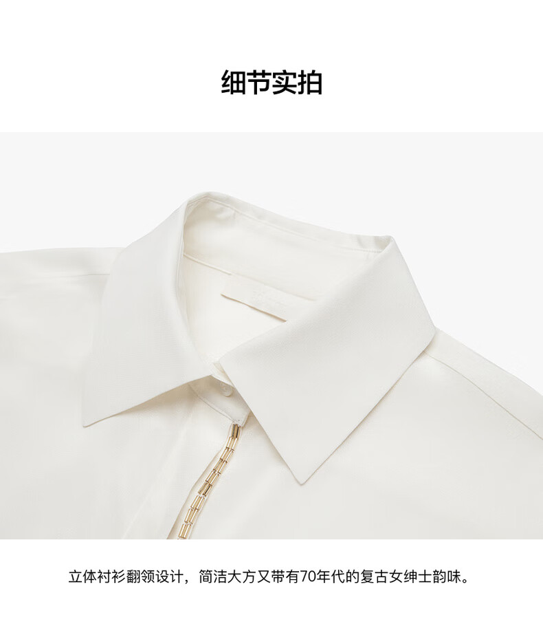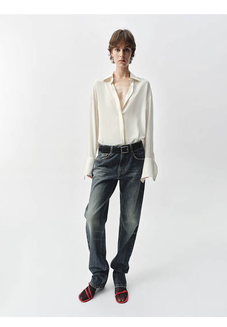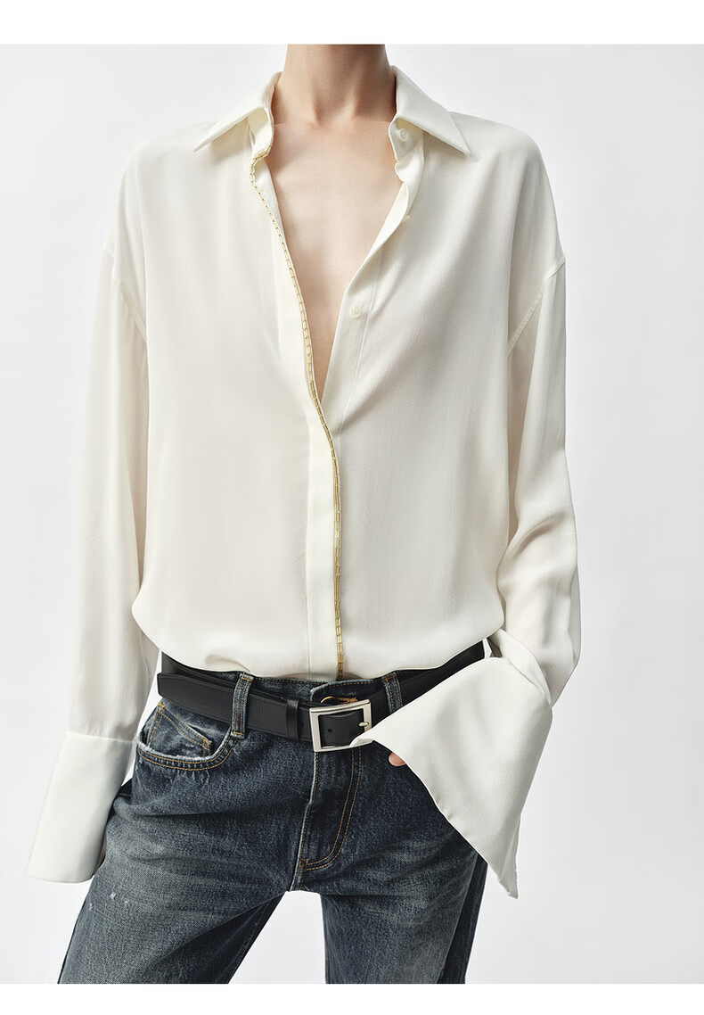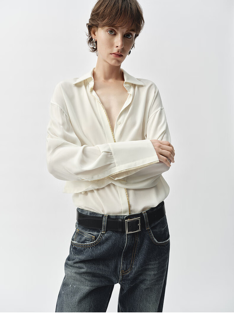 Edition elite wardrobe series 2025 spring new hand-beaded mulberry silk light luxury French shirt milk white M