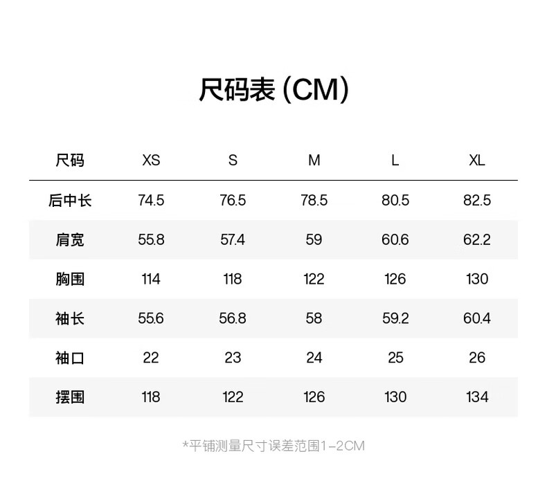 China(cm) 72-76 76-81 81-87 87-93 93-98