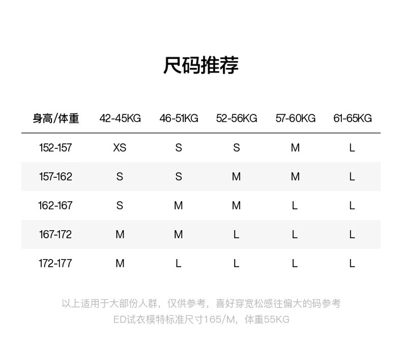 China (cm) 160-165/84-86 165-170 / 88-90 167-172 / 92-96 168-173 / 98-102 170-176 / 106-110