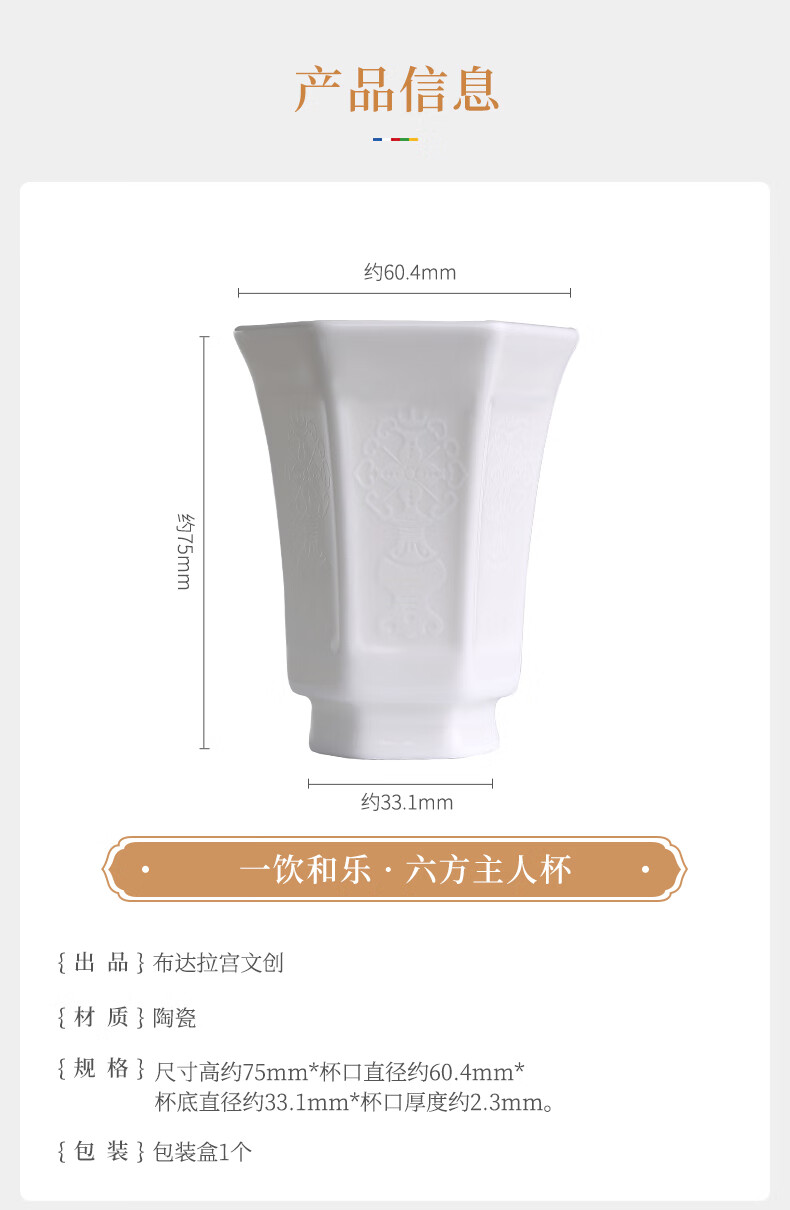 Potala Palace Cultural and Creative One Drink Hele Six-Party Wine Glass Set Master Cup Ceramic Business Gift One Drink Hele Six-Party Master Cup