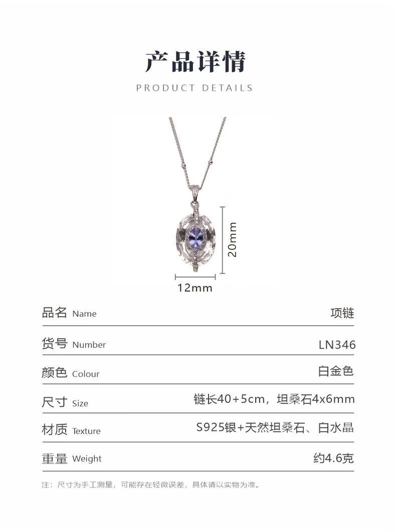 Shilian new design S925 sterling silver inlaid with natural tanzanite white crystal color treasure necklace women's high-end pendant necklace necklace