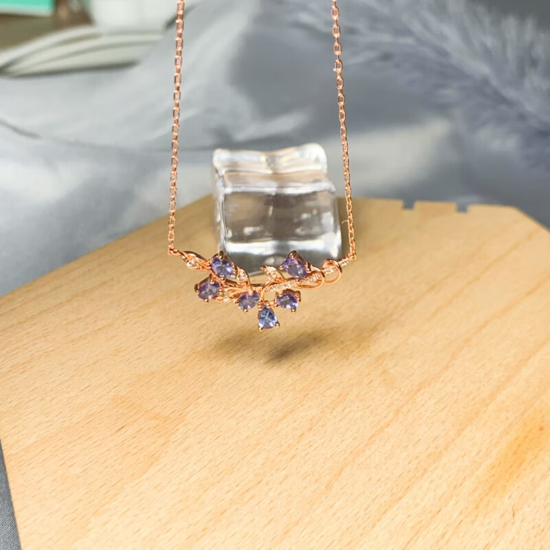 Shilian Natural Tanzanite Pendant 925 Silver Inlaid Women's Fashion Japanese and Korean Versatile Light Luxurious Clavicle Chain Jewelry as a Gift for Your Girlfriend White Gold Clavicle Chain