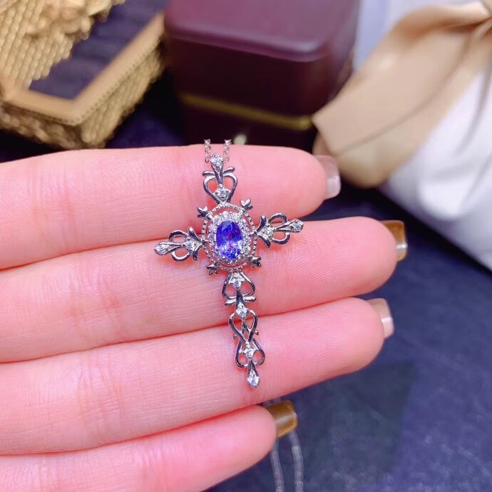 Shilian Special Offer New Natural Tanzanite Pendant Fresh and Elegant 925 Silver Seiko Inlaid Cross Pendant Free Necklace