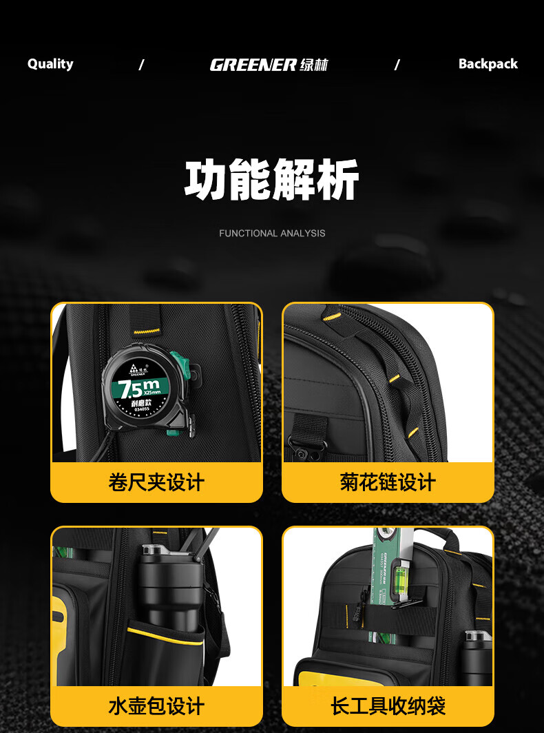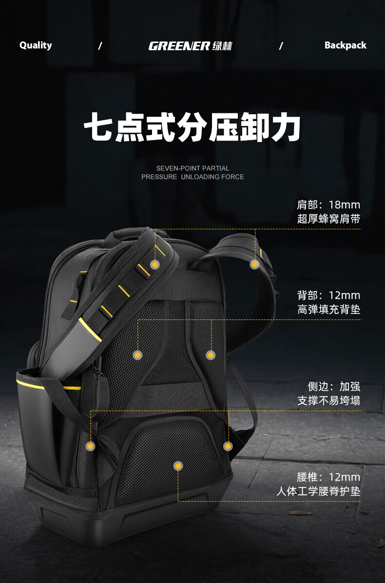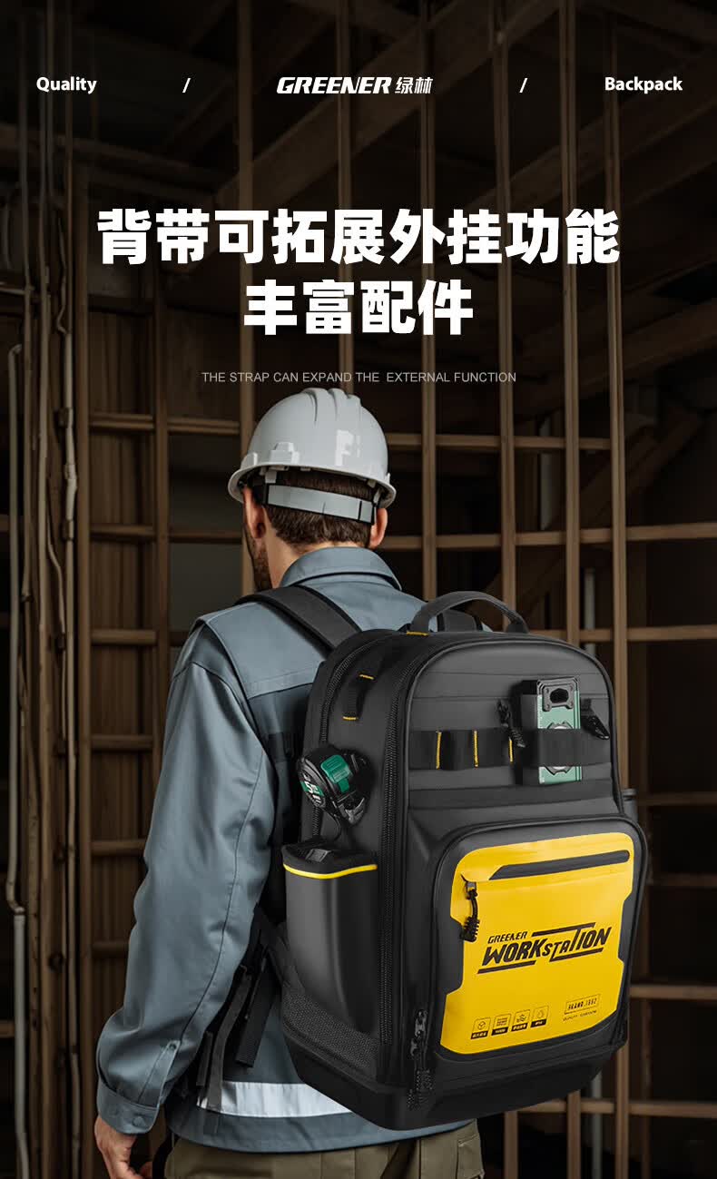 GREENER Werkzeug-Rucksack für Elektriker, robuste und langlebige Aufbewahrung, tragbar, aus Segeltuch, verdickte, verschleißfeste Hardware, multifunktionaler Rucksack, Bau-Elektroingenieur-Modell