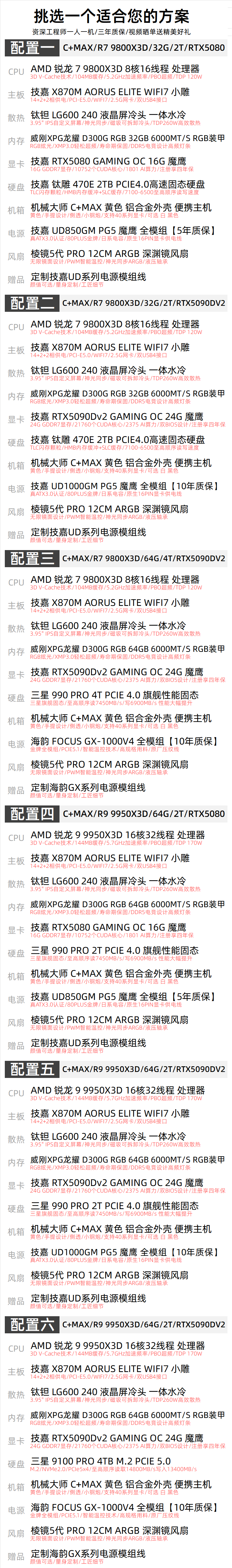 Gigabyte RTX5090D/V2/5080 Mechanical Master C+MAX high-end mini water-cooled game console DIY assembly computer design portable small steel gun desktop machine four R9 9950X3D/64G/2T/5080