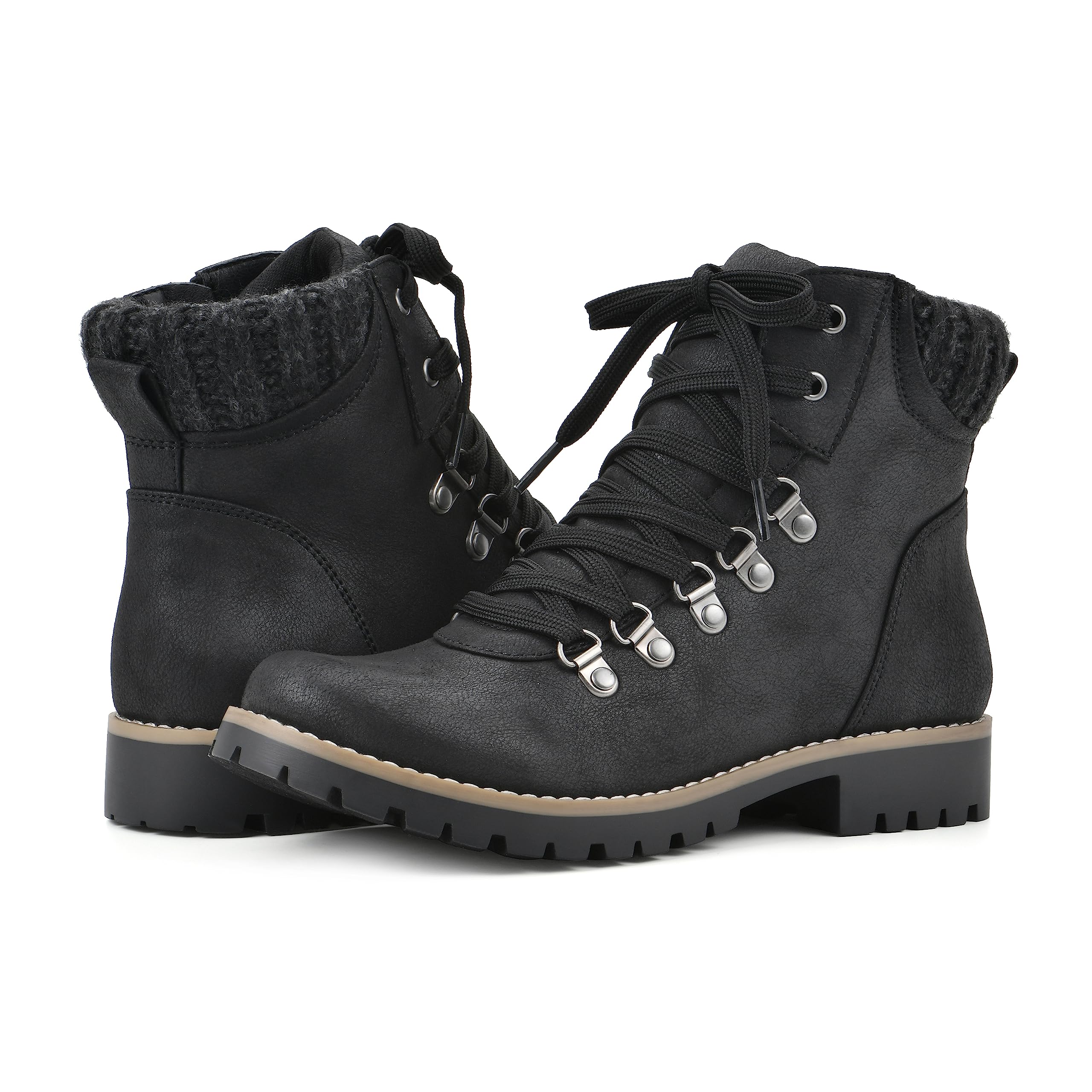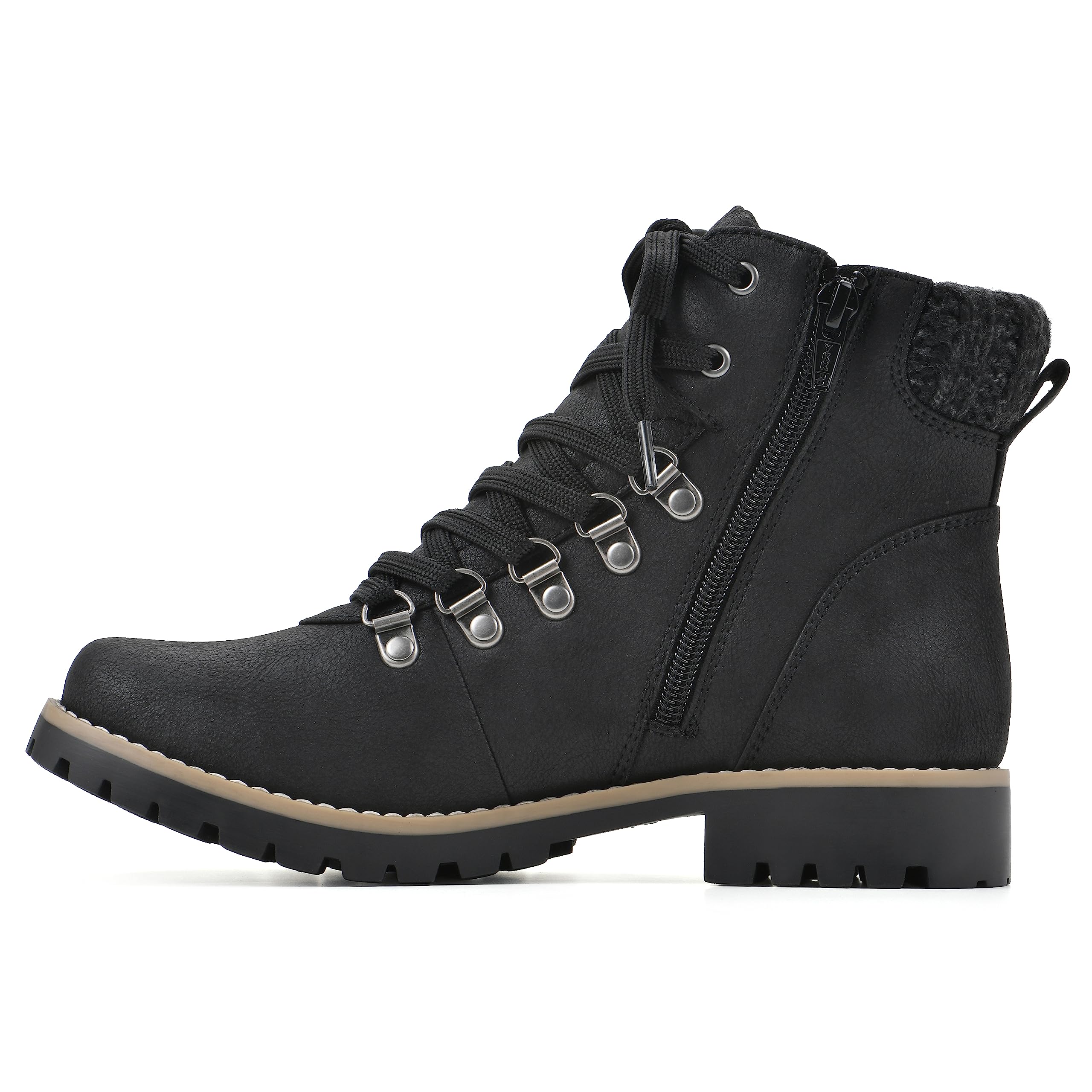 Cliffs by White Mountain Women's Fall Ankle Boots Comfortable Cushioning Round Toe Lace-up Casual Boots Outdoor Hiking Black/Fabric 8