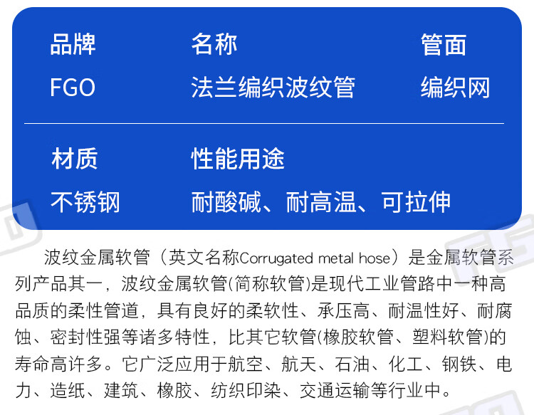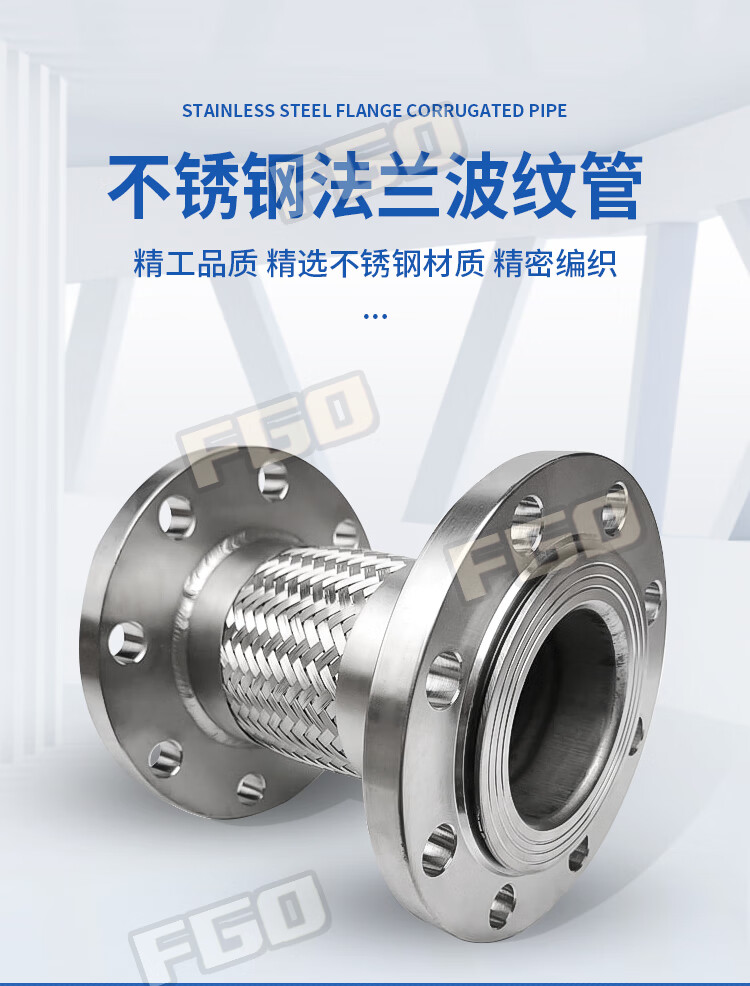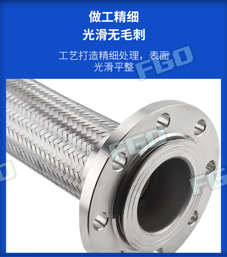 FGO stainless steel metal braided hose, overall 304, flanges at both ends PN16 DN125, 10 meters long BWG-16P
