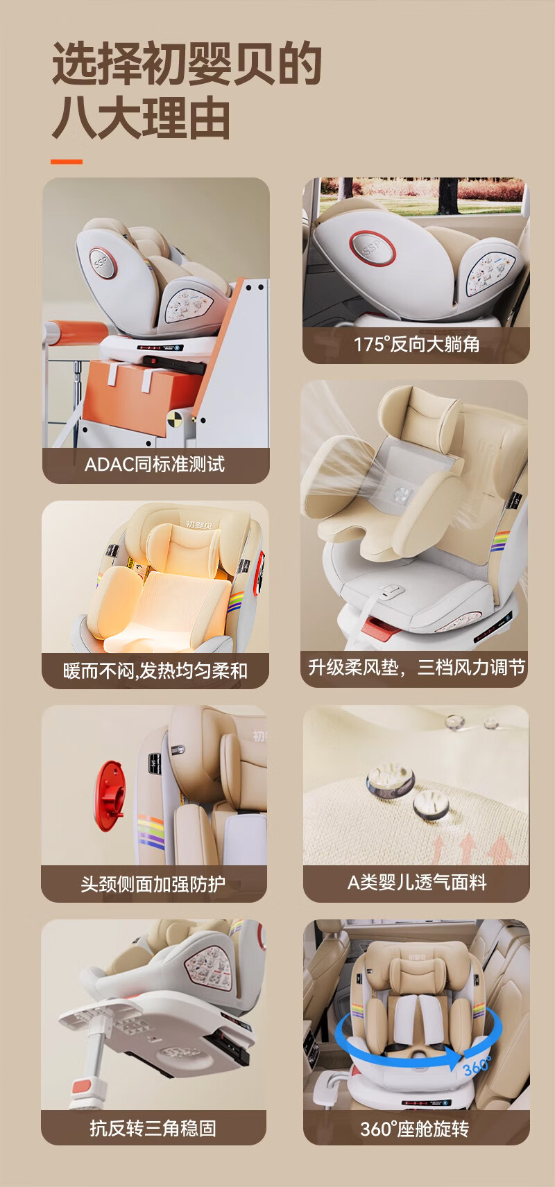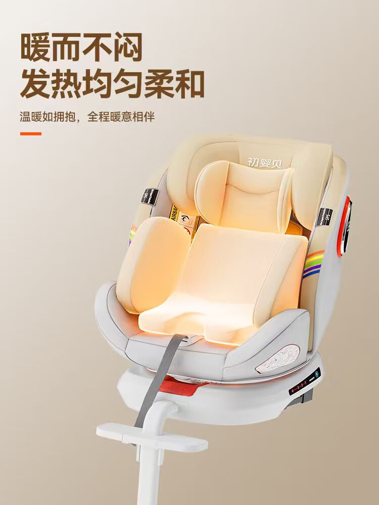 Chuyingbei child safety seat car for 0-4-12 years old baby car seatable and reclining i-Size certified Yuexiang version champagne gold +175 reclining + supporting legs