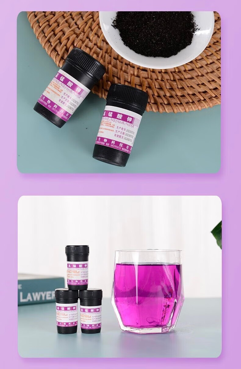 Potassium permanganate powder chemical experiment reagent crystal fish tank external aquaculture kill 18g/bottle (1 bottle) high purity 90