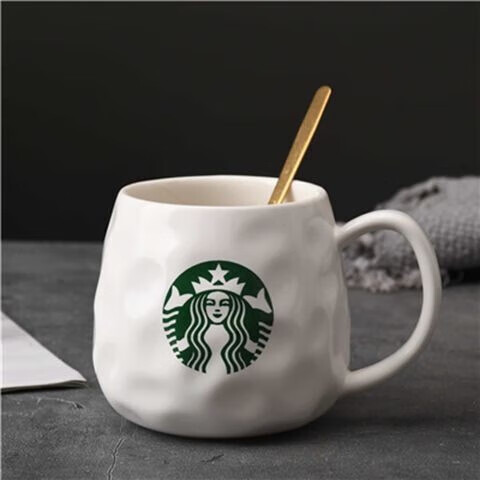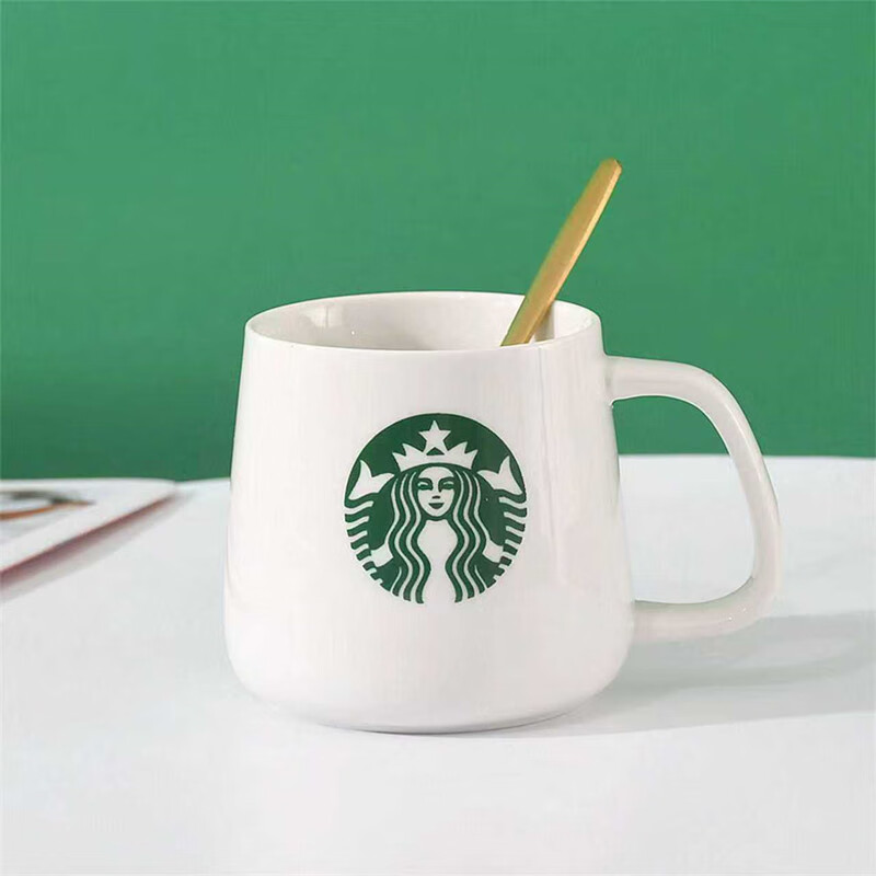 Starbucks (Starbucks) cup limited edition simple European water cup mug household ceramic cup small gift Starbucks style coffee cup breakfast p style (cup + spoon + bamboo lid) 450ml